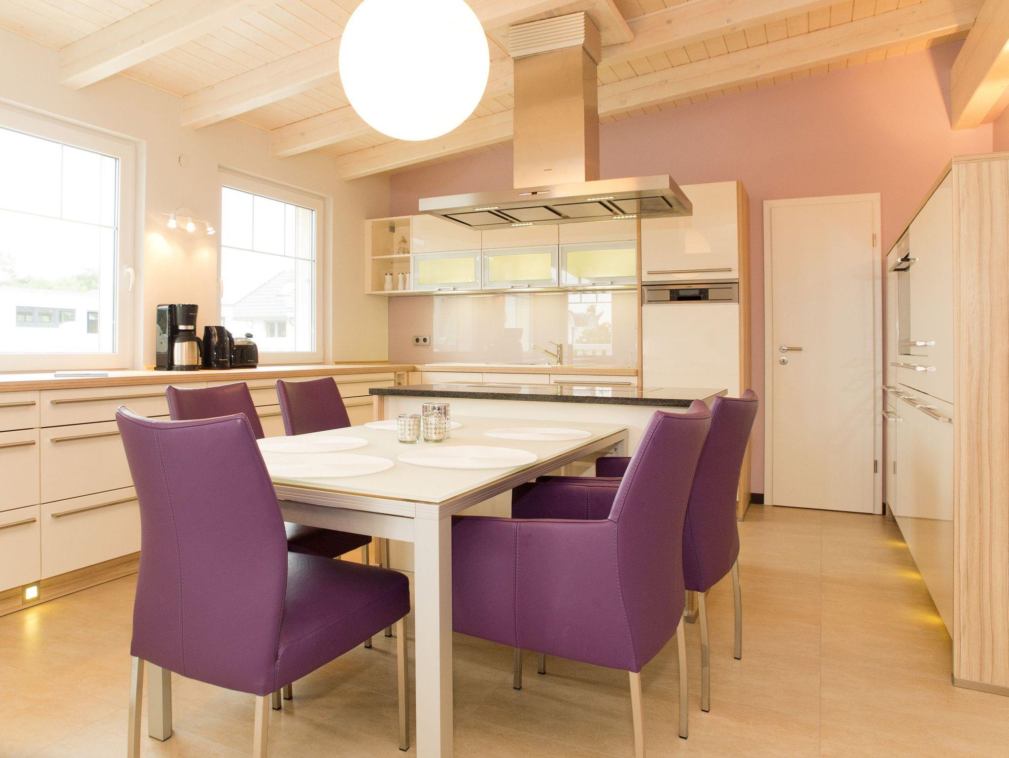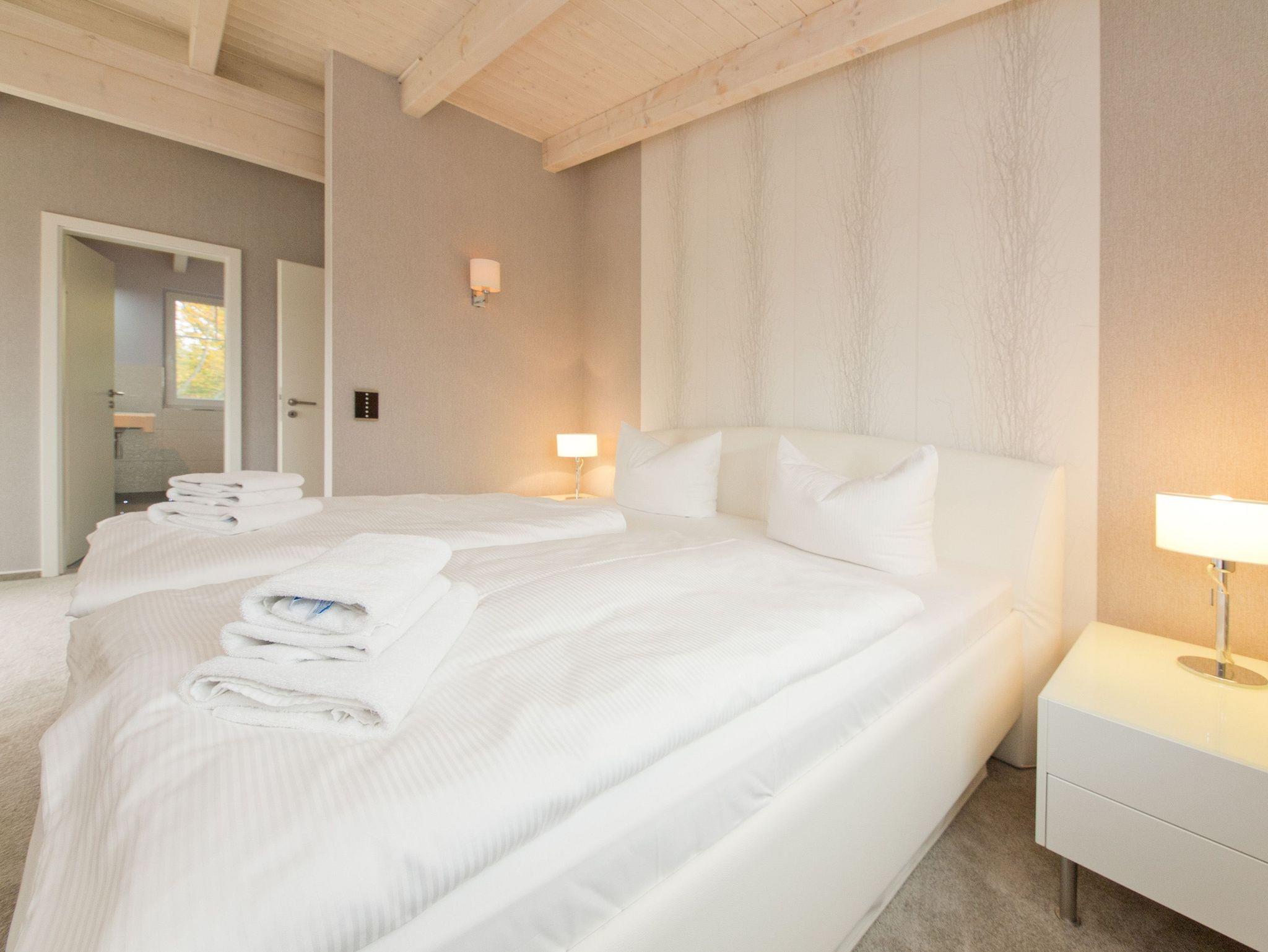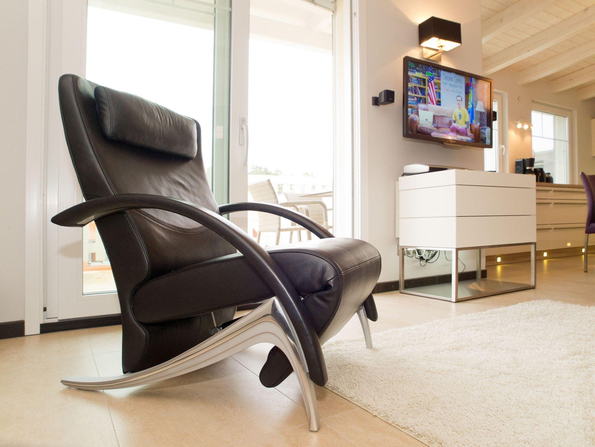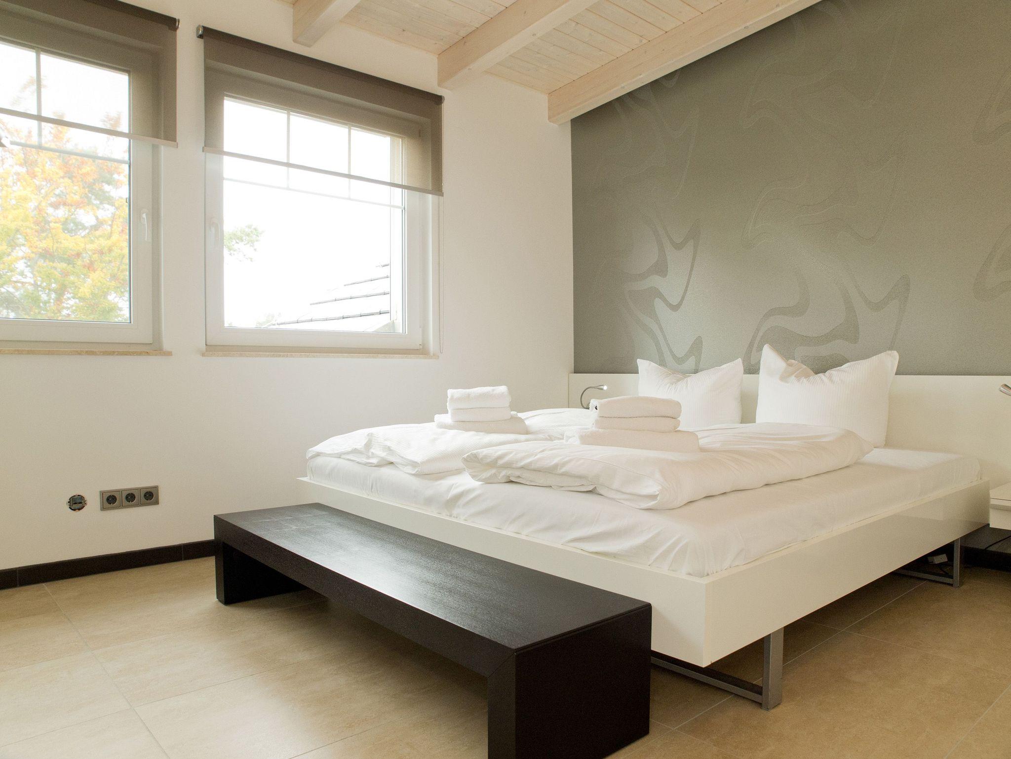 Im Dachgeschoss des Dünendomizils erwarten Sie auf 128 qm nicht nur viel Platz, sondern auch modernste Technik und eine geschmackvoll- stylische Einrichtung. Die neu gestaltete Penthouse-Ferienwohnung mit 3 Schlafzimmern ( für max. 5 Personen) erreichen Sie bequem mit dem Aufzug. Schon beim Eintreten eröffnet sich Ihnen der großzügige Wohnraum mit bequemer Ledersitzgruppe und Flat-TV. Der angrenzende Küchenbereich mit großem Essplatz ist offen gestaltet und lädt zum Kochen und Genießen ein. Über den Promenadenbereich hinweg hat man von hier einen schönen Blick auf die Ostsee. Auch die beiden Balkone (1x Nord / 1x West), die mit Gartenmöbeln ausgestattet sind, betritt man vom Wohnbereich aus. Zwei Schlafzimmer mit Doppelbetten (1x Bettgröße 1,80m / 1x Bettgröße 1,40m) bieten Platz für erholsame Nächte. Das dritte Schlafzimmer mit Doppelbett (1,80m) verfügt über ein eigenes Masterbad mit Badewanne, Dusche und WC und einen kleinen Südbalkon. Zusätzlich gibt es in der Wohnung ein zweites Bad mit Dusche und WC, hier befindet sich auch eine Waschmaschine. Für Ihren Komfort sind die Betten bei der Anreise bezogen und ein Handtuchpaket liegt bereit. 1 PKW-Stellplatz befindet sich in der Tiefgarage. Das WLAN-Netz im Haus ist kostenfrei nutzbar.