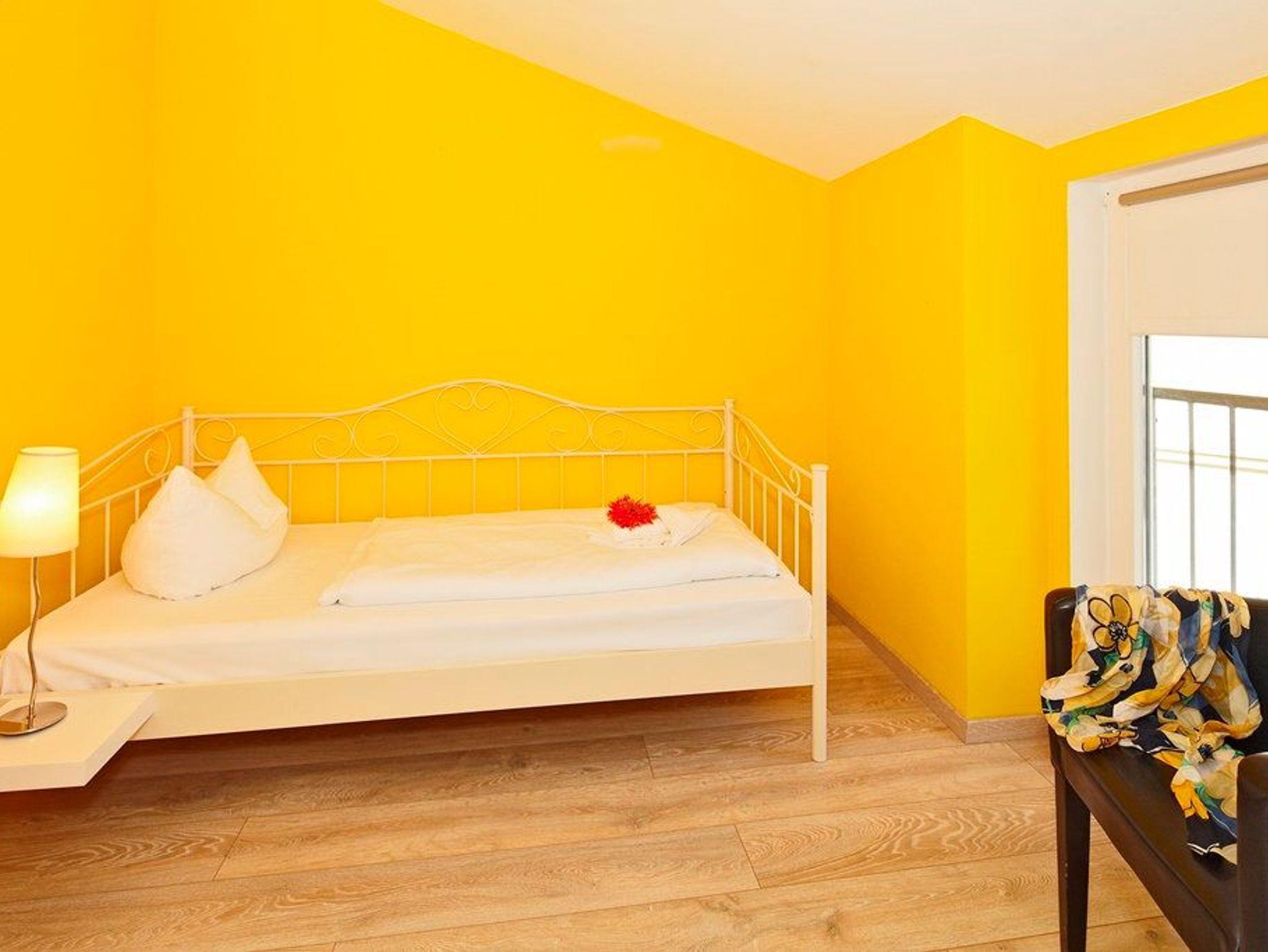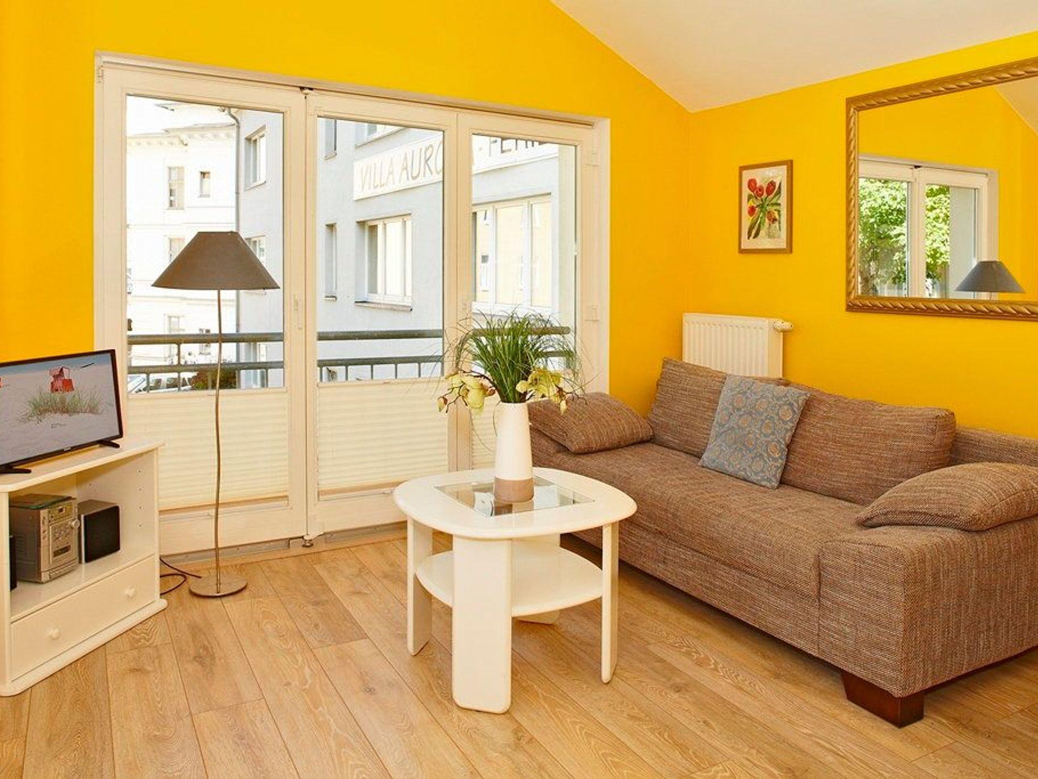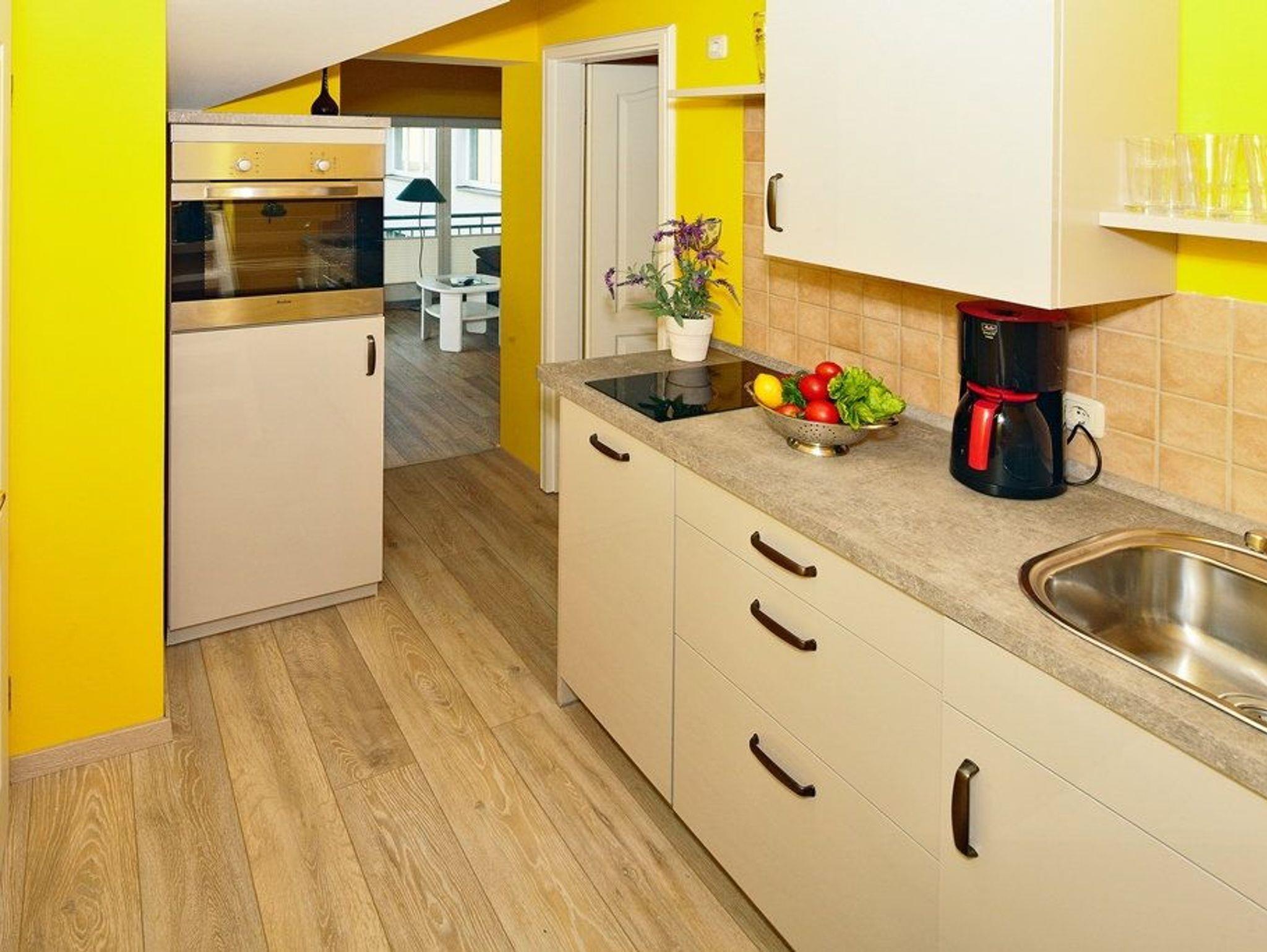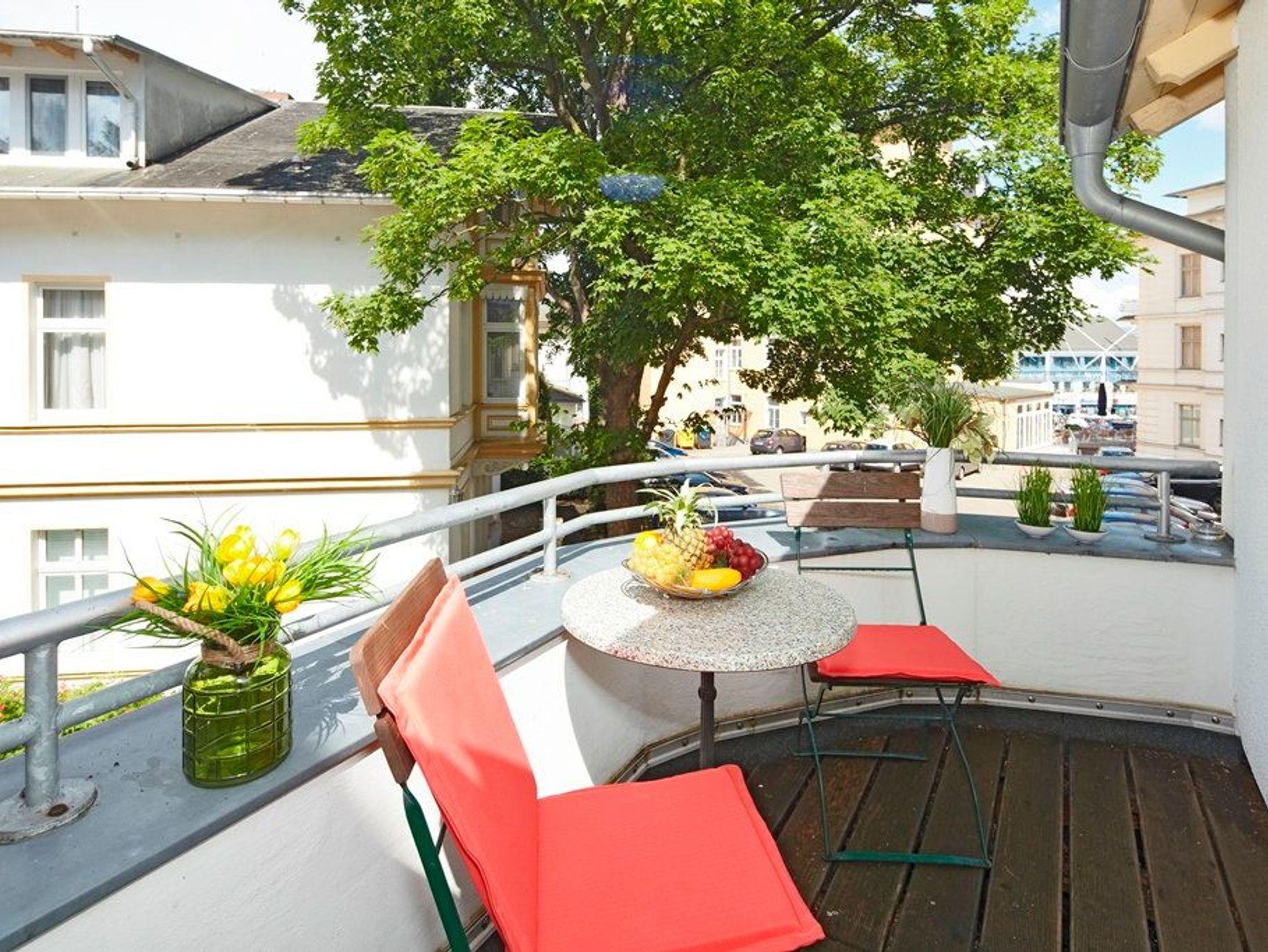 Treten Sie ein, hinter der Eingangstür nur wenige Stufen hinauf ? sind Sie in Ihrem Urlaubsquartier und in Ihrem wohlverdienten Urlaub angekommen. Bis zu drei Personen können in dem modernen Appartement gemeinsame Urlaubstage verbringen. Der gemütliche und helle Wohnbereich mit bequemer Couch und Flat-TV, bodentiefen Fenstern und Essplatz lädt zu geselligen und unterhaltsamen Stunden ein. Auf dem nach Nordwesten ausgerichteten Balkon können Sie einen erlebnisreichen Urlaubstag bei einem Glas Wein ausklingen lassen. In der offenen gestalteten Küche (Backofen, Geschirrspüler, Kühlschrank, Kaffeemaschine, Wasserkocher, Toaster) können Sie sich all Ihre Lieblingsspeisen zubereiten ?und anschließend den Geschirrspüler bequem den Abwasch erledigen lassen.