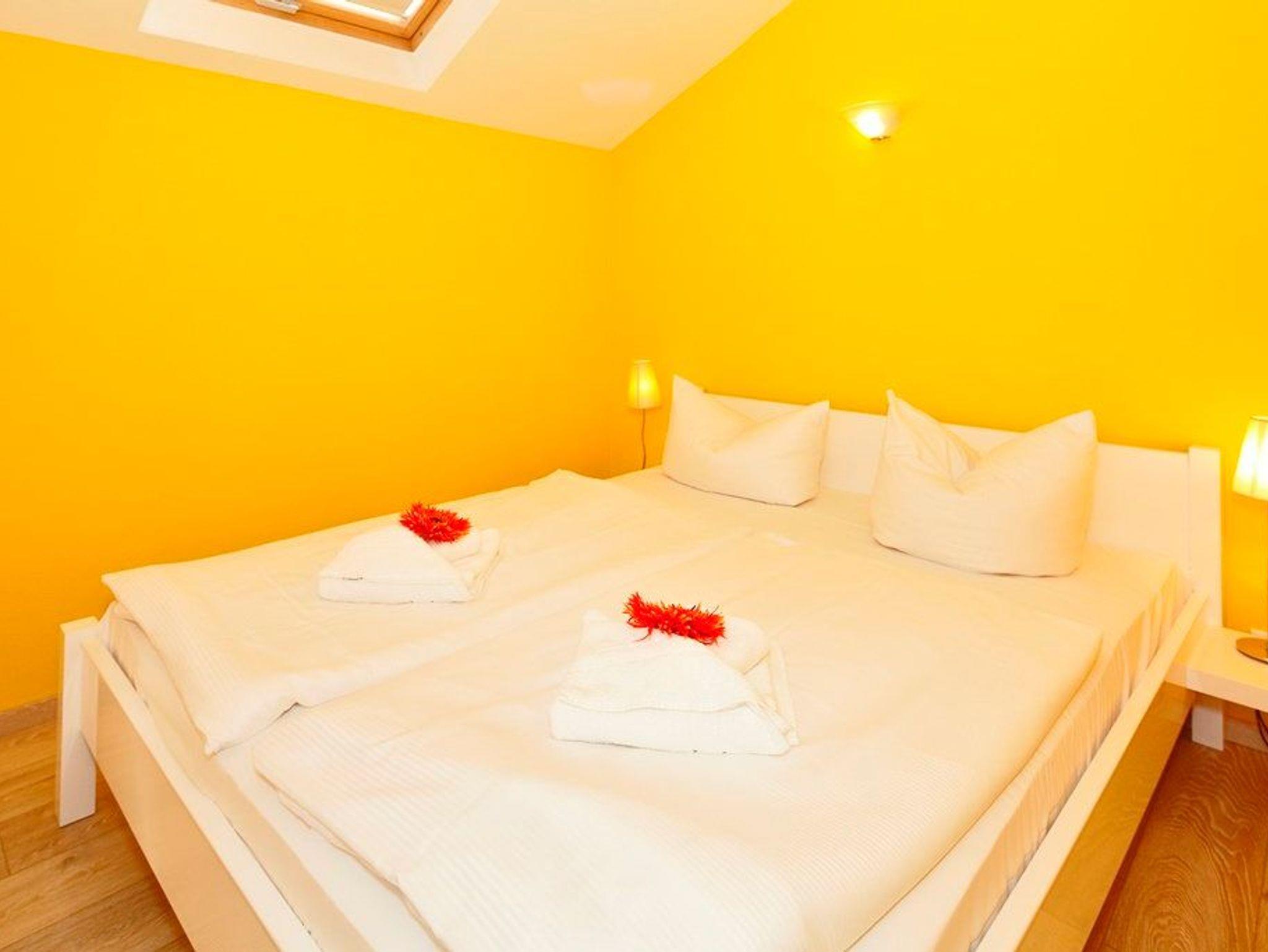 In den zwei separaten Schlafzimmern können Sie sich zur Nachtruhe oder zu einem Schlummerstündchen am Nachmittag zurückziehen. Lassen Sie den Urlaubstag in Ihren Träumen Revue passieren. Ein Schlafzimmer mit einem bequemen Doppelbett (160 x 200cm / durchgehende Matratze) und ein zweites mit einem gemütlichen Einzelbett (90 x 200cm) warten auf Sie. Das Badezimmer ist schmal gehalten ? mit WC, Dusche und einem Haartrockner können Sie erfrischt in den neuen Urlaubstag starten. Damit Sie Ihre wohlverdiente Urlaubszeit bereits am Anreisetag in vollen Zügen genießen können,? haben wir das Bett für Sie und das für Ihre lieben Mitreisenden bereits bezogen und ein Duschtuch sowie ein kleines Handtuch bereitgelegt.