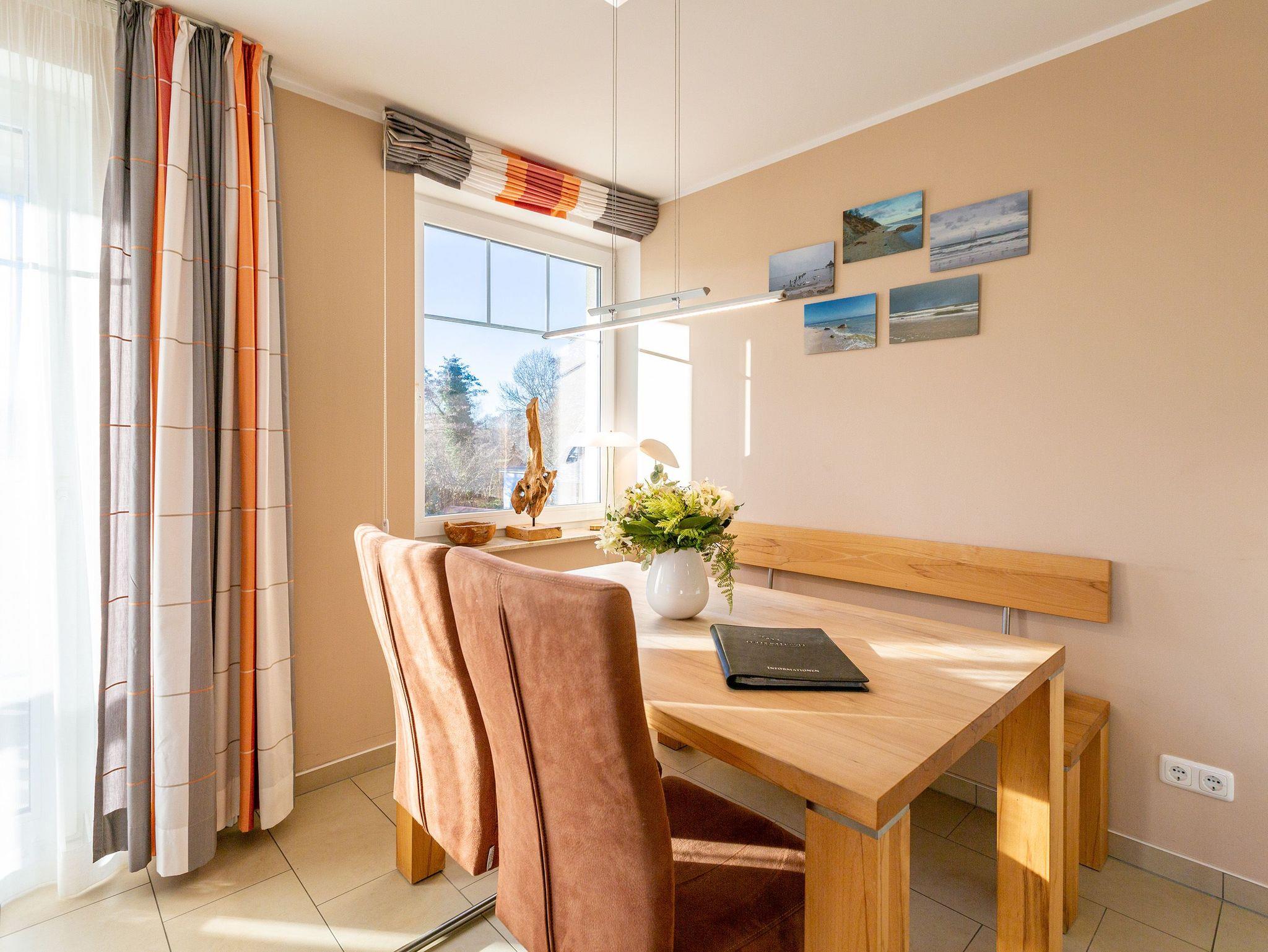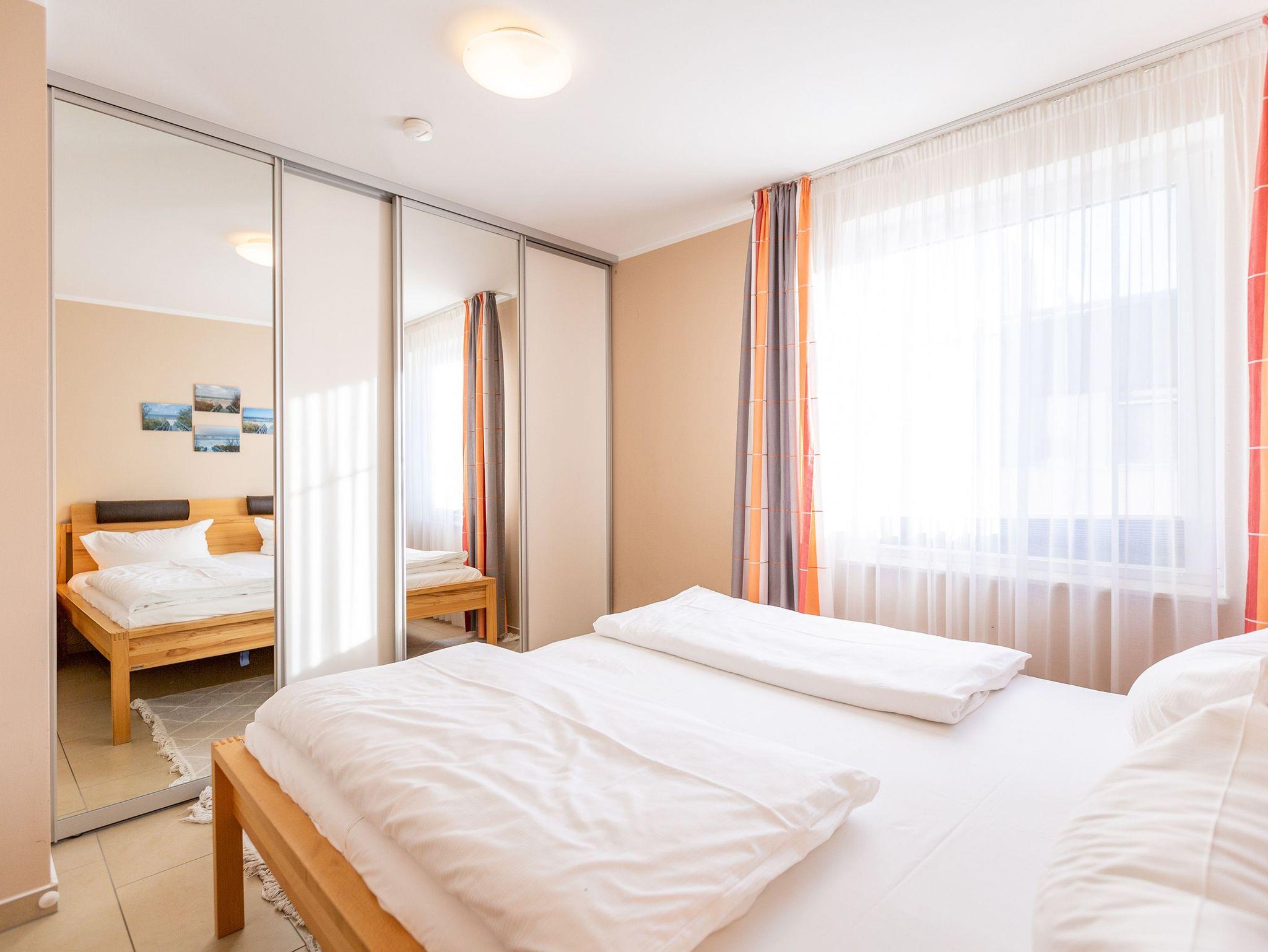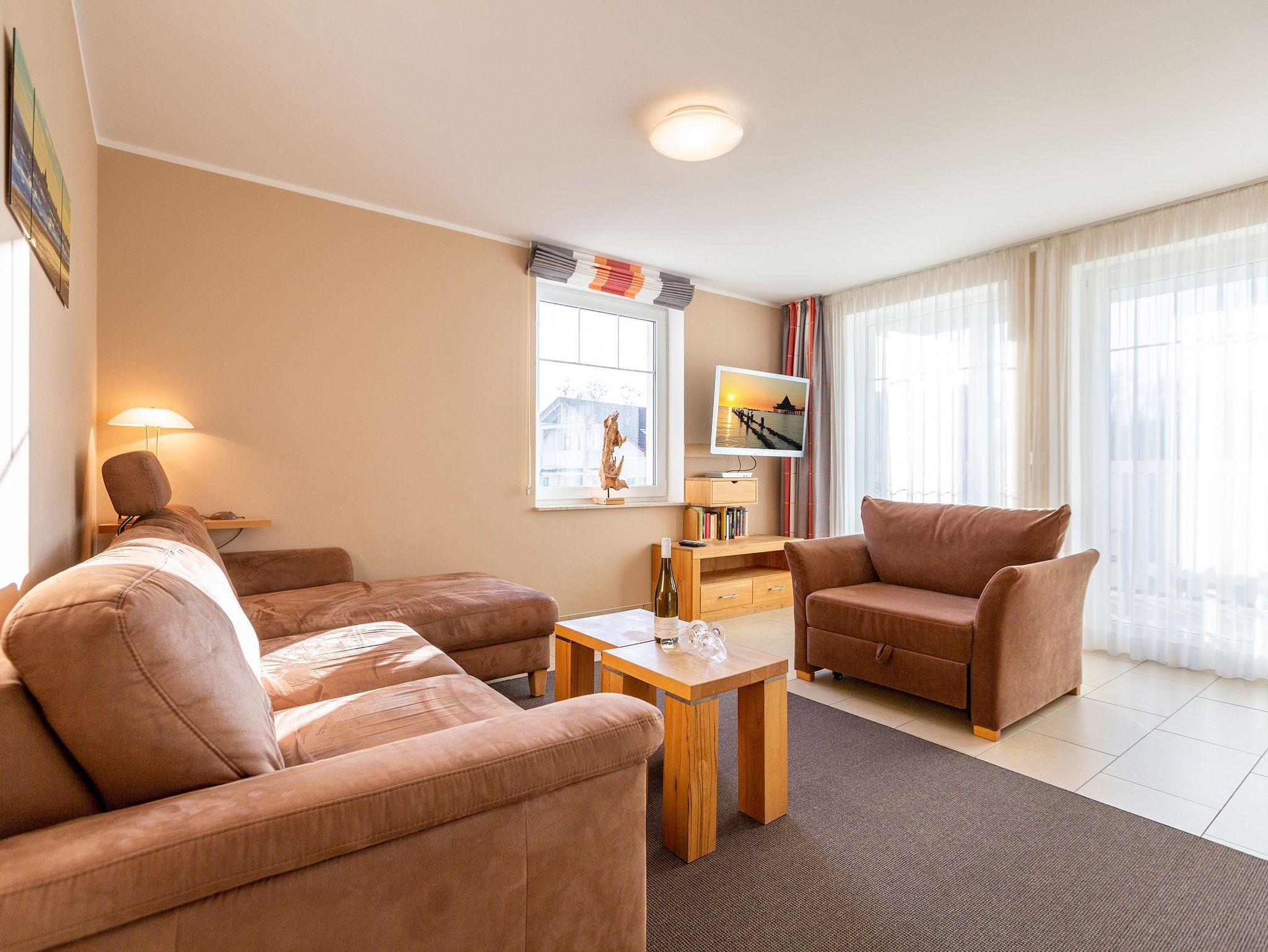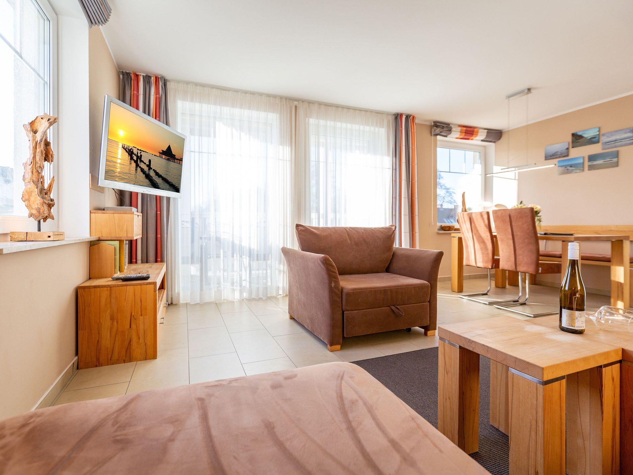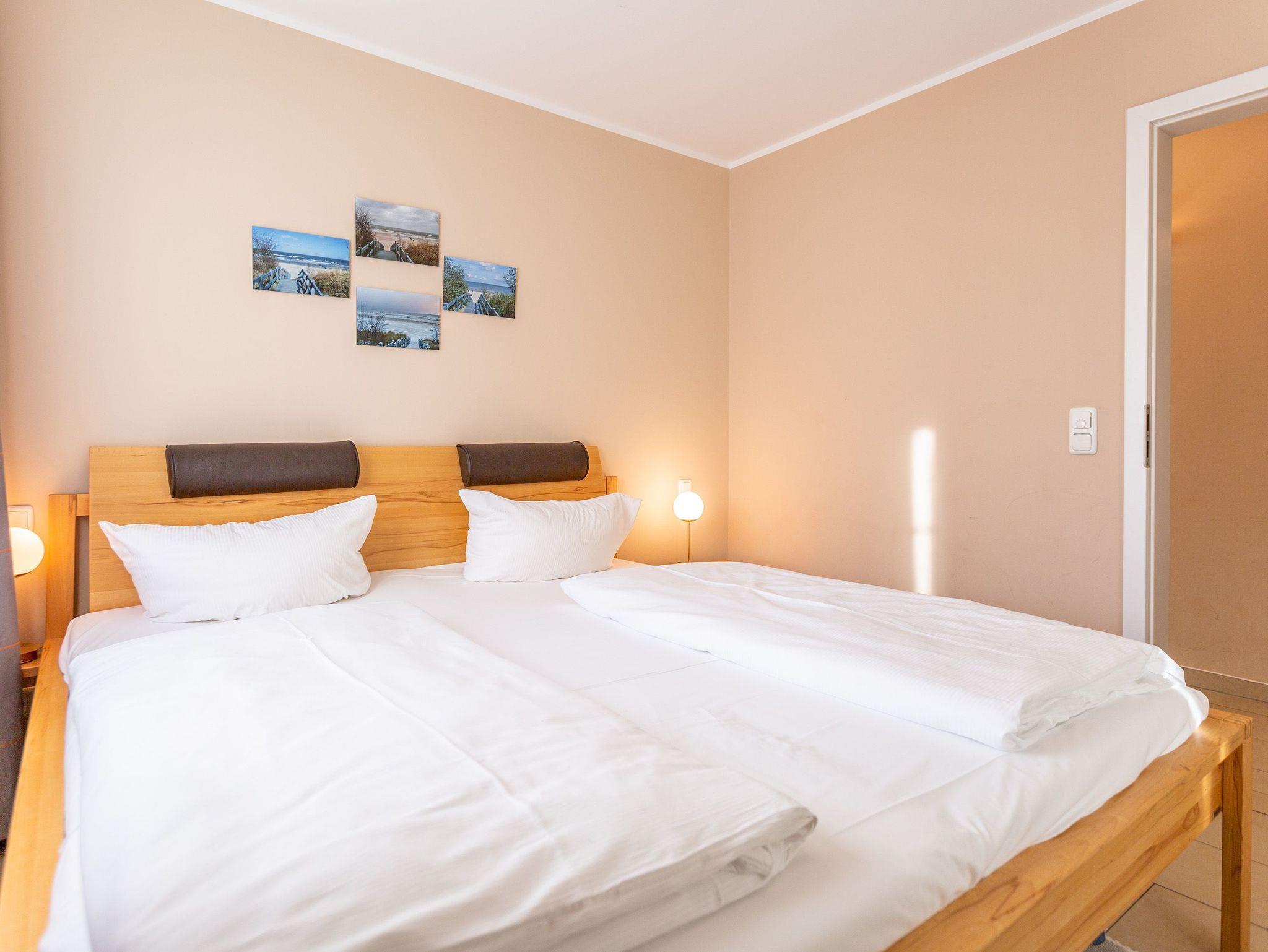 Kuschelig, gemütlich und absolut strandnah ist dieses kleine Urlaubsparadies. Auf seinen 46 Quadratmetern empfängt es Ostseeliebhaber und Auszeithungrige mit viel Komfort. Bis zu 2 Personen und ein Kleinkind bis drei Jahre haben in den zwei Zimmern im 1. Stock des Dünendomizils Platz. Ein Kinderreisebett kann bereit gestellt werden; Matratze und Bettzeug dafür müssen jedoch selbst mitgebracht werden. Der Wohnbereich ist hell und wunderbar sonnenverwöhnt. Eine schöne, große Wohnlandschaft wird zur idealen Relaxing Area mit Blick auf den großen Flat-TV oder hinaus auf den Balkon. Genießen Sie von hier aus mit einem eisgekühlten Getränk den Sonnenuntergang in all seinen romantischen Farben. Das Wohnzimmer geht nahtlos in einen großzügigen Essbereich mit Echtholztisch und offener Küche über. Mit allen Geräten hochwertig ausgestattet lässt sie keine Kochwünsche offen. Ein Kinderhochstuhl kann zur Verfügung gestellt werden (gegen Aufpreis). Müden Strandburgenbauern und Sonnenanbetern zaubert das Schlafzimmer mit seinem bequemen Doppelbett erholsame Träume. Das Bad verfügt über eine Dusche und WC. Für eine rundum entspannte Auszeit sind die Betten bereits bezogen und Handtücher liegen bereit. Das WLAN-Netz ist kostenfrei nutzbar. Zu der Wohnung gehört ein Pkw-Stellplatz in der Tiefgarage. Im Zeitraum von Mai bis September (je nach Witterung) steht Ihnen ein Strandkorb am Strand zur Verfügung.