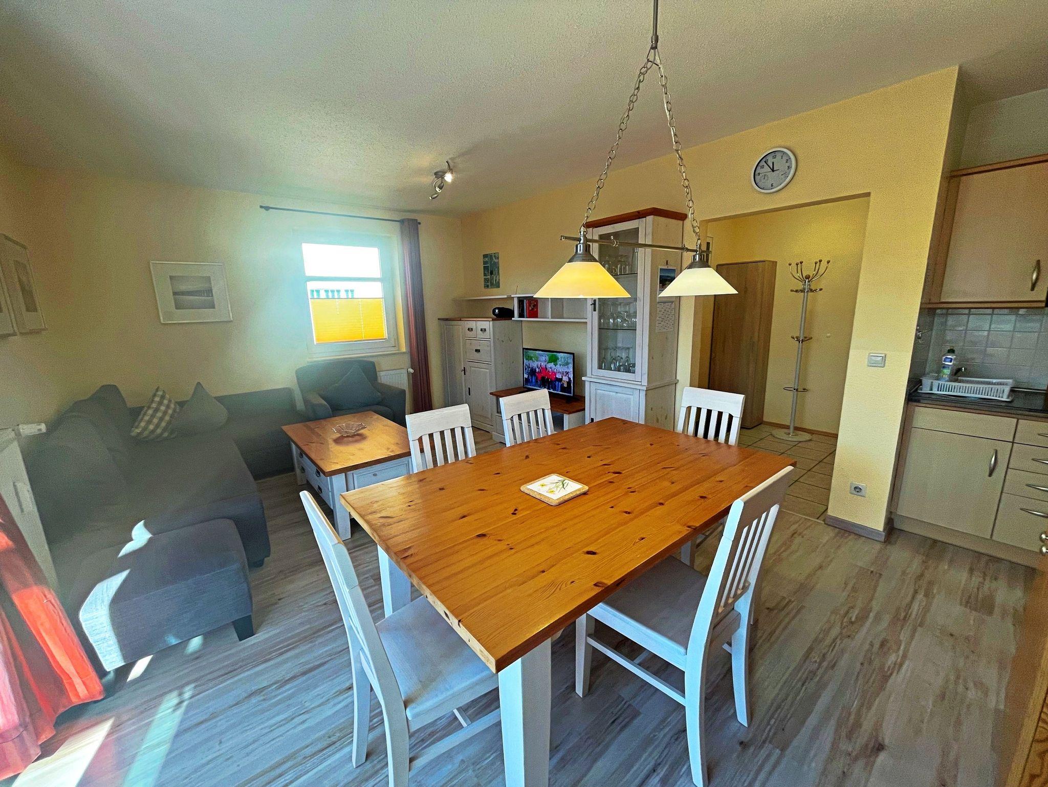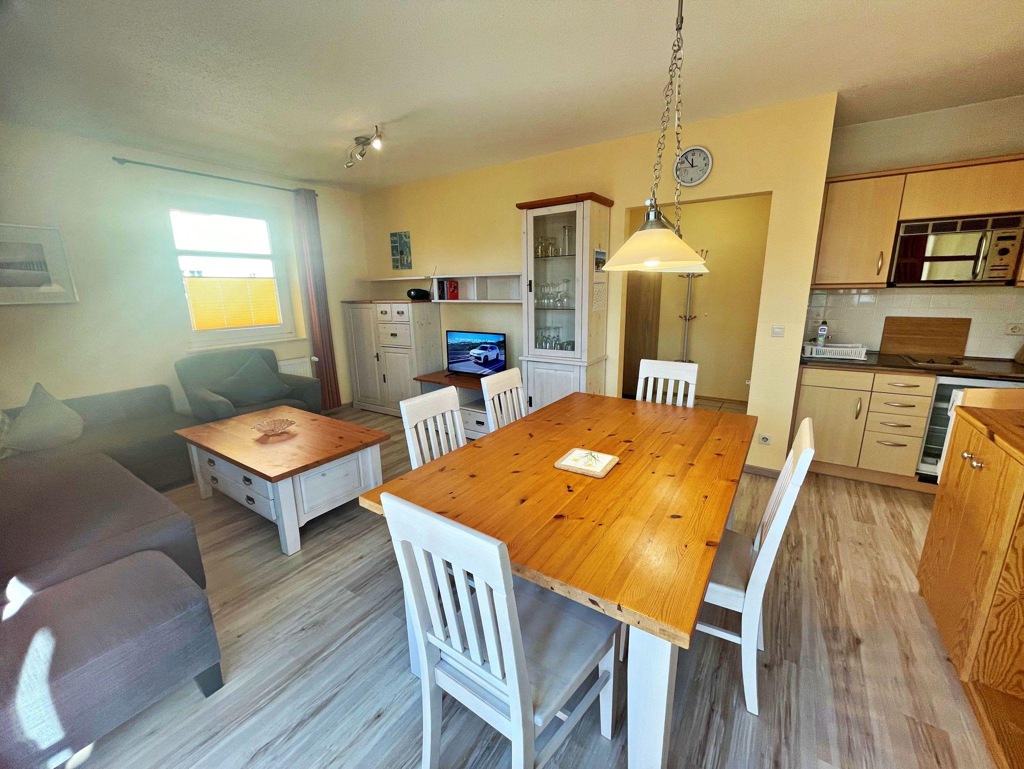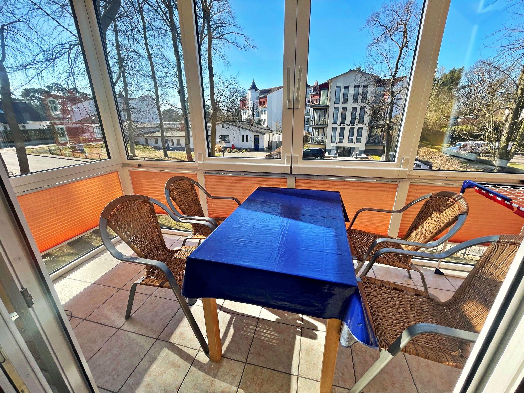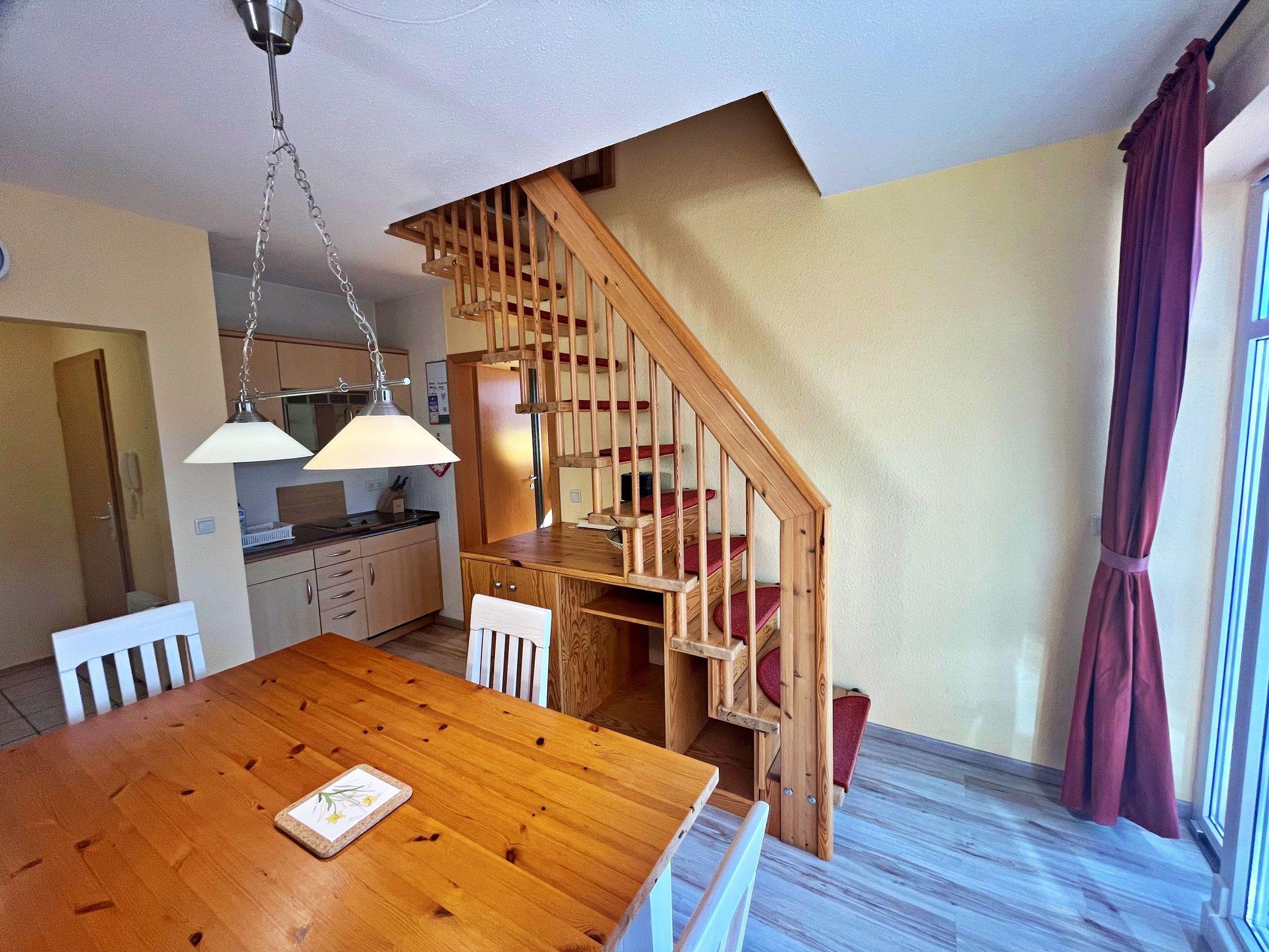 Herzlich willkommen in dieser charmanten 3-Raum Maisonette Ferienwohnung im Obergeschoss des Hauses Galeone im Ostseepark Waterfront! Hier finden bis zu 5 Personen den idealen Ort für einen angenehmen und entspannten Urlaub in Heringsdorf. Das einladende Wohnzimmer ist mit einer gemütlichen Sitzgarnitur ausgestattet, die zum Verweilen einlädt. Genießen Sie Ihre Lieblingssendungen auf dem Flachbild-TV oder entspannen Sie bei Musik über das CD-Radio. Die kleine Küchenzeile mit Elektroherd, Kühlschrank und Mikrowelle bietet Ihnen die Möglichkeit, sich selbst zu versorgen. Im angrenzenden Wintergarten können Sie Ihr Frühstück in der Morgensonne genießen oder den Abend bei einem Glas Wein ausklingen lassen. Das erste Schlafzimmer verfügt über ein komfortables Doppelbett, während das zweite Schlafzimmer im Obergeschoss mit einer Schlafcouch und einem Einzelbett ausgestattet ist - ideal für Familien oder Gruppen. Das Tageslicht-Bad ist mit Dusche und WC eingerichtet. Für Ihren Komfort steht Ihnen ein Pkw-Stellplatz auf dem umzäunten Grundstück zur Verfügung. Zudem können Sie gegen Entgelt eine Waschmaschine und einen Wäschetrockner im Objekt nutzen. Die Erstausstattung Bettwäsche und Handtücher kann bei der Buchung der Ferienwohnung für nur 17,50 € pro Person hinzugebucht werden. WLAN-Zugang ist für ein Gerät kostenfrei, für jedes weitere Gerät werden 10 € pro Woche berechnet.