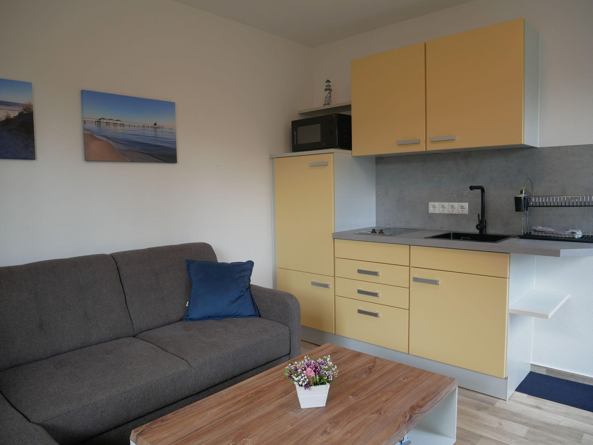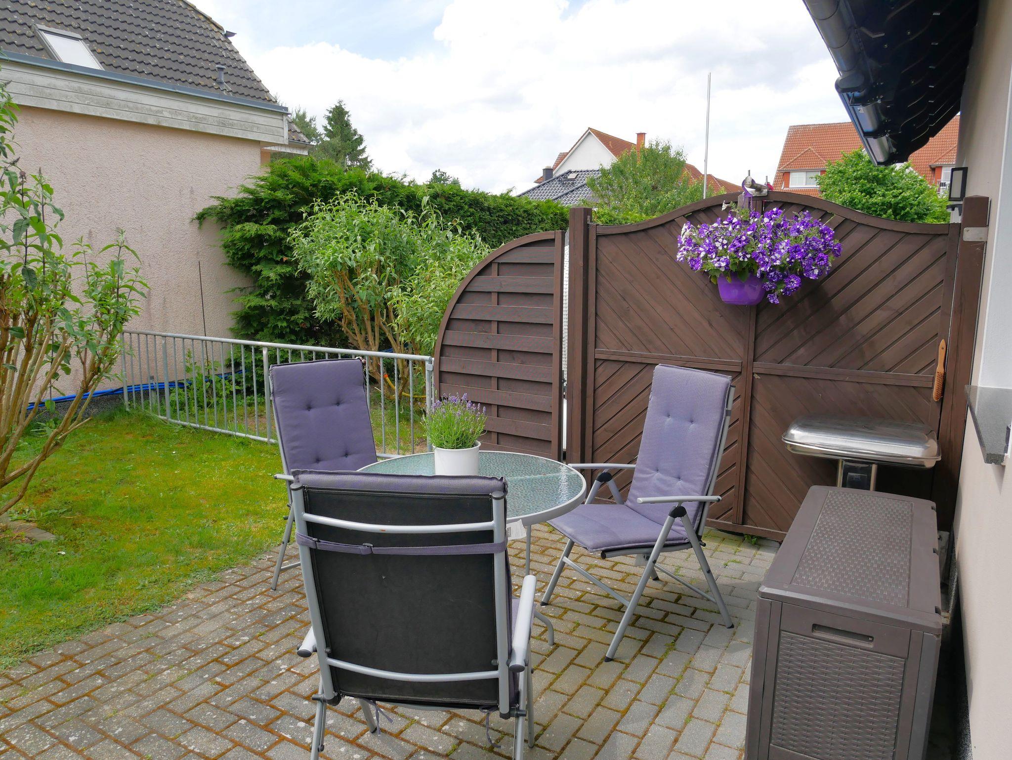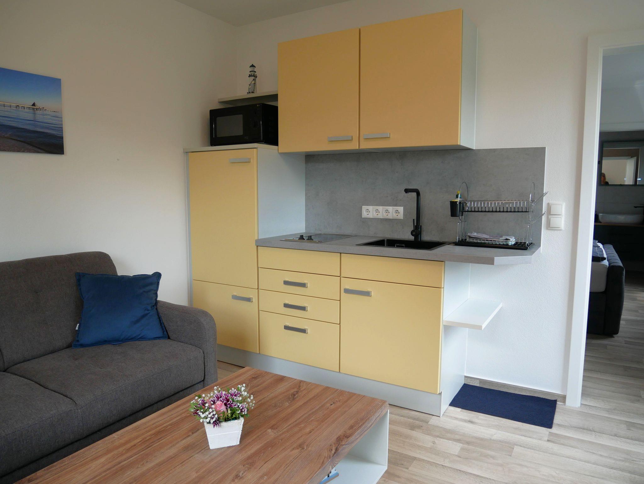 Die gemütlich und modern eingerichtete Ferienwohnung ist ca. 30qm groß und für max. 3 Personen geeignet. Sie verfügt über einen Wohnraum mit bequemer Couchsitzecke, Flat-TV, HIFI Anlage und CD-Player. Die im Wohnraum integrierte Küchenzeile verfügt über einen 2 Plattenherd, Kühlschrank mit Gefrierfach, Mikrowelle, einen Minibackofen und ausreichend Geschirr. Natürlich sind auch Kaffeemaschine, Wasserkocher und Toaster vorhanden. Im Schlafzimmer befindet sich ein modernes Boxsprinbett mit Nachtschränken sowie ein geräumiger Kleiderschrank. Das Tageslichtbad ist mit einer bodengleichen Regendusche, Waschtisch und beleuchtetem Spiegel ausgestattet. W-Lan ist vorhanden.Des Weiteren steht Ihnen eine Terrasse mit Grillmöglichkeit zur Verfügung. Bettwäsche und Handtücher sind inklusive.