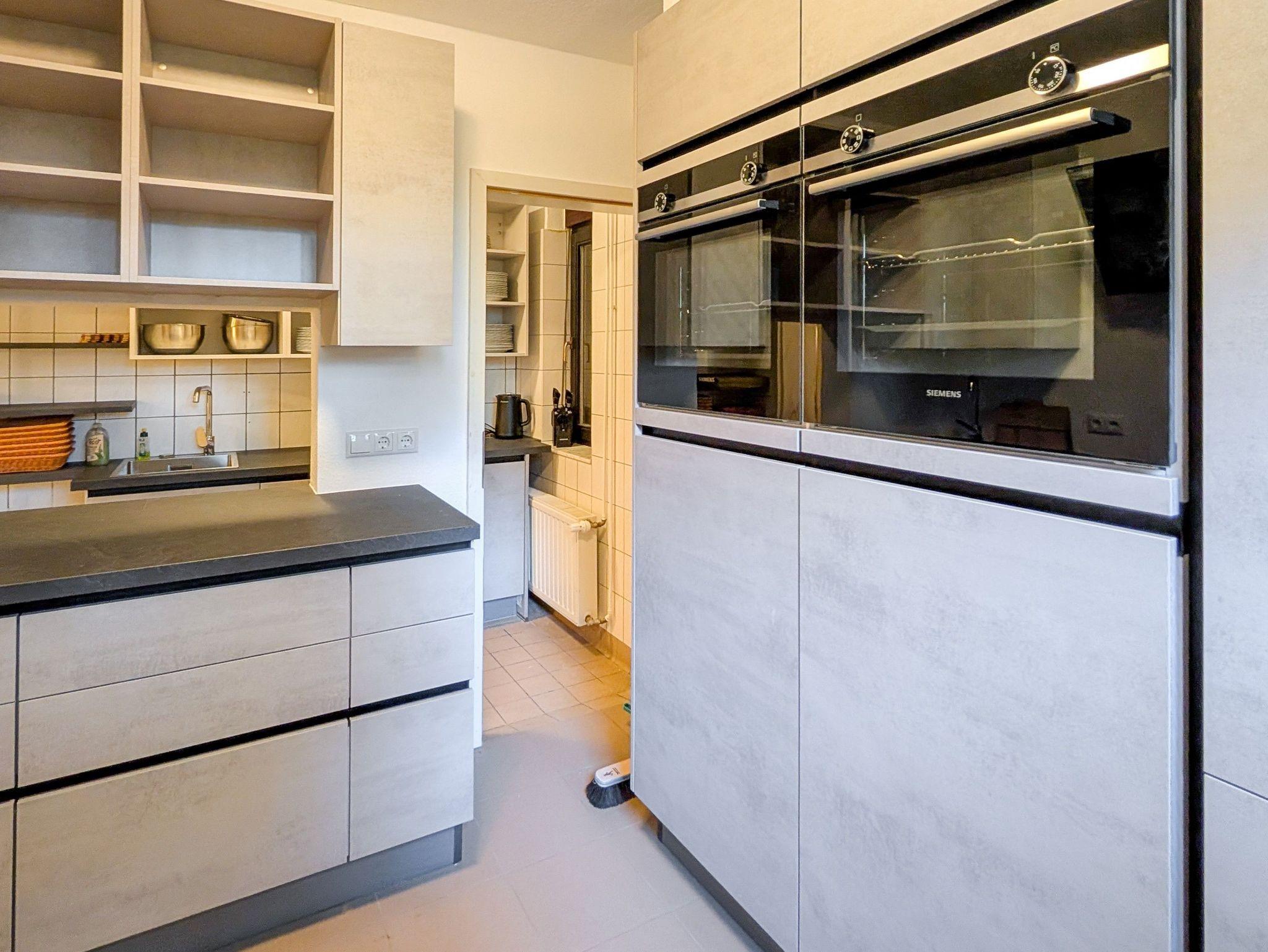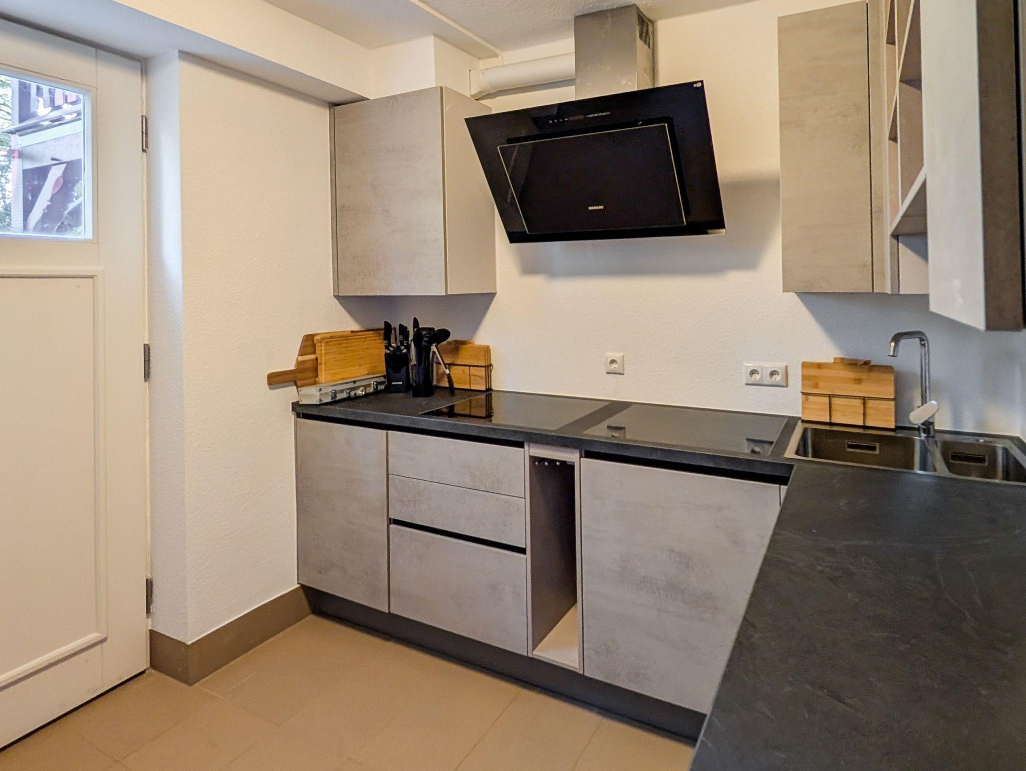 Eine Dachgeschoss Wohnung mit 1 Schlafzimmer für 2 Personen; Ein Schlafzimmer mit einer Bettengröße von 160er mit einer Küche (Blick Lindemannstraße/Hauptstraße/Wald); Bad mit Badewanne, WC und Waschbecken
