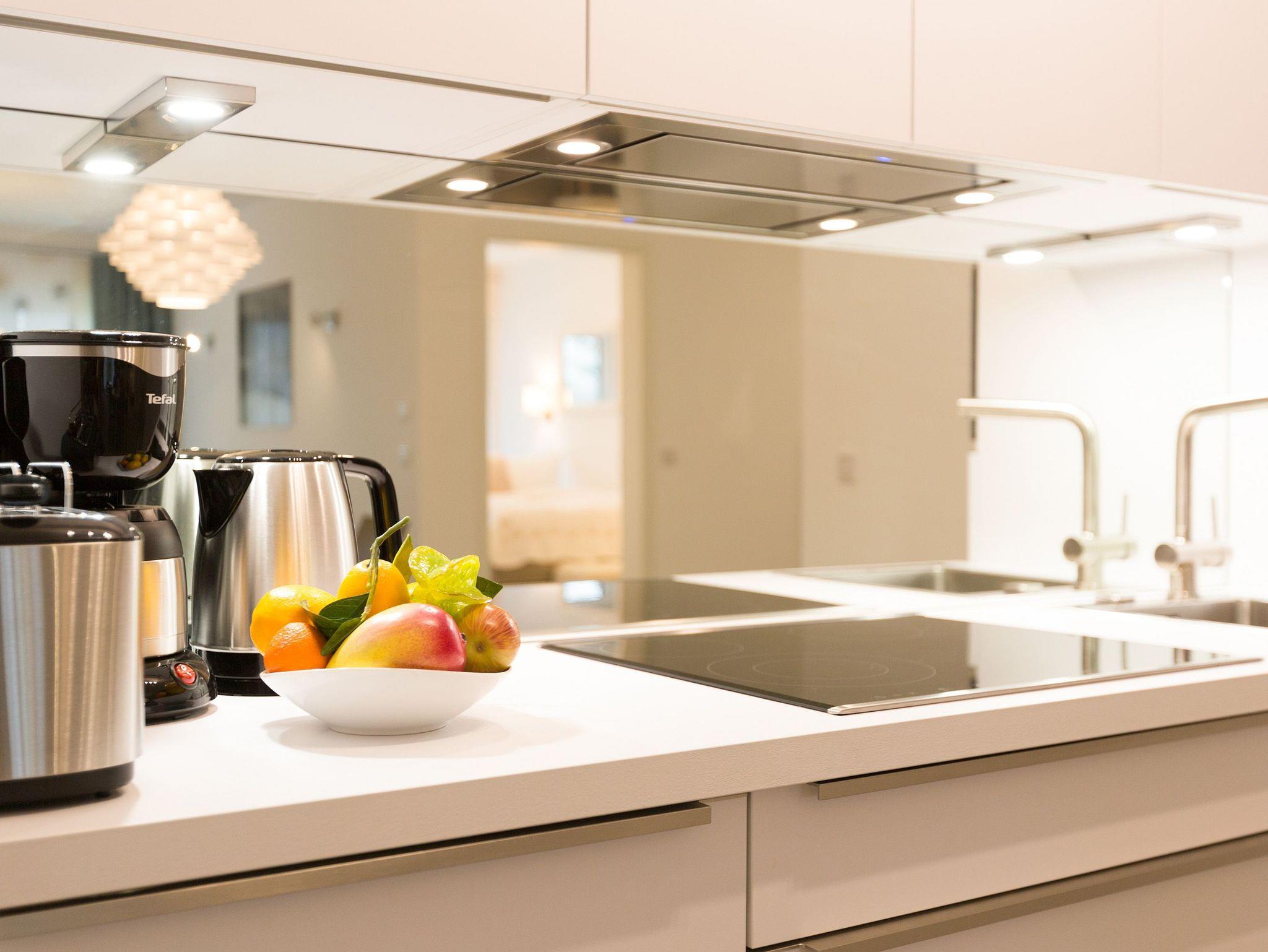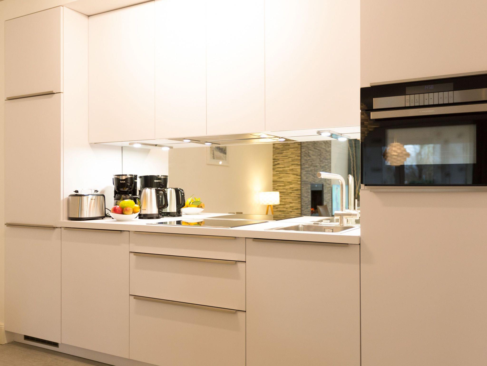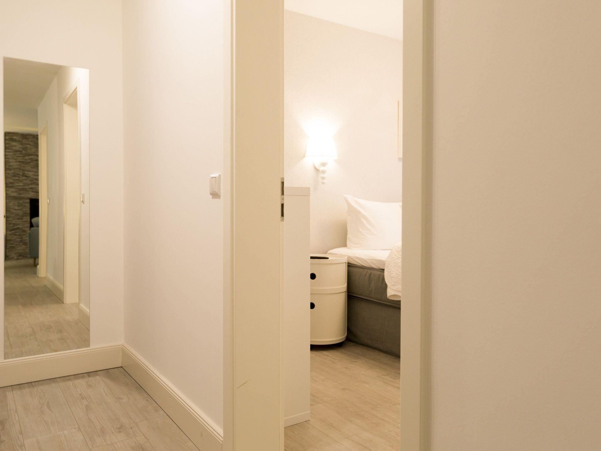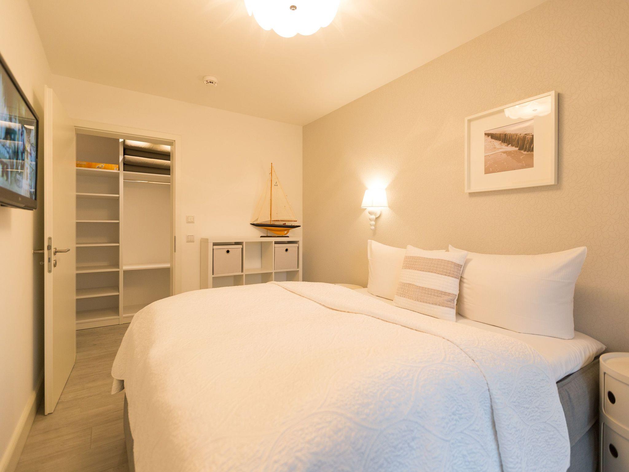 Er ist ein echter Hingucker schon beim Eintreten in dieses elegante und stilvolle Urlaubsappartement im Erdgeschoss der Dünenresidenz Heringsdorf der große, in Stein gefasste Elektro-Kamin. Sein warmes Licht sorgt nicht nur an kühlen Tagen für wohlige Behaglichkeit. Es wartet eine Wohlfühlwelt auf Sie, die auf 80 Quadratmetern reichlich Platz für bis zu vier Erwachsene bietet. Das gesamte Interieur ist harmonisch aufeinander abgestimmt. Stylisch sind auf alle Fälle die nordischen Design-Lampen. Abschalten und den Alltagsstress vergessen, lässt es sich auf der Sitzgruppe mit gemütlicher Couch und Blick auf den Kamin oder den großen Flat-TV wunderbar. Machen Sie die großen, bodentiefen Wohnzimmerfenster auf, lassen sie das Meeresrauschen vom nur 50 Meter entfernten Ostseestrand und die lichten Sonnenstrahlen in ihr Domizil oder entspannen Sie auf der 20 Quadratmeter großen Südterrasse. Zum Wohnbereich gehört eine helle, offene Küche mit großem Esstisch. Mit allem ausgestattet, was das Kochherz höher schlagen lässt, können Sie hier das gemütliche Zusammensitzen und Schlemmen wahrhaft zelebrieren. Haben Sie Spaß und einen erholsamen Schlaf in den beiden Schlafzimmern. Denn hier locken bequeme Doppelboxspringbetten (einmal 1,80 m x 2,00 m und einmal 1,60 m x 2,00 m), um Ihnen die Nächte zu versüßen. Das Badezimmer ist sehr geräumig und mit Waschtisch, WC und großer Echtglas-Dusche ausgestattet. Die Betten sind bezogen und Handtücher liegen bei Ankunft bereit. Zu der Wohnung gehört ein Pkw-Stellplatz in der Tiefgarage (max. Einfahrtshöhe 1,93 m).