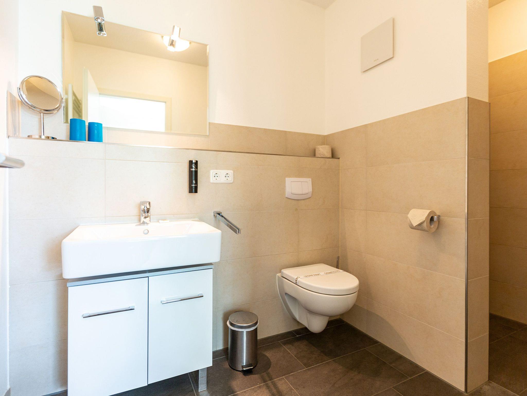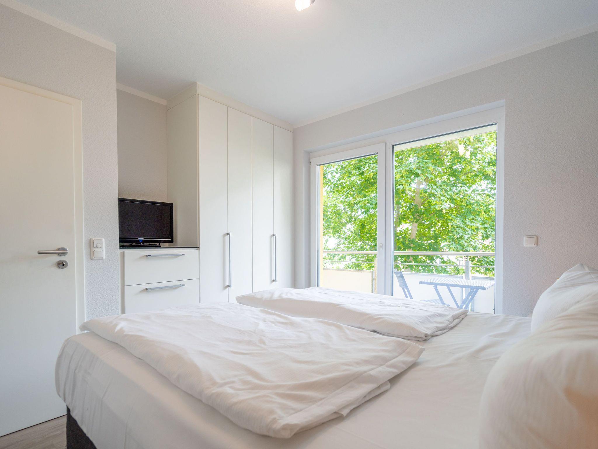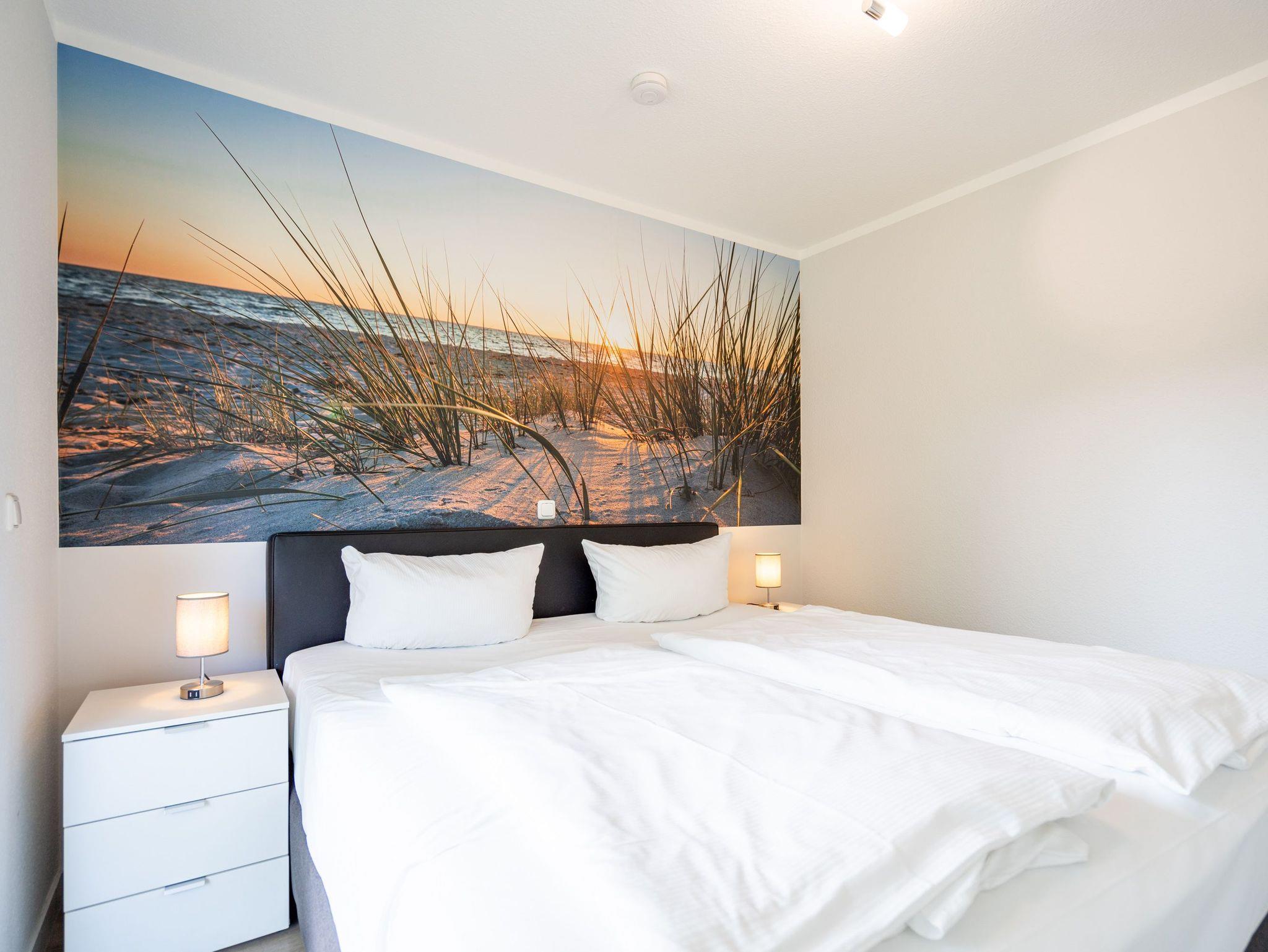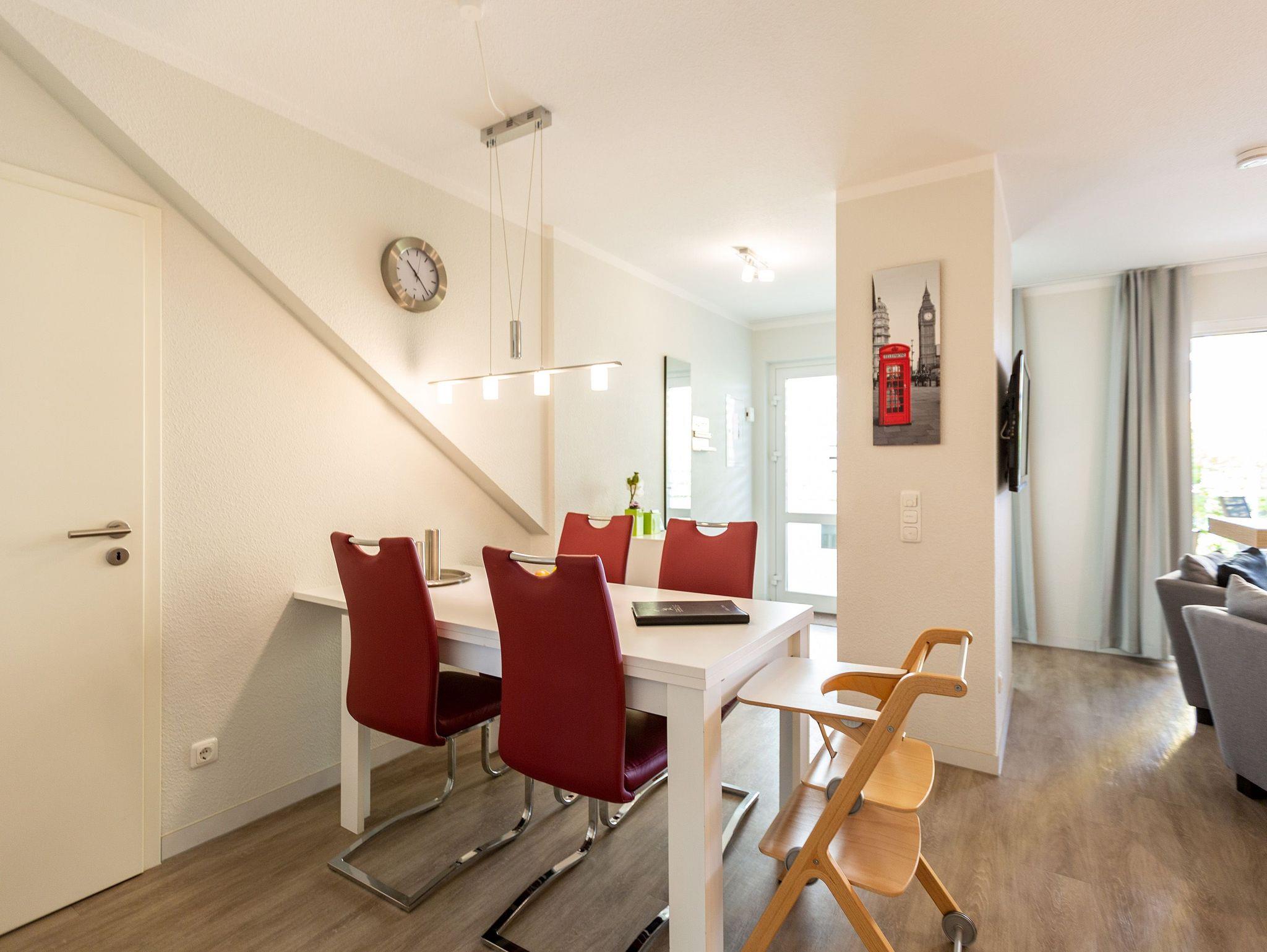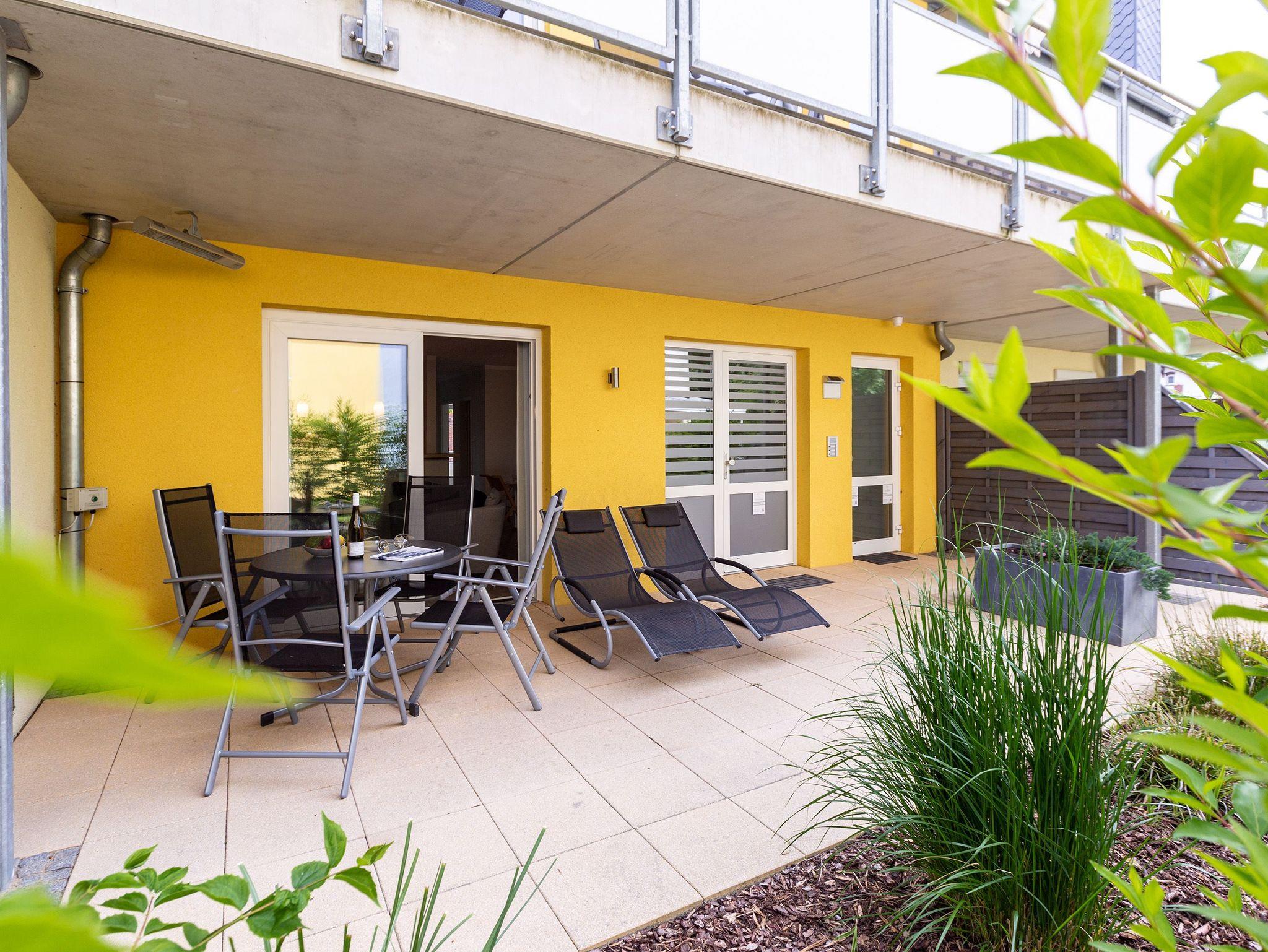 Ein moderner Wohn-Ess-Bereich empfängt den Urlaubsfreudigen in diesem schönen Domizil. Die elegante und stilvolle Einrichtung sorgt für eine gemütliche Atmosphäre. Eine schöne Ledersitzgruppe aus Sofa und Sessel ist ein echter Farbtupfer und lädt zum ausgiebigen Relaxen ein. Die Wohnung im Erdgeschoss des Domizils am Hang bietet auf 67 Quadratmetern viel Platz zum Urlauben. Bis zu vier Personen und ein Kleinkind (im Kinderreisebett) werden dieses kleine Fleckchen Usedom gar nicht wieder verlassen wollen. Die großzügige Südterrasse, die vom Wohnzimmer aus zugängig ist, mit Sonnenliegen und Esstisch ausgestattet, ist das Highlight dieses Appartements. Hier können Sie Sonne satt tanken. Die mit hochwertigen Markengeräten voll ausgestattete Küche ist zum Wohnraum hin offen, aber mit einem stylischen Tresen mit hohen Hockern von diesem abgegrenzt. Am schönen und großen Esstisch können Sie sämtliche Mahlzeiten mit viel Genuss zu sich nehmen. Zwei Schlafzimmer hat die Wohnung Nummer 2. In beiden wartet ein komfortables Boxspringdoppelbett (1,80 m x 2,00 m) nur darauf, Ihnen erholsame Träume zu schenken. Beide Zimmer haben einen Flat-TV mit DVD-Player und Zugang zu einem eigenen, kleinen Balkon, auf dem Sie schon morgens die Sonne genießen können. Die Schränke bieten viel Ablagefläche für die Urlaubsgarderobe. Das Appartement verfügt außerdem über zwei Badezimmer mit ebenerdiger und geräumiger Dusche, Waschtisch und WC. Das Masterbad ist von einem der beiden Schlafzimmer aus zugängig. In beiden Bädern liegen Handtücher für Sie bereit. Zudem sind die Betten bei Anreise für Sie bezogen. Zu der Wohnung gehört ein Tiefgaragenstellplatz. Es gibt auch einen Fahrradabstellraum. Das WLAN-Netz ist kostenfrei nutzbar.
