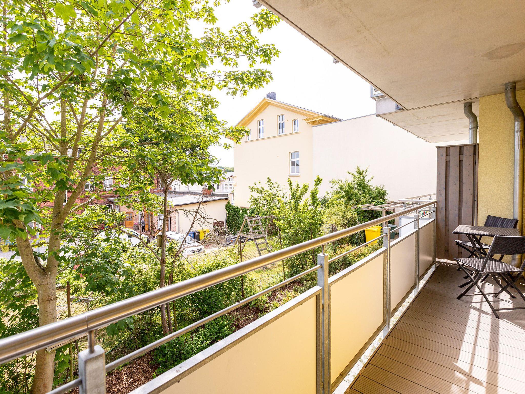 Etwas versteckt, aber dennoch zentral gelegen, empfängt Sie das Domizil am Hang, bestehend aus Haus A [&] Haus B. Es erwarten Sie individuell gestaltete 2- und 3-Raum-Appartements mit Balkonen, Terrassen und hochwertiger Ausstattung. Fu?r beide Ha?user steht eine Tiefgarage zur Verfu?gung, in der fu?r jede Wohnung ein PKW- Stellplatz vorhanden ist. Aus dieser Tiefgarage ist ein Zugang zum Aufzug und zu den Wohnungen des Hauses B möglich (unabha?ngig davon ob man mit oder ohne PKW anreist). Von dort haben Sie Zugang zum Haus A, welches über keinen Aufzug verfügt. Die oberen Appartements sind ausschließlich über Treppen zu erreichen. Bis zum Strand und zur Promenade sind es ca. 400m Fußweg. Im Haus sind die Waschmaschine und Trockner gegen Gebühr nutzbar. Außerdem steht für jede Wohnung ein Briefkasten am Haus zur Verfügung.