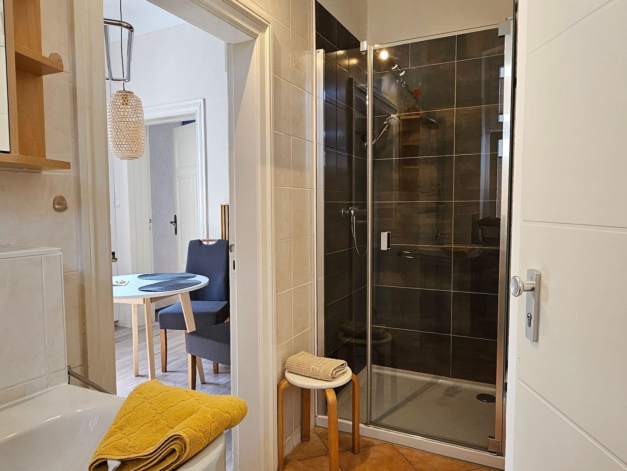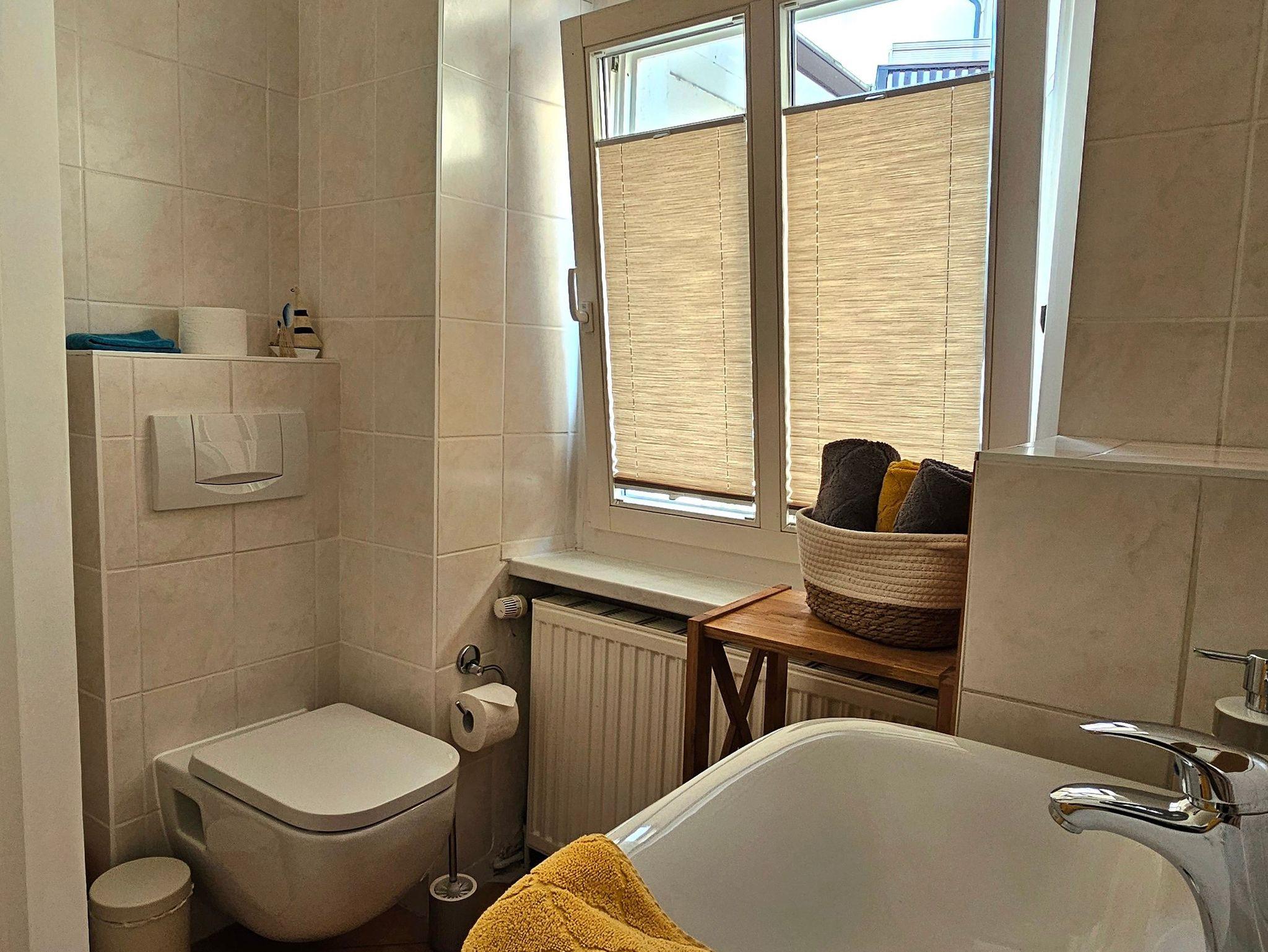 Die Erstausstattung mit Handtüchern und Bettwäsche ist inklusive. Vor der Wohnung kann die Sitzecke genutzt werden, sowie die Wäschespinne im Garten.