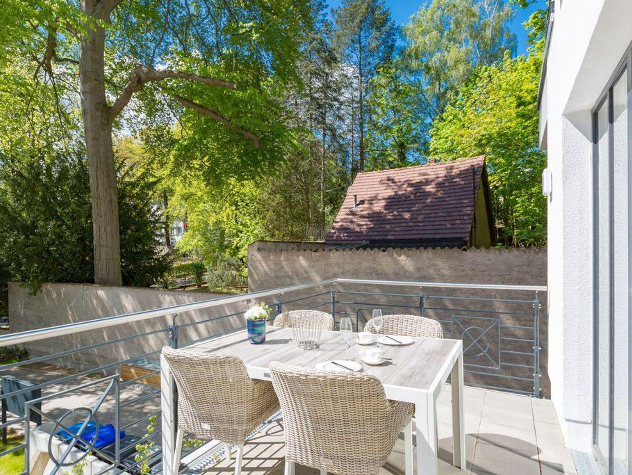Hier schlägt das Herz des Kaiserbades. Umgeben vom Charme der alten Bädervillen können Ostseeliebhaber eintauchen ins mondäne und schon zu Kaiserzeiten beliebte Heringsdorf. Urlaub in ganz besonderer Atmosphäre. Anders als die umliegenden Häuser ist das Quartier am Waldschloss jedoch ein absolut modernes Kleinod mit stylischem Wohnkomfort. Das erst 2018 neu gebaute Haus empfängt seine Gäste in den Zwei- und Drei-Zimmer-Appartements mit viel Stil und Exklusivität. Es fehlt an nichts. Eine elegante, harmonisch aufeinander abgestimmte und gemütliche Einrichtung, eine hochwertige Küchen-Ausstattung, Kaminöfen, in jedem Appartement eine eigene Finnische Sauna, Balkone oder sonnenüberflutete Terrassen: Wohlfühlen der Extraklasse ist hier angesagt. Mit dem Aufzug geht?s in die oberen Etagen. Und für Ihr Auto gibt es einen für Sie reservierten Tiefgaragen-Stellplatz (Einfahrthöhe max. 2,00 m, Stellplatzbreite max. 2,30m, eingeschränkte Wendemöglichkeit). Und die Ostsee ist auch nur wenige Gehminuten entfernt. Wenn Sie das Besondere im Urlaub lieben, sind Sie im Quartier am Waldschloss genau richtig.