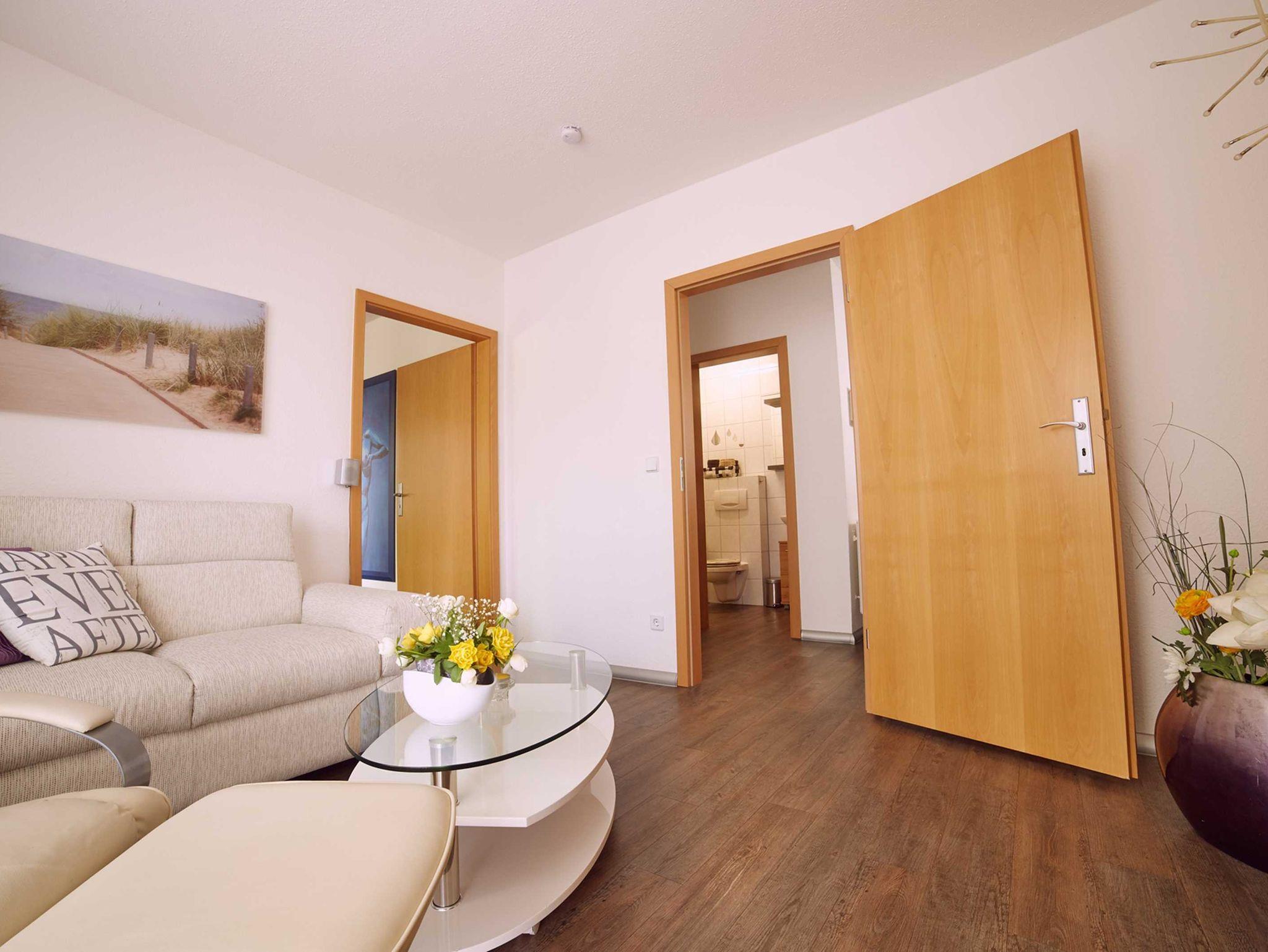 Mit insgesamt 43qm bietet die Ferienwohnung neben einem Wohnzimmer mit Couch, Relax-Sessel und TV auch eine voll ausgestattete Küche mit Backofen, Spülmaschine, Mikrowelle, Herd sowie Essbereich. Ein geräumiges Schlafzimmer mit Doppelbett, Kleiderschrank und TV sowie ein Bad mit Dusche/WC runden den Komfort der Wohnung ab. Im Sommer haben Sie zudem die Möglichkeit auf der Terrasse zu grillen (Elektrogrill) und den Tag so entspannt ausklingen zu lassen. WLAN steht Ihnen ebenfalls in der gesamten Wohnung kostenfrei zur Verfügung.