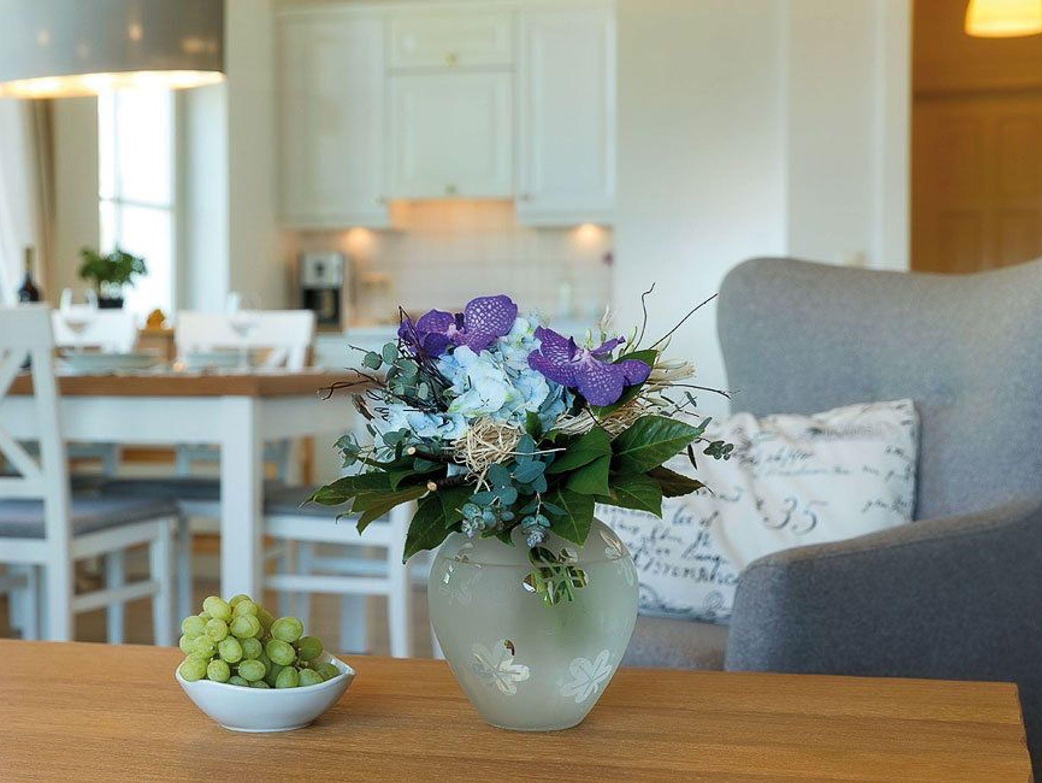 In dem großzügigen kombinierten Wohn- Koch- und Essbereich wartet eine gemütliche Sitzecke mit TV, Blurayplayer uvm. zum Entspannen auf Sie sowie eine vollausgestattete Küche mit allen Raffinessen (Geschirrspüler, Kühlschrank mit Gefrierfach, Waschmaschine, Wasserkocher, Toaster, Kaffeemaschine, Mikrowelle) sowie ein Essplatz für 6 Personen. Highlight des Appartements ist die große Fensterfront des Wohnzimmers, die einen tollen Blick auf das Heringsdorfer Meer und über die Dächer von Heringsdorf bis nach Bansin gewährt. Genießen Sie von dort mit einem spannenden Buch die einzigartige Wirkung des Meeres.