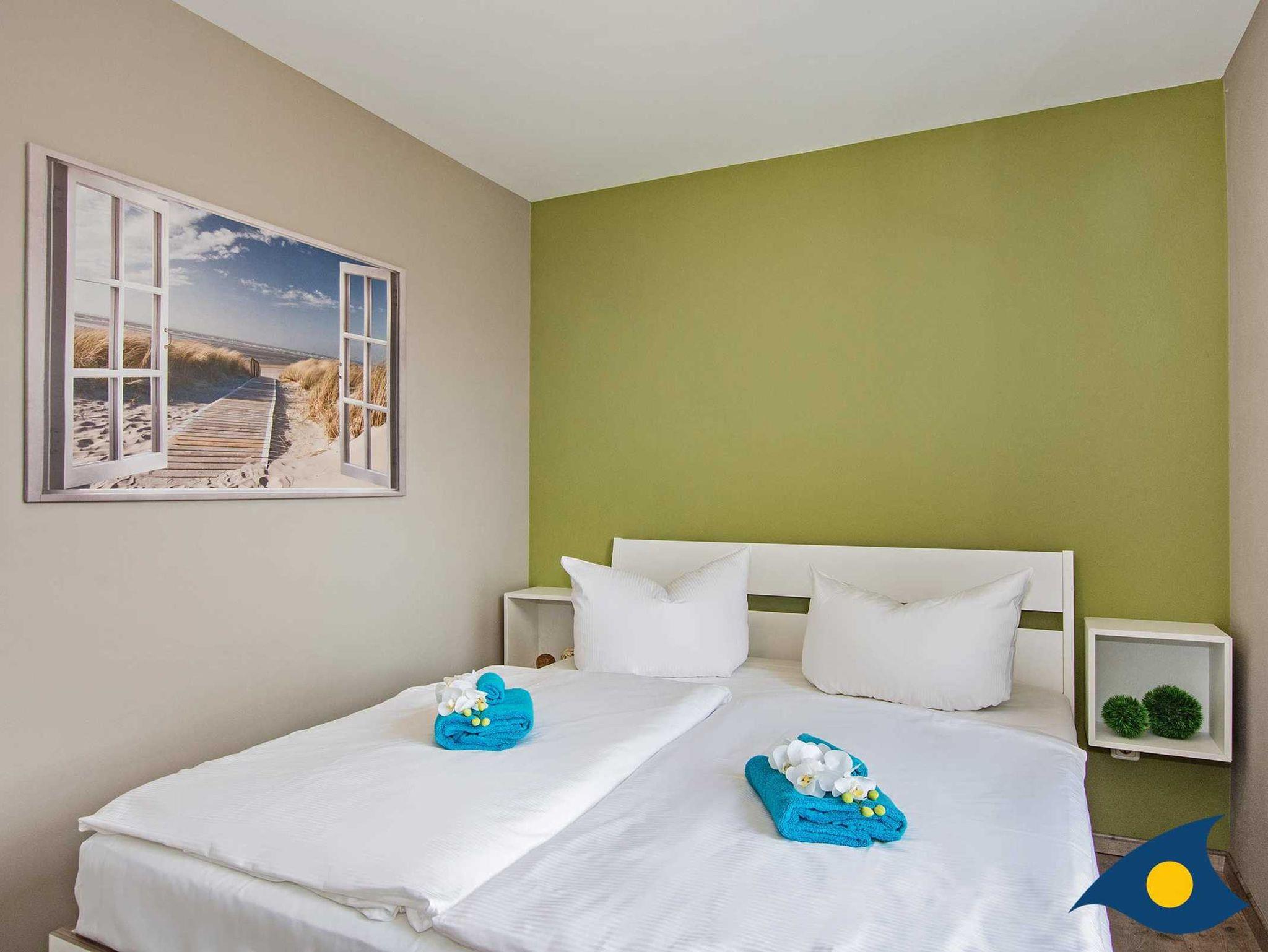 Die 4 Schlafplätze befinden sich in dem gemütlichen Schlafzimmer sowie auf dem bequemen Schlafsofa im Wohnzimmer. Das Schlafzimmer bietet zudem genügend Stauraum für Ihre Urlaubsgarderobe.