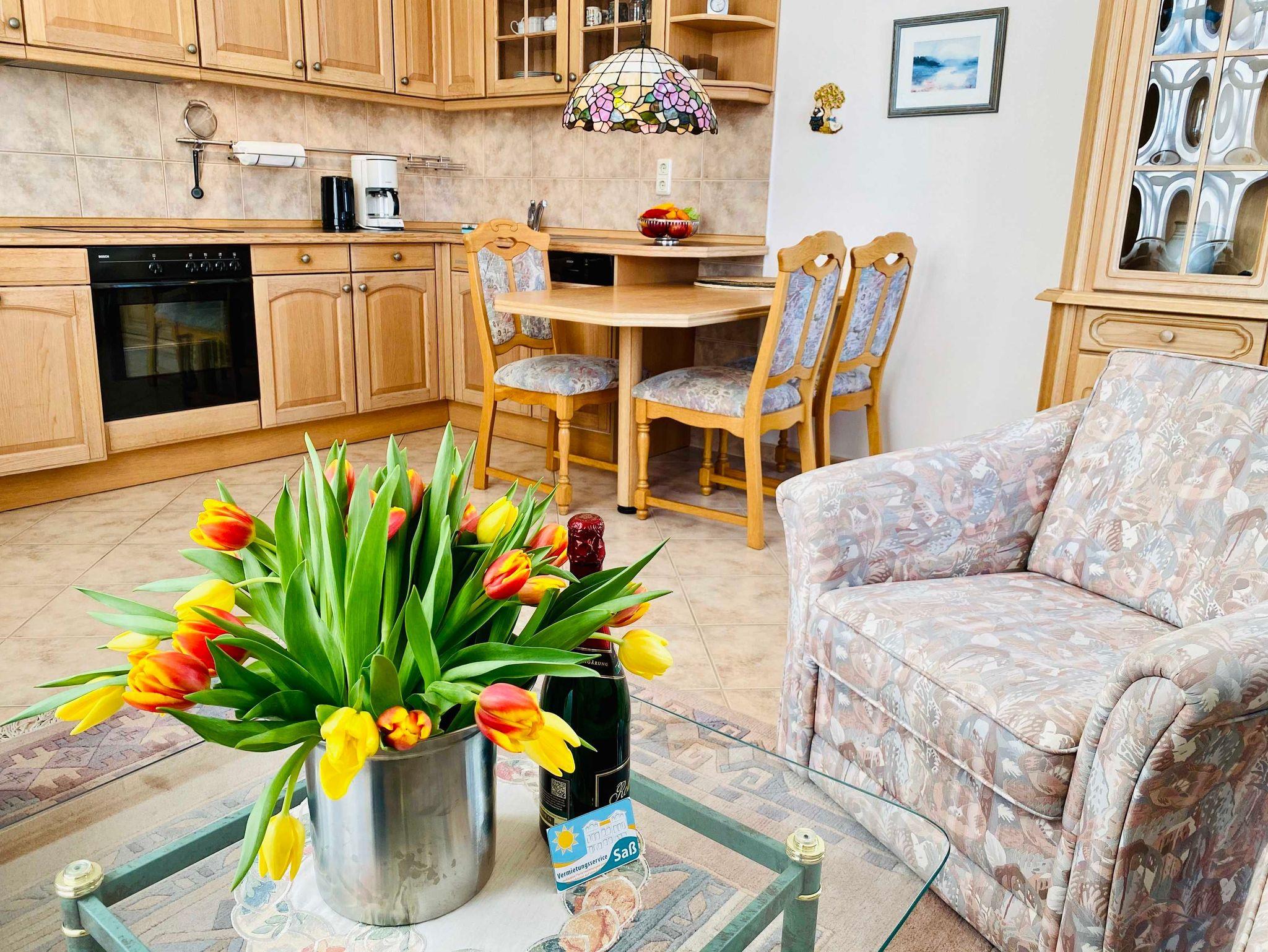 Die Ferienwohnung 10C ist eine sonnige 2-Raumwohnung mit 2 großen Balkonen, einer überdacht in Richtung Nordost und ein großer Balkon Richtung Süd.