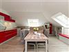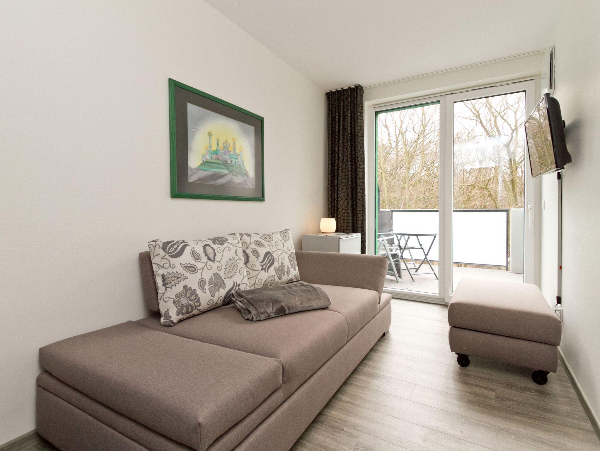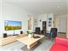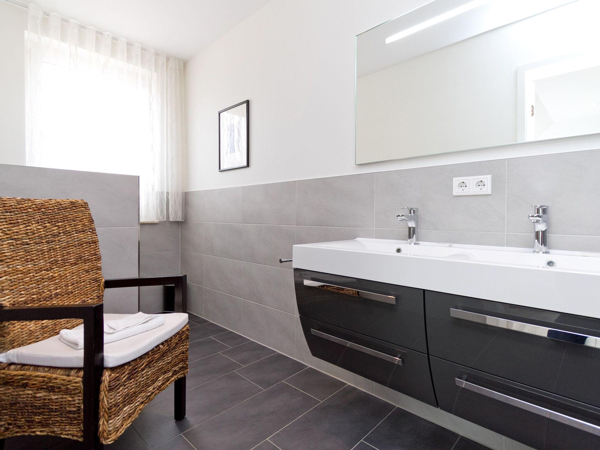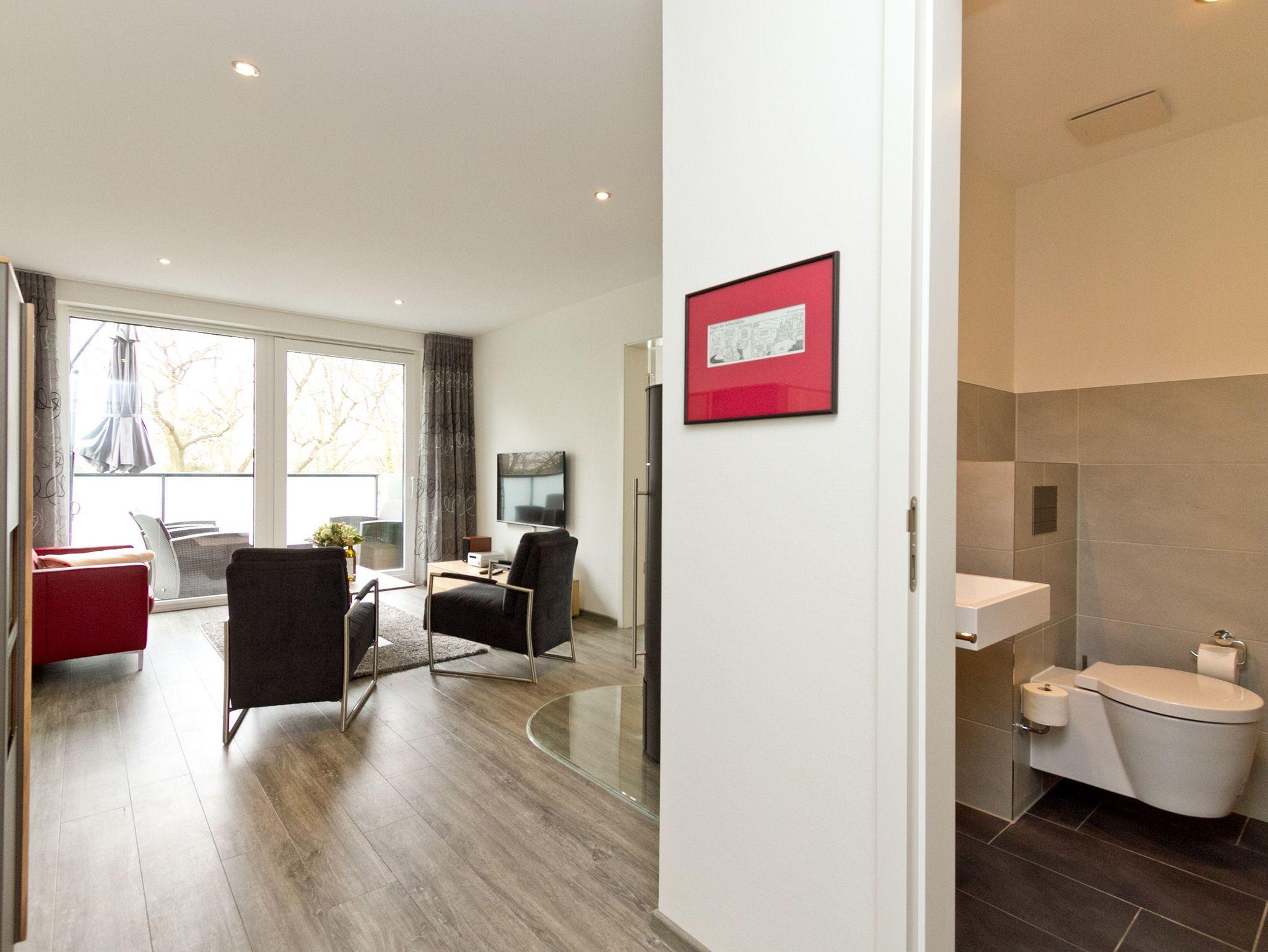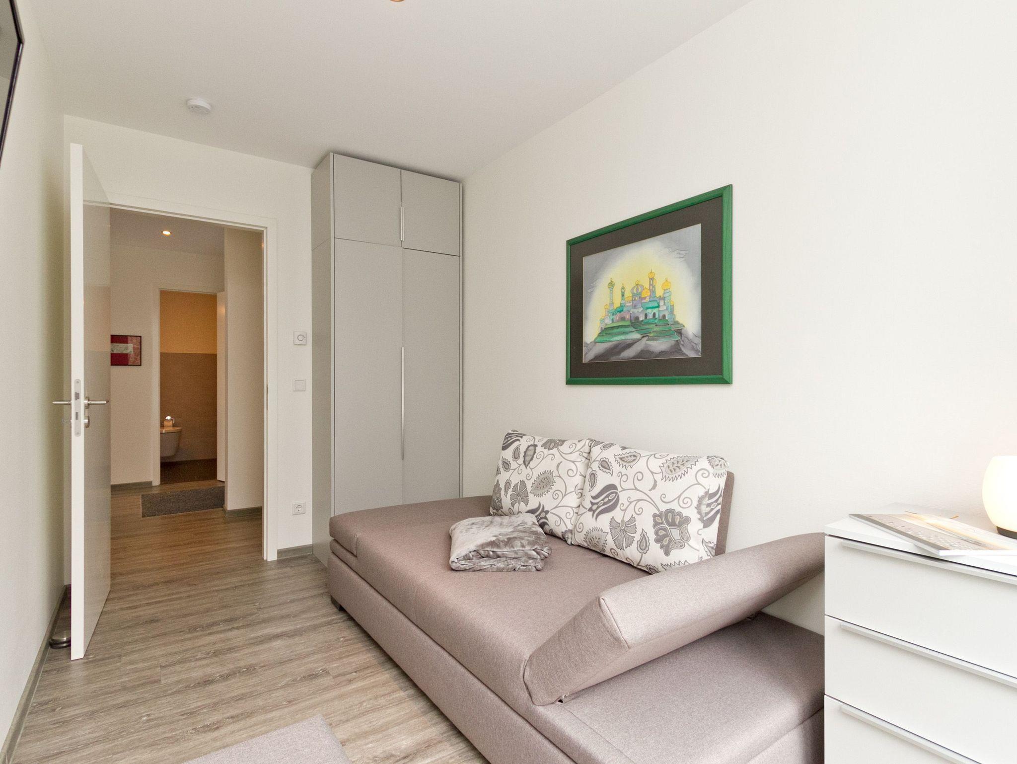 Hell, großzügig und modern ? das Appartement 17 im 2. Obergeschoss bietet auf 85 Quadratmetern entspannten und stylischen Wohnkomfort für vier Personen und ein Kleinkind im Kinderreisebett. Auch ihr Hund wird dieses schöne Urlaubsdomizil lieben. Denn hier darf er mit in den Urlaub. Eine absolute Wohlfühlzone ist das geräumige und offene Wohn-Esszimmer mit einem wunderschönen, gekälkten Holztisch, einem Echtholzkaminofen und einer gemütlichen Sofa-Sitzgruppe. Am großen Tisch finden alle für gemeinsame Mahlzeiten Platz. Genauso auf der roten Ledercouch und den Sesseln. Genießen Sie unvergessliche Momente zusammen. Ein Flat-TV mit DVD-Player sorgt für beste Heimkinounterhaltung. Die offene Küche ist hochmodern und mit Highend-Geräten wie einer Kochinsel mit Bora-Abzug ausgestattet. Geschirrspüler, Kühlschrank, Mikrowelle, Wasch-Trockner, Geschirr ? alles ist da. Vom Wohnzimmer aus haben Sie Zugang zu einem Balkon (8 Quadratmeter) mit Gartenmöbeln. Es gibt doch nichts Schöneres, als im Sommerurlaub unter freiem Himmel zu frühstücken. Das Appartement verfügt über zwei Schlafzimmer. Eines ist mit einem Doppelbett (1,80 m x 2,00 m), einem Flat-TV, einem Sideboard und einem Schrank ausgestattet. An dieses Zimmer schließt sich das Masterbad mit ebenerdiger, sehr großzügig geschnittener Dusche, Doppelwaschtisch und WC an. Im zweiten Schlafzimmer gibt es eine ausklappbare Schlafcouch (1,80 m x 2,00 m), ebenfalls einen Flat-TV, eine Kommode und einen Schrank für die Urlaubsgarderobe. Das zweite Schlafzimmer hat einen eigenen, kleinen Balkon (4 Quadratmeter). Ein separates Gäste-WC sorgt dafür, dass es bei dringenden Angelegenheiten keinen Stau gibt. Handtücher liegen für Sie bereit und auch die Betten sind bei Anreise bezogen. Auf Wunsch stellen wir für die kleinen Gäste ein Kinderreisebett (ohne zusätzliche Matratze [&] Bettzeug) und einen Kinderhochstuhl (gegen Aufpreis) zur Verfügung. Das WLAN-Netz ist kostenfrei nutzbar.