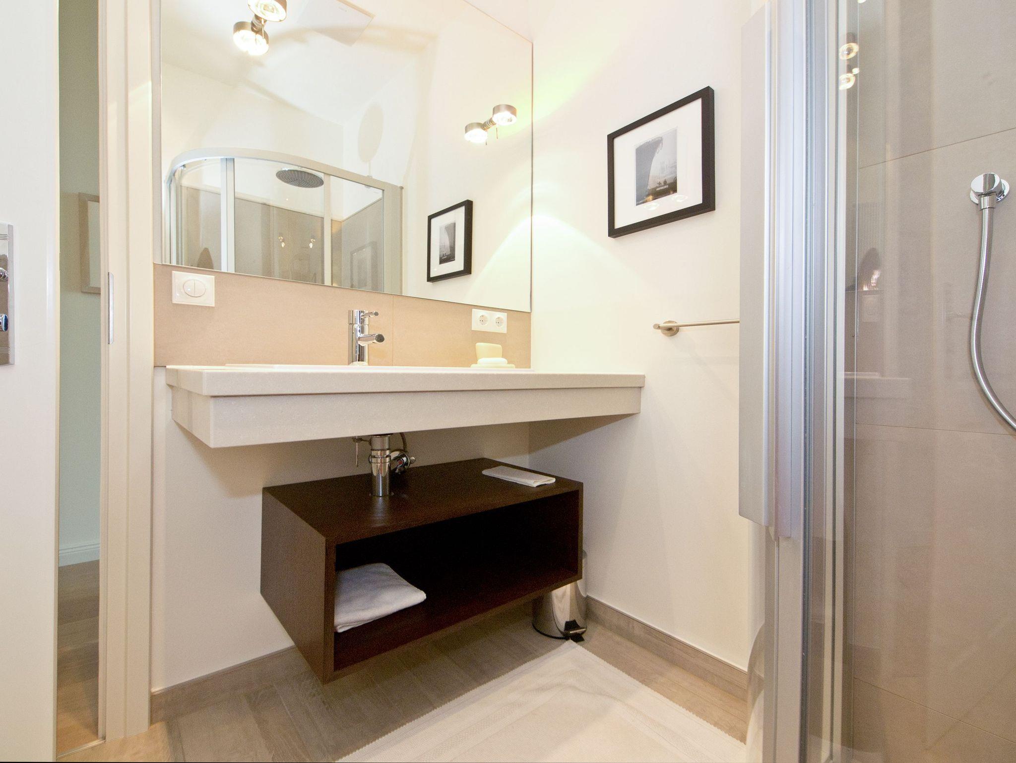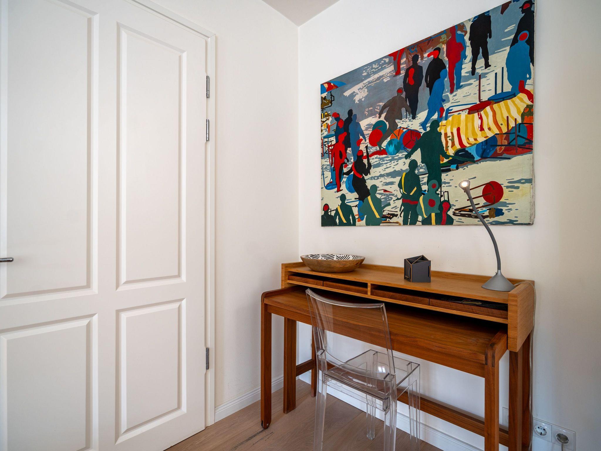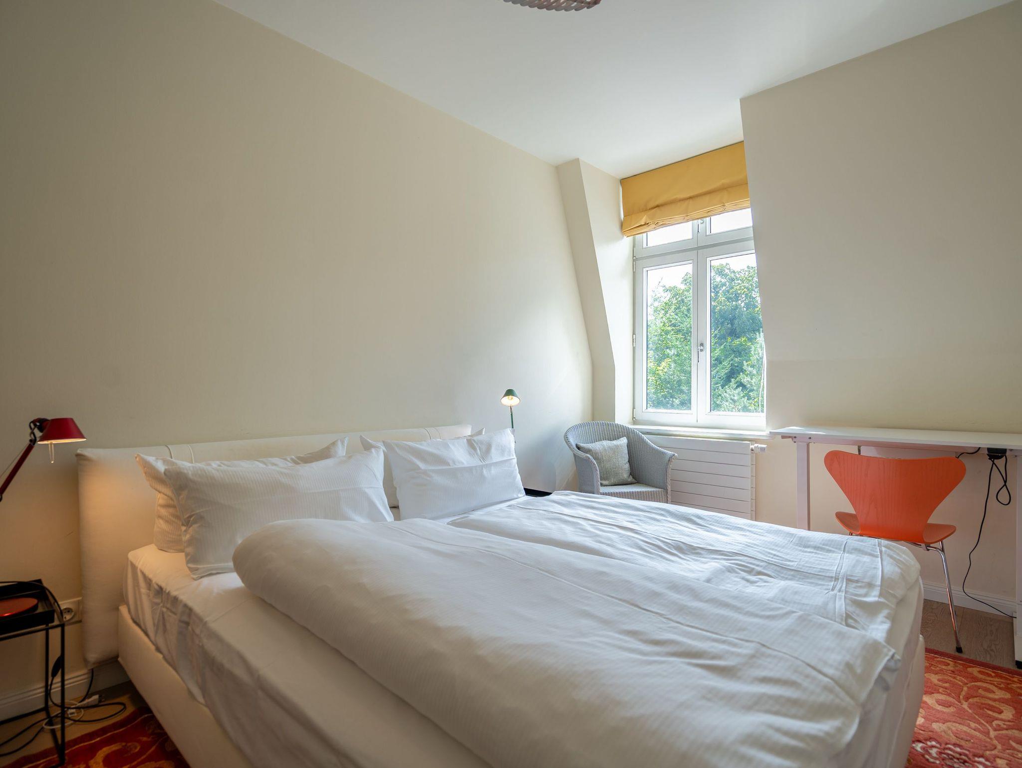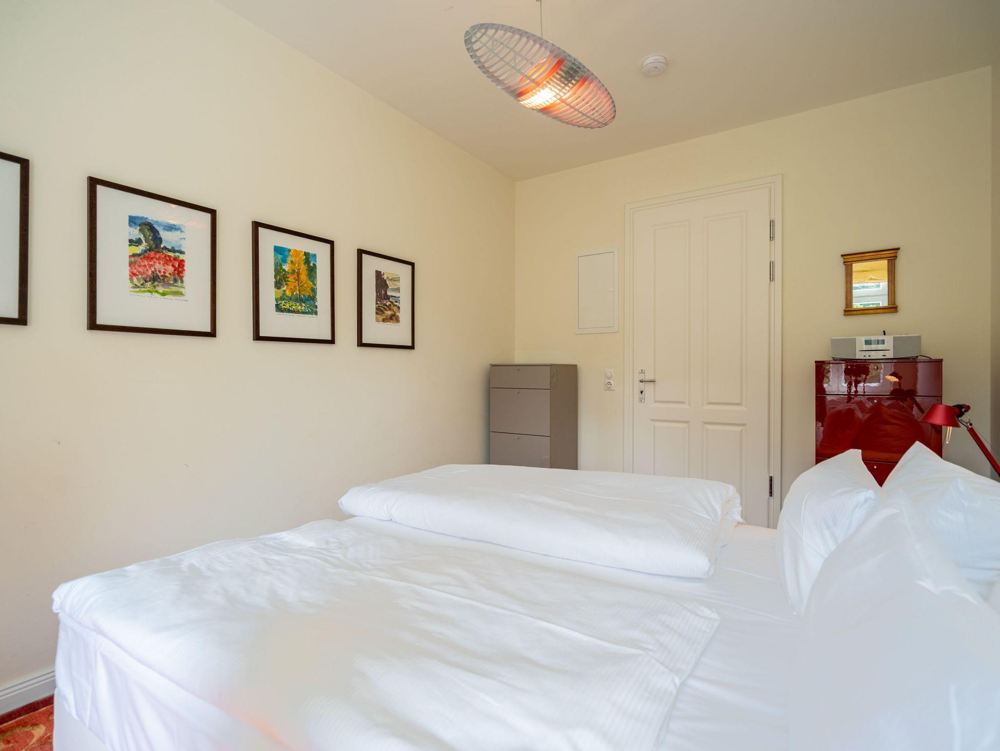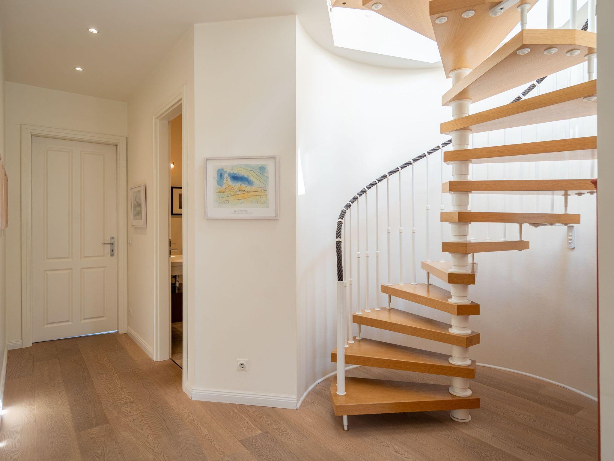 Im Dachgeschoss der Villa Hintze erwarten Sie großzügige 125 qm Luxus! Die neu gestaltete Ferienwohnung 13 (für maximal 4 Personen) offeriert Ihnen ein Wohnambiente der besonderen Art und jede Menge Ausblick auf die Ostsee! Helle, großzügige Räume, moderne Kunst und Möbel von bekannten Designern erfüllen auch anspruchsvolle Urlaubswünsche. Der Wohnbereich mit Sitzgruppe vor dem Kamin und Flat-TV wird ergänzt durch den exklusiven Küchenbereich mit schönem Essplatz. Von hier hat man Zugang zum sonnigen Südbalkon der mit Gartenmöbeln und Sonnenliege von Garpa ausgestattet ist. An den Masterbedroom mit Doppelbett und großem Einbauschrank ist ein wunderschönes Bad mit Badewanne, großer Echtglasdusche und Doppelwaschtisch angegliedert. Und das Beste - schon morgens beim Aufwachen blicken Sie von Ihrem Bett aus über die Dächer der ersten Reihe auf das Meer! Ein zweites, kleineres Schlafzimmer bietet ebenfalls ein Doppelbett (1,60m) und auch ein zweites Bad mit Dusche steht zur Verfügung. Ein ganz besonderes Highlight ist die riesige 100 qm Dachterrasse (über die wohnungseigene Wendeltreppe zu erreichen), die einen traumhaften Blick auf das Meer und Heringsdorf bietet. Hier schaffen die Sitzgruppe, der Strandkorb oder eine bequeme Liegewiese genug Auswahlmöglichkeiten zum Relaxen. In einem separaten Abstellraum auf dem Hausflur können Waschmaschine und Trockener genutzt werden. Für Ihren Komfort sind die Betten bei der Anreise bezogen und Handtücher liegen bereit. Ein Pkw-Stellplatz steht auf dem abgeschlossenen Grundstück zur Verfügung. Das WLAN in der Wohnung ist kostenlos nutzbar.