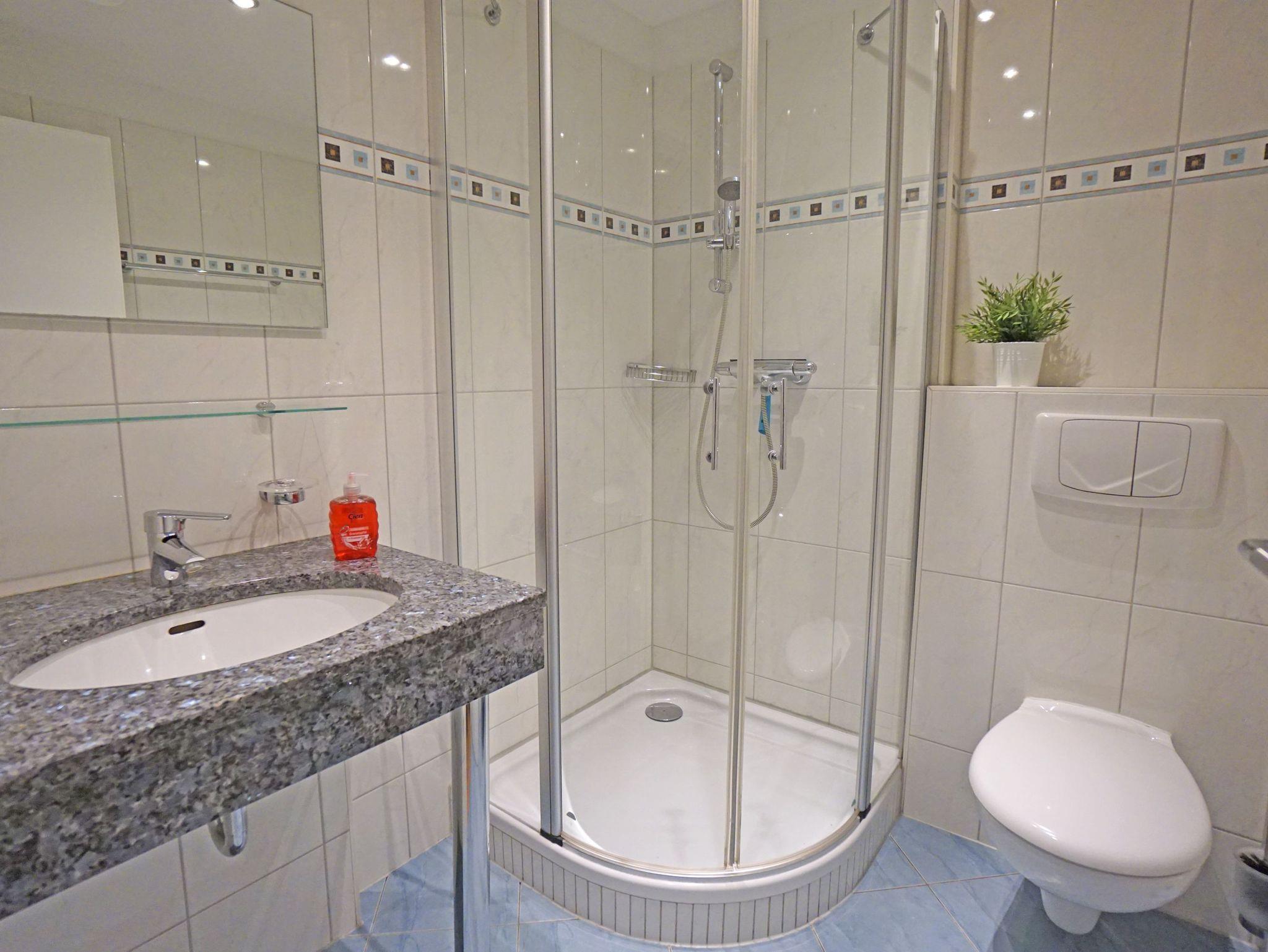 Die hochwertig eingerichtete 3-Zimmer Ferienwohnung (65m²) befindet sich im ersten Obergeschoss des Hauses Villa Marlen. Das geräumige Wohnzimmer mit offener, vollausgestatteter Küchenzeile, großem Esstisch und gemütlicher Couch lässt keine Wünsche offen. Vom Wohnzimmer aus erreicht man den großen Balkon. Zwei Schlafzimmer mit jeweils einem großen Doppelbett (180x200) und einem großen Kleiderschrank bieten genug Platz für bis zu 4 Personen. Eines der beiden Schlafzimmer hat einen eigenen Balkon. Unter anderem verfügt diese Ferienwohnung über ein Duschbad und einem weiteren Badezimmer mit Badewanne.