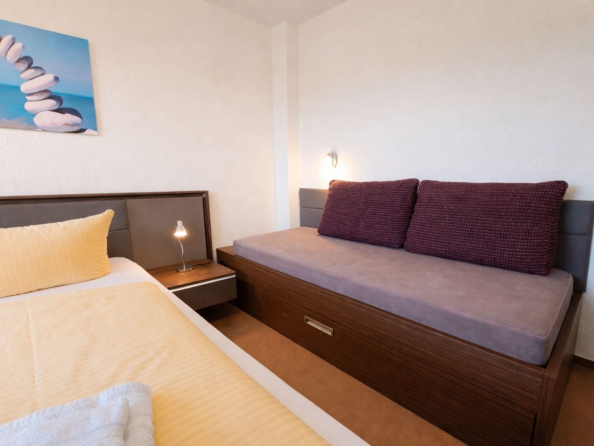 Das liebevoll eingerichtete Appartement befindet sich im vierten Stock eines Mehrfamilienhauses. Ein Fahrstuhl ist im Haus vorhanden. Im Schlafzimmer befindet sich ein großes Doppelbett, eine weitere Person kann auf dem Einzelbett übernachten (1,80x80cm). Im Badezimmer finden Sie eine Dusche und eine Waschmaschine vor. Das große Wohnzimmer und die komplett ausgestattete Küche sorgen für einen angenehmen Aufenthalt. Auf dem Balkon können Sie die Sonne genießen. Ein PKW-Stellplatz befindet sich am Haus, WLAN ist vorhanden. Mitgebrachte Räder können Sie im abschließbaren Keller unterstellen.