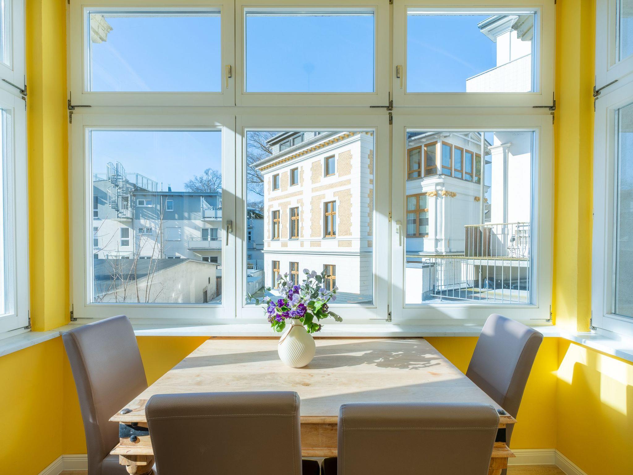 Im Obergeschoss der Villa Helene heißen wir Sie auf 50 Quadratmetern aufs herzlichste in der 2-Raum-Ferienwohnung Nr. 3 willkommen.