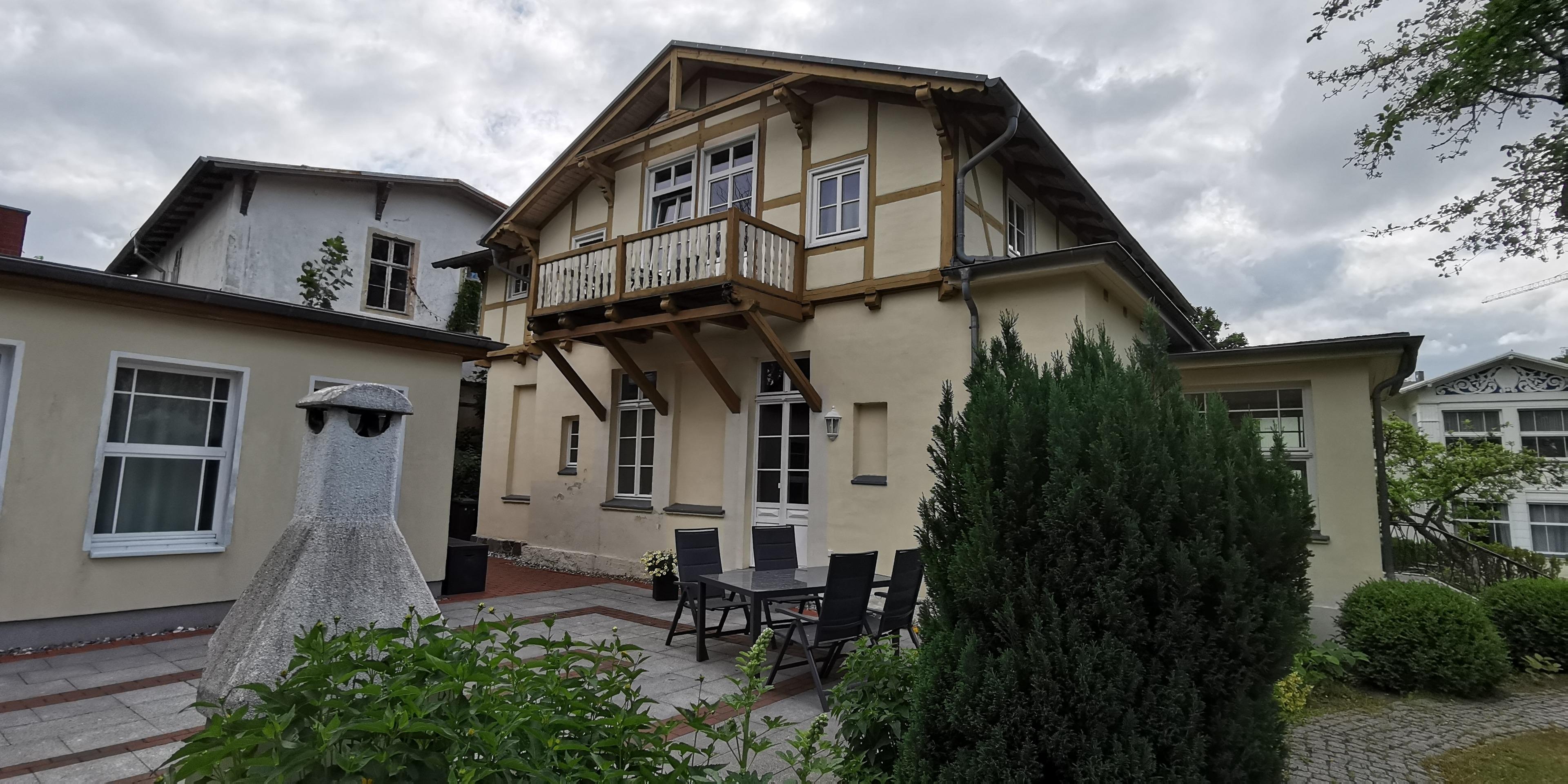 Sie wohnen im Obergeschoß in einer liebevoll sanierten Villa im Bäderarchitekturstil, in ruhiger und zentraler Lage. Zum Strand sind es nur ca. 100 Meter. Das Appartement ist 39 qm groß und mit skandinavischen Landhausmöbeln ausgestattet. Der moderne Bio-Kamin lädt zum Ausklang eines romantischen Abends ein. Es bietet insgesamt zwei Schlafplätze (140x200) im Wohnbereich. Die Böden sind mit rustikalen Landhausdielen und Fliesen ausgelegt. Im separaten, nur für Sie zugänglichen Bad, welches sich neben der Wohnung befindet, sind WC, eine Dusche und ein beheizter Handtuchhalter vorhanden. Ein schöner Balkon, in Südwestausrichtung, lädt zum Verweilen ein. Am großen Aussengrill kann Leckeres zubereitet werden. Einen separaten Stellplatz finden Sie hinter der Villa. Fahrräder können untergestellt werden.