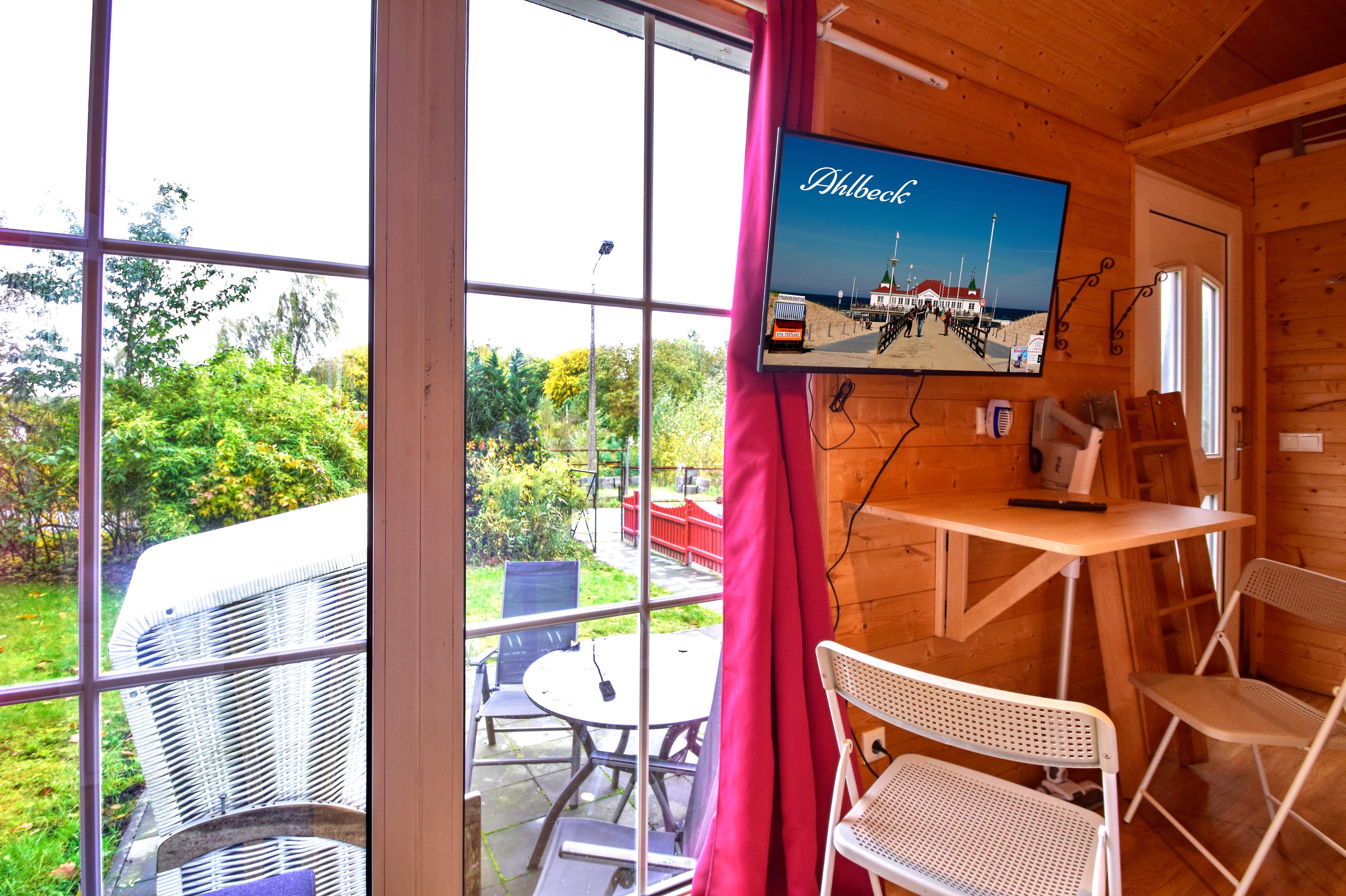 Wollten Sie schon immer mal Urlaub in einem modernen Tiny House im Grünen machen? Dann sind Sie bei uns genau richtig! Auf kleinstem Raum finden Sie alles, was Sie zum Entspannen und Erholen brauchen. Das nachhaltig gebaute Tiny House bietet Platz für vier Personen (zwei Schlafplätze 2x90x200 und zwei Schlafplätze im Hochbett 130x220) mit integrierter Küche und einem Bad mit Dusche. Wollen Sie den Tag mit einer Yoga Session starten? Kein Problem - das großzügige und grüne Grundstück bietet Ihnen genügend Platz. Der Usedomer Wald ist direkt vor Ihrer Haustür und lädt zu einem ausgiebigen Spaziergang oder einer Joggingrunde ein. Kommen Sie dann erschöpft zurück, wartet eine Regendusche im Tiny House auf Sie. Machen Sie es sich bequem und genießen Sie den Ausblick durch weiten und hellen Terrassenfenster, während Sie gemütlich auf dem Bettsofa liegen und Ihr Lieblingsbuch lesen. Wie wäre es zum Ausklang eines romantischen Abends mit etwas Leckerem vom rustikalen Außengrill auf der Terrasse oder einem Rotwein? Legen Sie die Beine hoch und entspannen Sie sich. Bei uns bleiben keine Wünsche offen. Kommen Sie mit dem Auto oder vielleicht ganz sportlich mit dem Fahrrad? Für beides haben wir selbstverständlich einen Platz auf dem Grundstück. Das ist noch längst nicht alles. Sie finden bei uns kostenfreies WLAN, Smart-TV mit Streaming Funktion, kleiner Kühlschrank mit Gefrierfach, Induktions-Kochfeld, Mikrowelle mit Heißluft und Grill, Wasserkocher, Kaffeemaschine, Toaster, Föhn und vieles mehr.