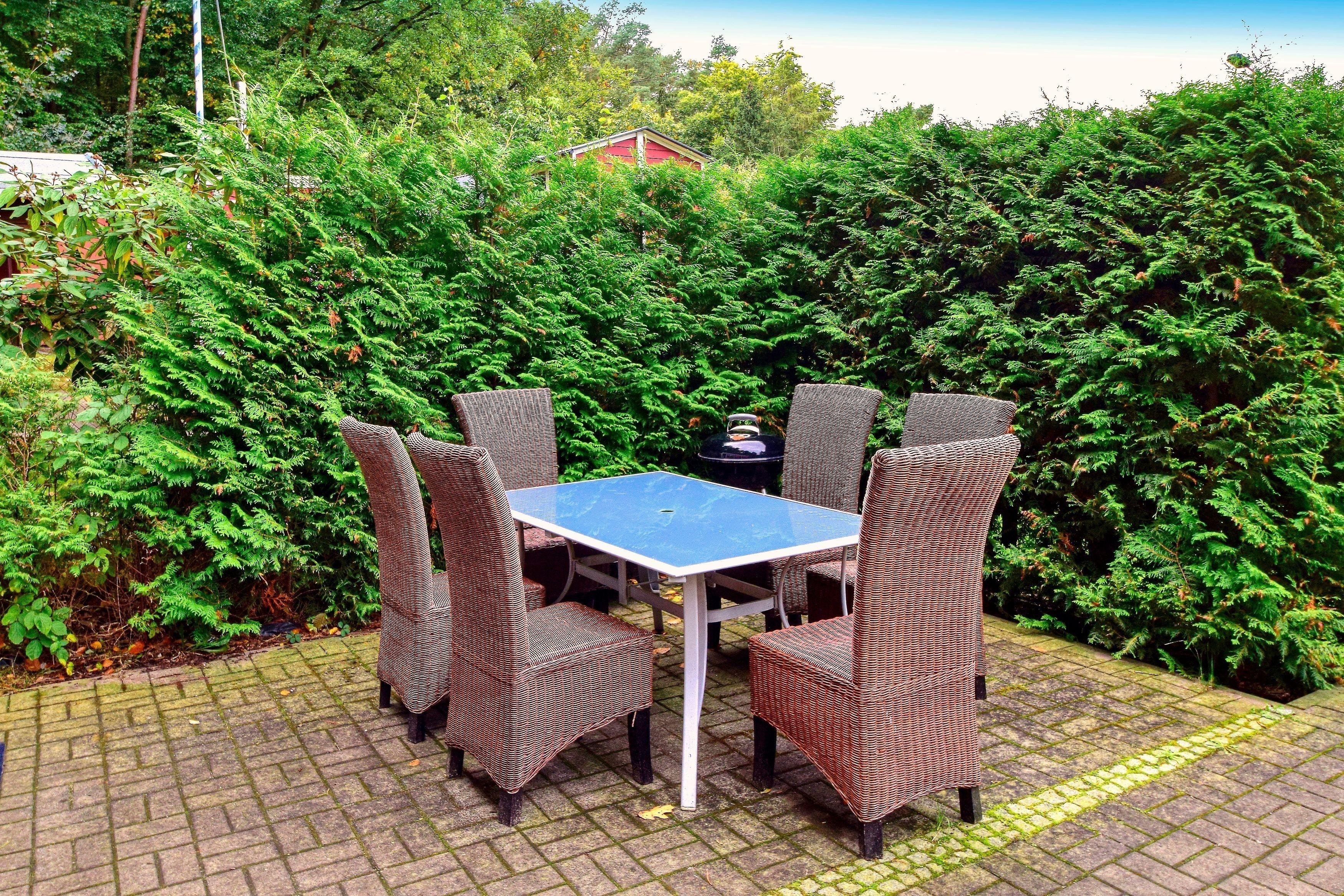 Das schön ausgestattete Ferienhaus bietet 49 qm Platz zum Entspannen. Oder wie wäre es zum Ausklang eines romantischen Abends mit etwas Leckerem vom rustikalen Außengrill auf der Terrasse oder einem Rotwein? Zurück im Haus können Sie sich auf dem ausziehbaren Schlafsofa mit einer Breite von 130 cm entspannen. In den beiden getrennten Schlafzimmern finden Sie jeweils ein Doppelbett mit 140 cm Breite, sodass Platz für maximal 6 Personen vorhanden ist. Für romantische und kältere Stunden lädt ein Kaminofen ein. Das Badezimmer verfügt über ein WC und eine Dusche. In unserer Ausstattung finden Sie alles, was Sie benötigen: LED-TV, kostenfreies WLAN, eine Küche mit Kühlschrank, zwei Induktionsplatten, Mikrowelle, Grillofen, Kaffeemaschine, Toaster, Wasserkocher und Küchenutensilien.