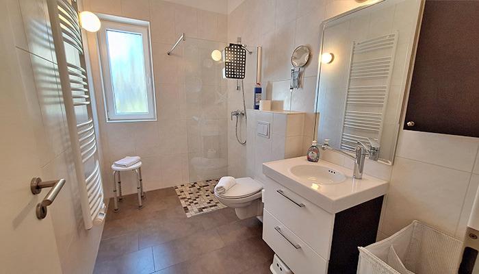 Gäste mit eingeschränkter Mobilität sind ebenfalls willkommen. Ein ebener Strandzugang ist in 350m/ 5 Minuten zu Fuß zu erreichen. Die Unterkunft ist stufenlos zu betreten und daher Rollstuhl freundlich zu befahren. Die Einheit ist nicht behindertengerecht ausgestattet und aufgeteilt, z.B. führt der Weg auf die Terrasse über eine Schwelle und es gibt keine Haltegriffe im Bad. Wir empfehlen den Aufenthalt nur zusammen mit einer Begleitperson.
