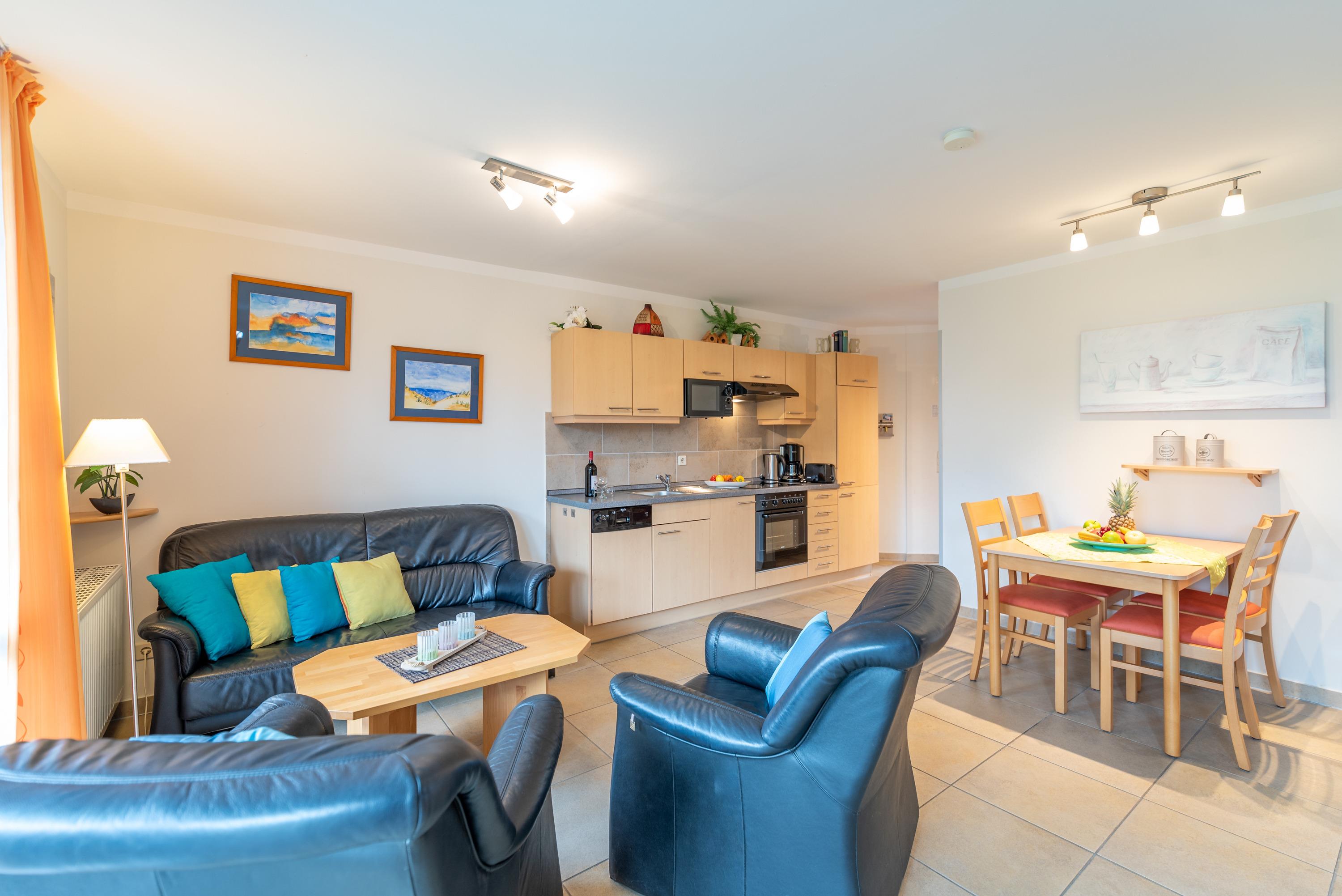 In der großzügigen Erdgeschosswohnung des Hauses „Ab ins Inselglück“ erwartet Sie ein lichtdurchflutetes Feriendomizil, das zum Entspannen und Wohlfühlen einlädt.