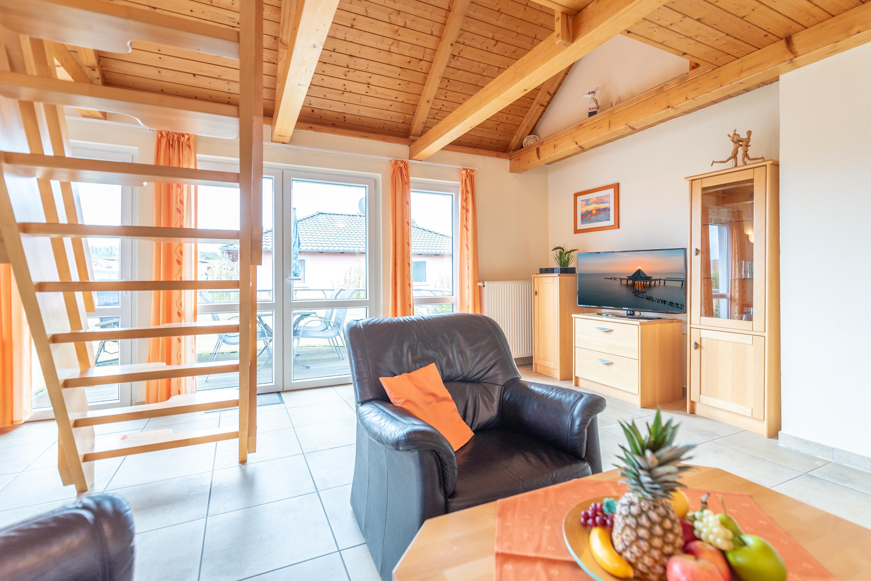 Diese großzügige Ferienwohnung im Obergeschoss des Hauses „Ab ins Inselglück“ bietet auf rund 66 m² ausreichend Platz für bis zu fünf Gäste und ist der ideale Ausgangspunkt für entspannte Urlaubstage auf der Sonneninsel Usedom.
