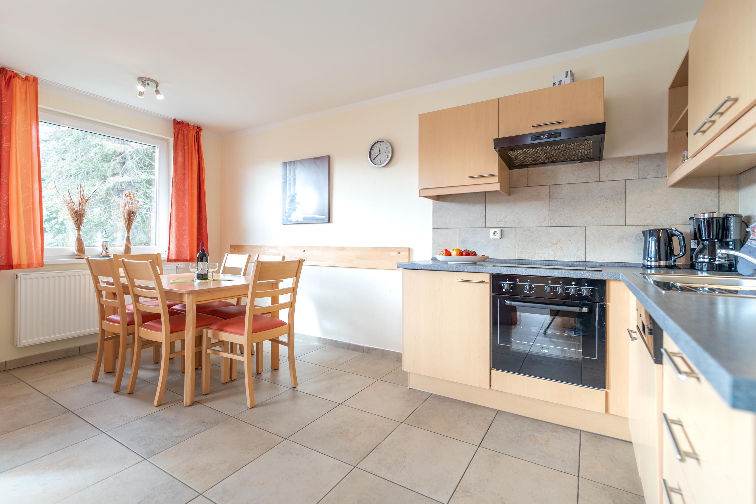 Die Wohnung ist vollständig gefliest und wird über eine Zentralheizung angenehm temperiert. Kostenloses WLAN sowie ein Parkplatz direkt am Haus sind im Mietpreis enthalten. Auf Wunsch können wir Ihnen gern ein Kinderbett und einen Hochstuhl zur Verfügung stellen.