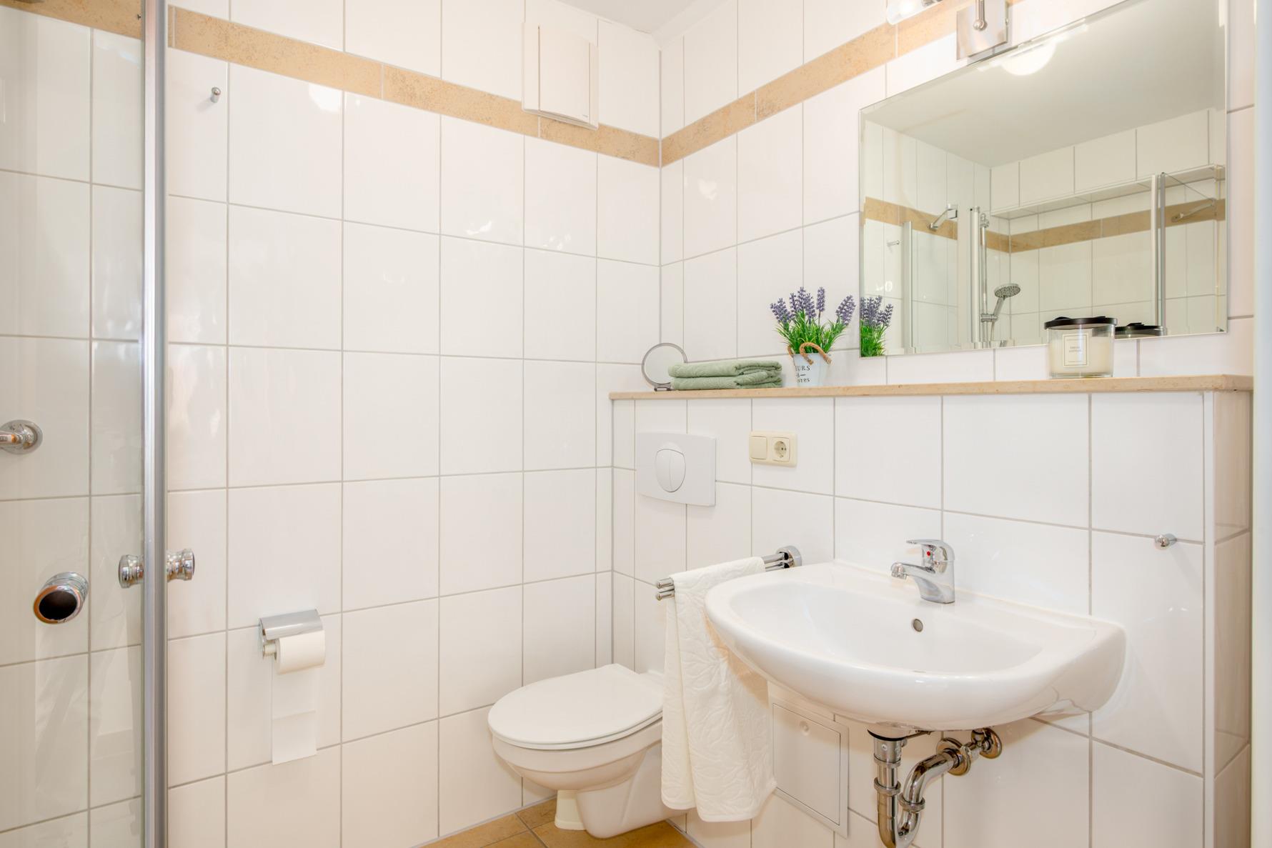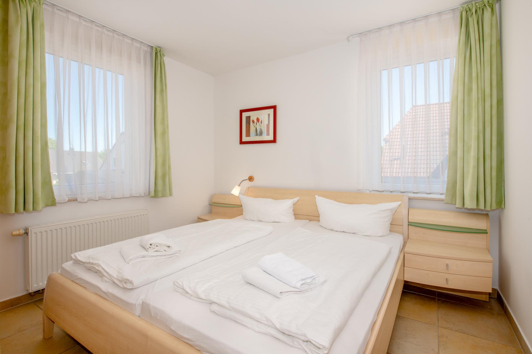 Die Wohnungen im Obergeschoß zeichnen sich durch einen Balkon aus und haben eine Größe von 65 m². Jede der Wohnungen verfügt über zwei separate Schlafzimmer, wovon eines mit einem Doppelbett und das andere mit zwei Einzelbetten eingerichtet ist. Des Weiteren sind die Wohnungen mit einer Küche, einem Badezimmer und einem Wohnbereich ausgestattet.