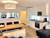 Das Wohnzimmer beinhaltet eine Ledercouchlandschaft, Flatscreen-TV und eine HiFi-Anlage. Das Bad verfügt über Dusche, WC, Handtuchheizkörper, Waschtisch, Föhn und Kosmetikspiegel. Zwei separate Schlafzimmer mit Doppelbett und Flatscreen-TV bzw. zwei Einzelbetten stehen euch zur Verfügung. Die gesamte Wohnung wurde mit einem hellen Design-Fußboden versehen. Wecker, Ganzkörperspiegel, Handstaubsauger, Minisafe, Insektenschutz in beiden Schlafzimmern und an der Terrassentür sowie Gesellschaftsspiele und Bücher vervollständigen das hochwertige Interieur eures Urlaubsdomizils.