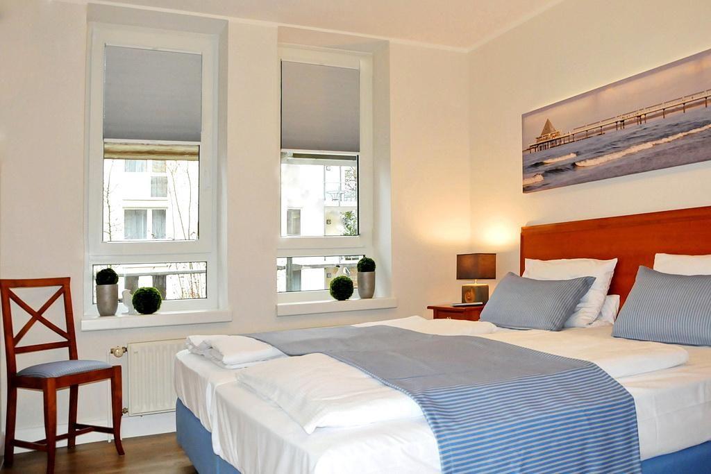 Die geschmackvolle 56 qm große 3-Zimmer Ferienwohnung mit schön gelegener Terrasse im Grünen ist für bis zu 4 Personen geeignet. Besonders hervorzuheben ist der direkte Zugang zum Ostseestrand über die Promenade.