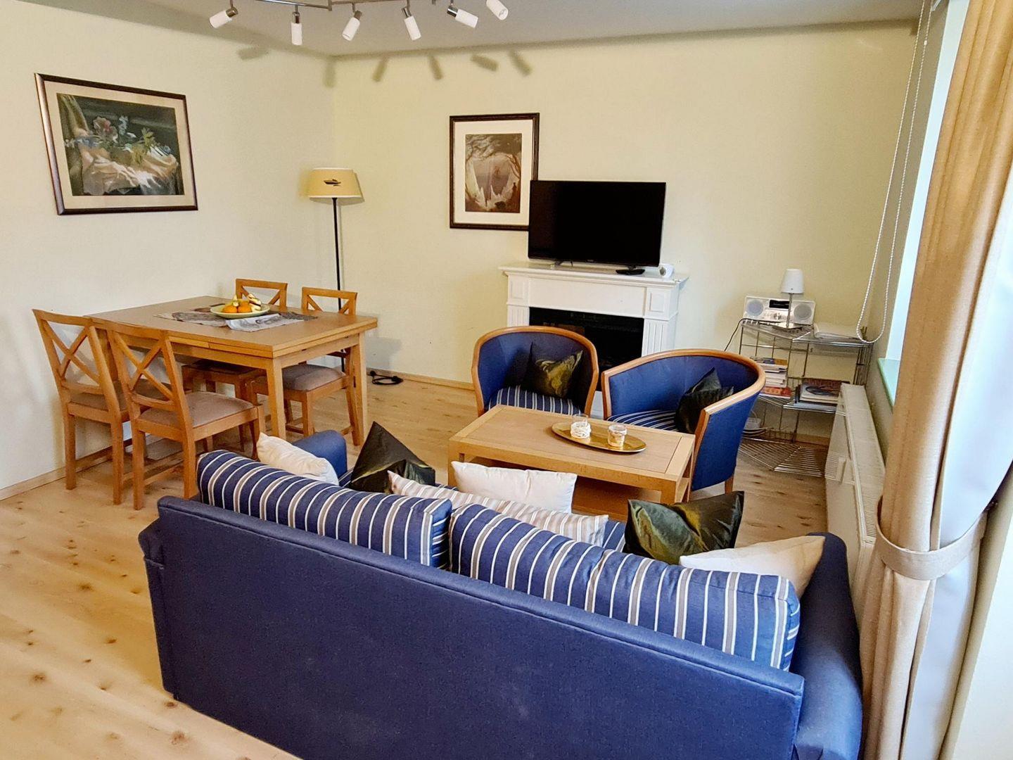Das Nichtraucherapartment verfügt über kostenfreies WLAN und eine voll ausgestattete offene Küche mit Geschirrspüler, Kühlschrank mit Gefrierfach, Kaffeemaschine, Toaster, Wasserkocher, Ceranherd mit Backofen und Mikrowelle. Im Schlafzimmer befindet sich ein Doppelbett und ein TV-Gerät; von hier aus gelangt ihr in das zweite Schlafzimmer in dem sich ein Einzelbett und ein Schrankbett befinden. Im Wohnbereich stehen euch eine Doppelschlafcouch, ein Flatscreen-TV, eine HiFi-Anlage, Spiele und Bücher sowie ein Elektrokamin zur Verfügung. Das Badezimmer mit Dusche und Tageslicht beinhaltet WC, Doppelwaschbecken, Handtuchwärmer und Badewanne. Die Terrasse ist mit Gartenmöbeln und zwei Liegestühlen ausgestattet und verfügt über einen natürlichen Sichtschutz durch eine Hecke.
