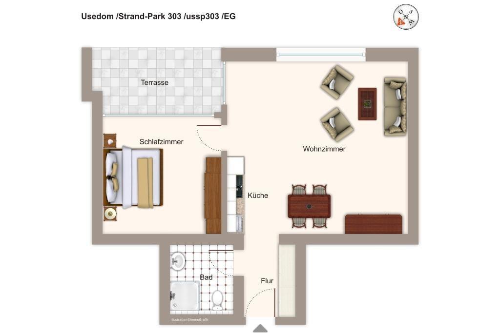 Das südöstlich gelegene Apartment befindet sich im Erdgeschoss von Haus 3 in der familienfreundlichen Ferienanlage „Strand-Park“ - inmitten des liebevoll angelegten Gartens und nur wenige Meter zum feinsandigen und kilometerlangen Strand von Heringsdorf gelegen.
