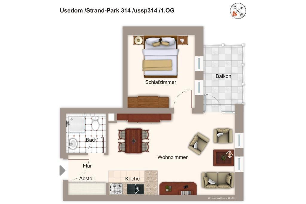 Die Ferienanlage „Strand-Park“ liegt direkt an der Strandpromenade von Heringsdorf. Das 45 qm große 2-Zimmer-Apartment mit Balkon bietet euch einen schönen Ausblick in die Parkanlage und ist für bis zu 4 Personen geeignet.