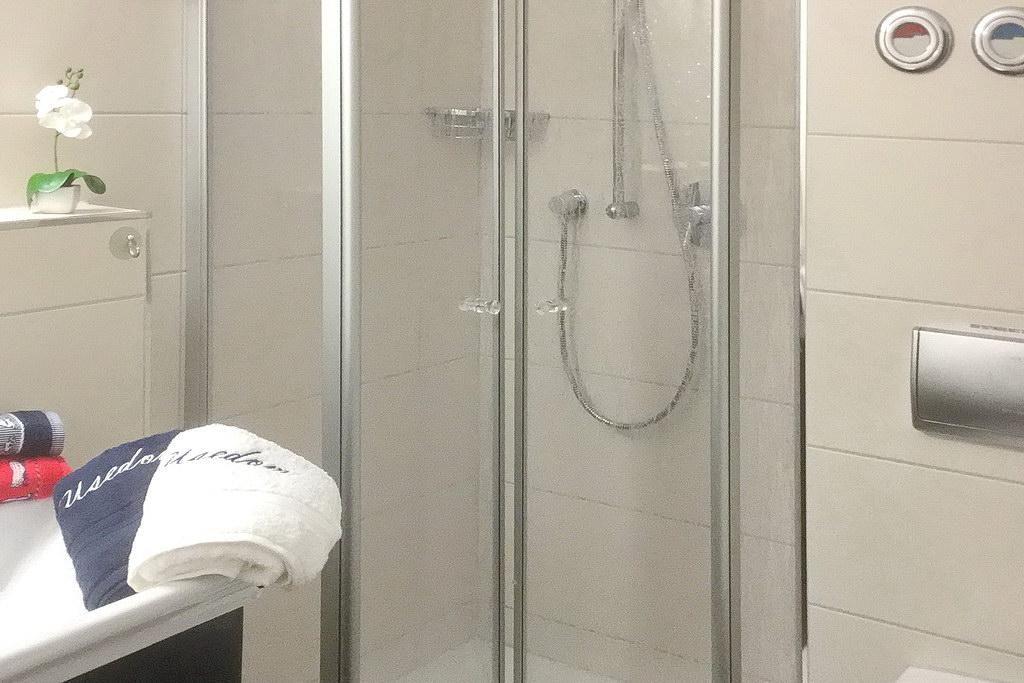 Die geschmackvolle Nichtraucher-Ferienwohnung mit Duschbad verfügt über kostenfreies WLAN und besteht aus einem Schlafzimmer mit einem Doppelbett sowie aus einem Wohn-Essbereich mit Flatscreen-TV, DVD-Player mit einer Auswahl an DVDs sowie einer HiFi-Anlage. Vom Wohnbereich aus gelangt ihr auf den zur Ostsee und zur Promenade gelegenen Balkon mit Meerblick.