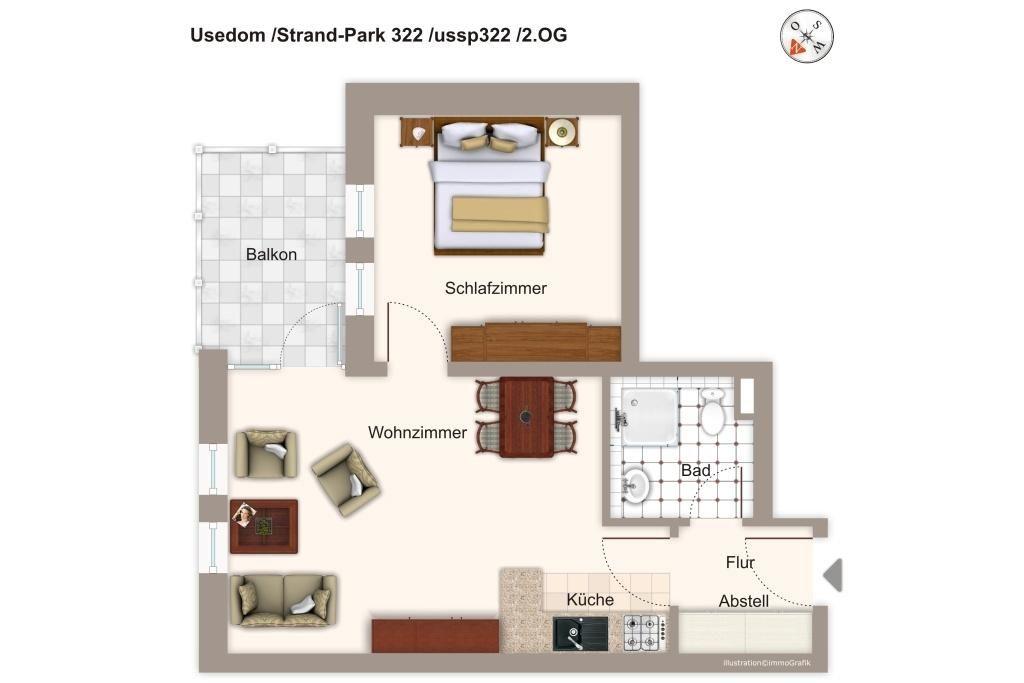 Das nordöstlich gelegene Apartment befindet sich im zweiten Obergeschoss von Haus 3 des 'Strand-Park' - inmitten der liebevoll gepflegten Parkanlage, unmittelbar an der Promenade und am kilometerlangen Ostseestrand gelegen.