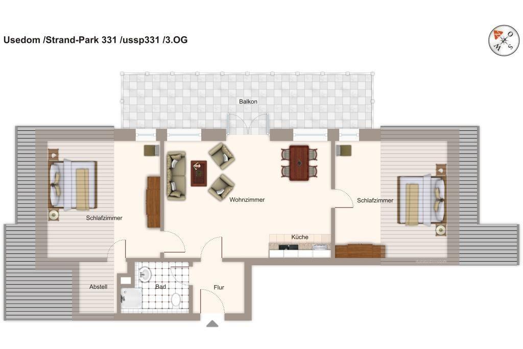 Die Ferienanlage „Strand-Park“ liegt direkt an der Strandpromenade von Heringsdorf. Das 69 qm große 3-Zimmer-Apartment mit großem Balkon zur Ostsee gelegen, bietet Meerblick und ist für bis zu 6 Personen geeignet.
