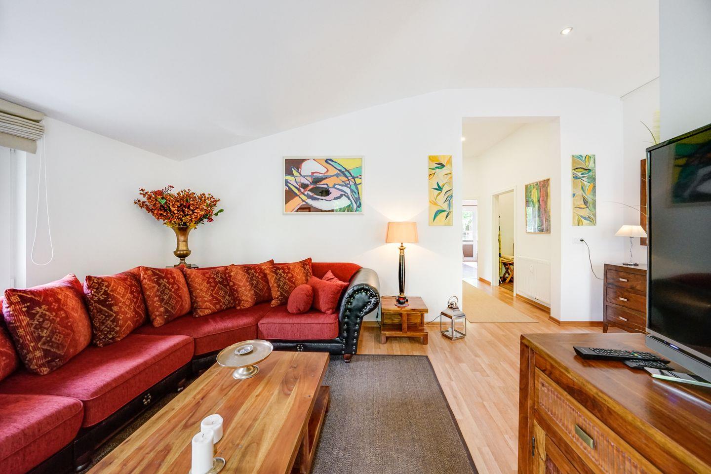 Zusätzlich zu der Wohnung, den Balkonen und der Sauna, haben Sie auch Zugang zum parkähnlich angelegtem Garten und einer überdachten Sitzecke mit Feuerstelle.