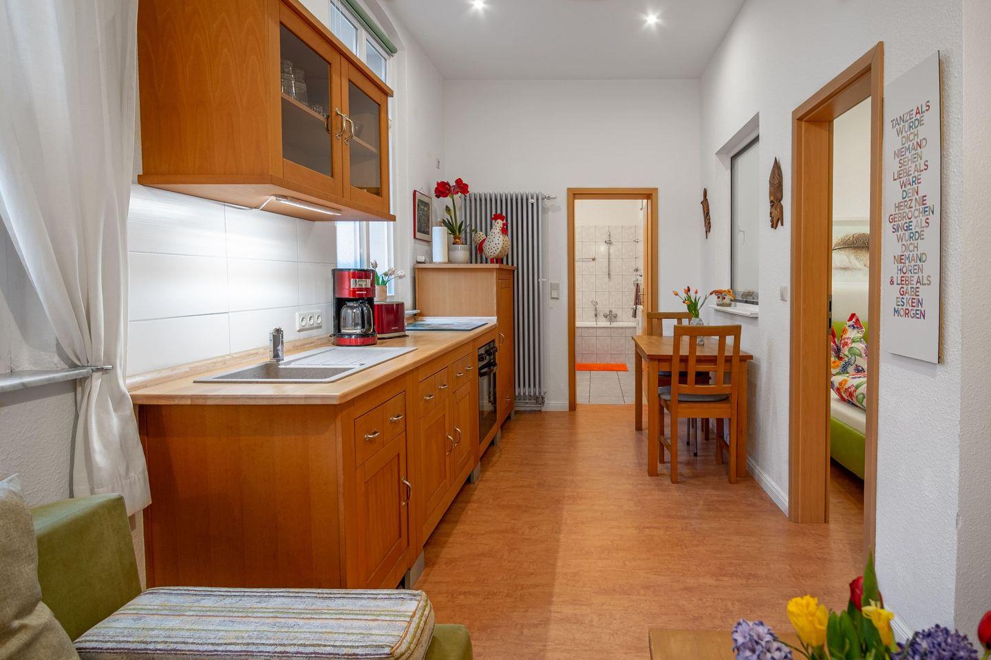 Ferienwohnung "Strand" in Heringsdorf: Ideal für zwei Erwachsene und ein Kind. Kurze Wege zu Fußgängerzone und Strand, nahe Kur- und Erholungswald. Ausstattung: Queen-size Bett, Schlafsofa, TV, Bücher, Brettspiele, voll ausgestattete Küche. Außenbereich zum Entspannen. Kostenfreier Parkplatz inklusive. Haustiere willkommen (max. ein Tier, eigenes Bett/Decke mitbringen). Ideal für entspannten Usedom-Urlaub.