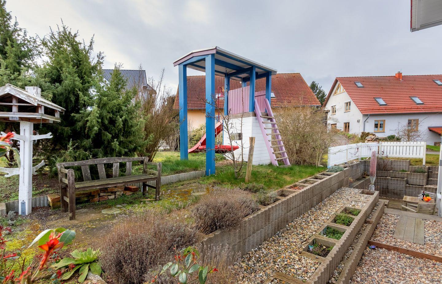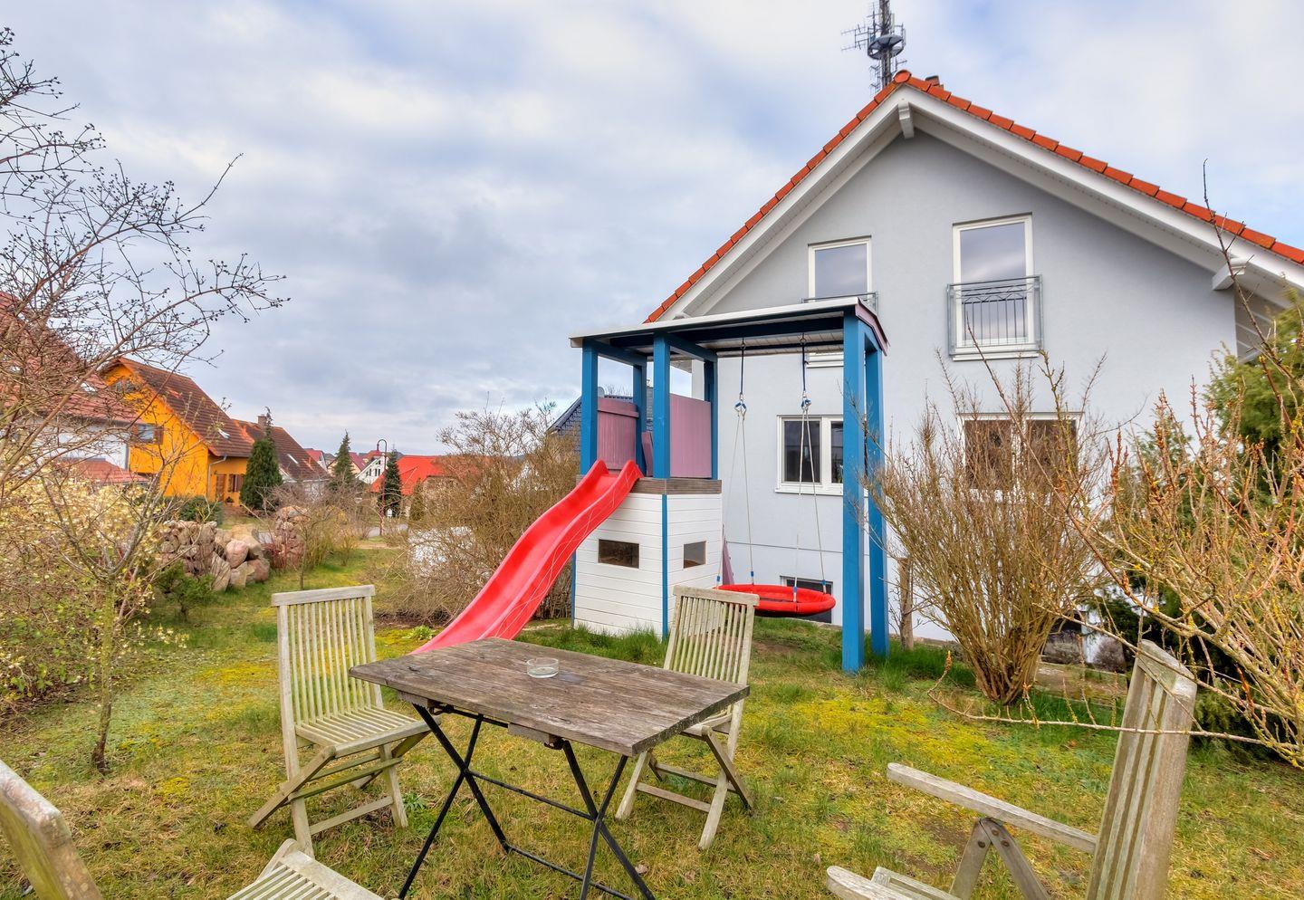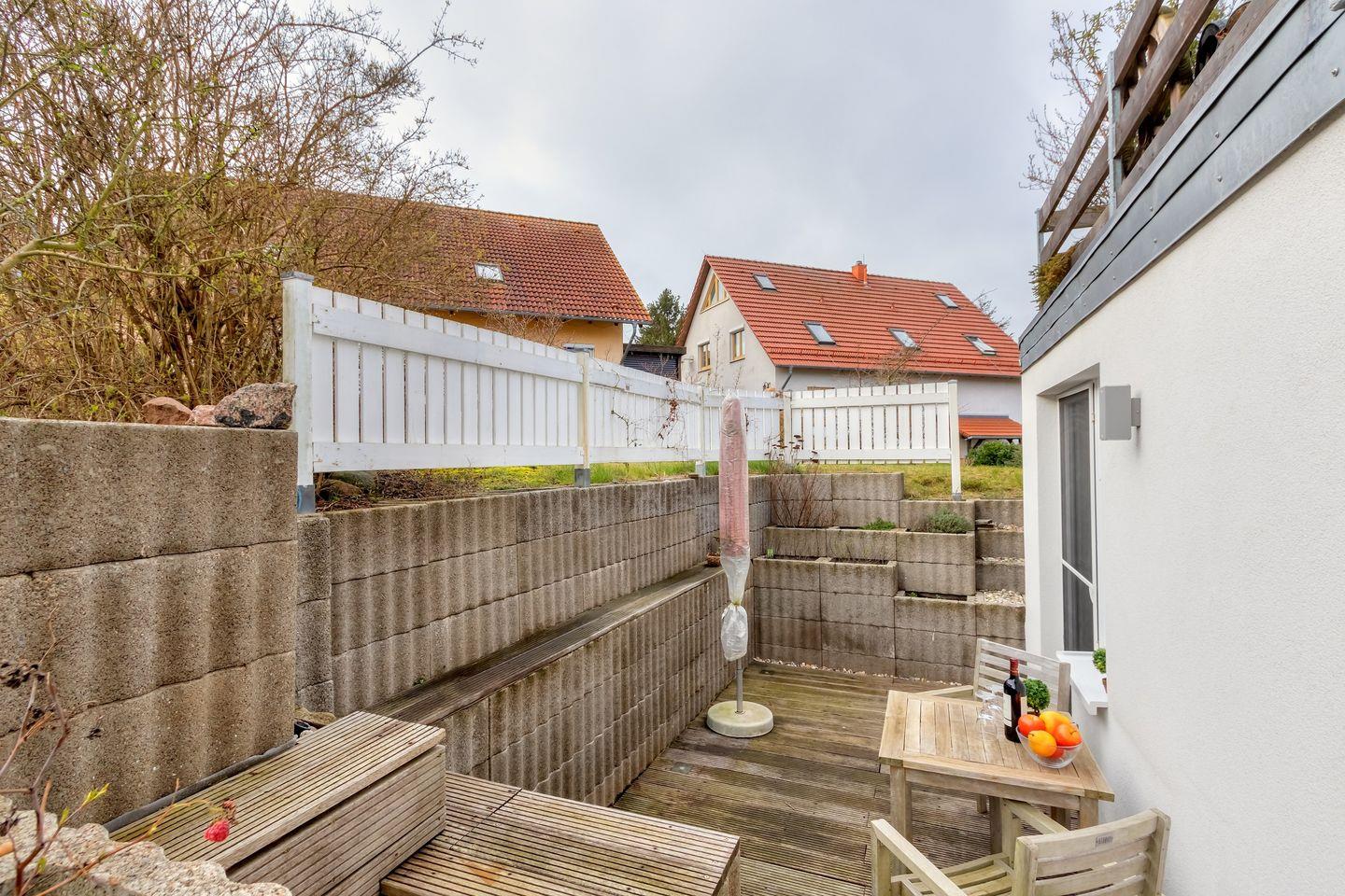 Genießen Sie entspannte Stunden auf der Terrasse mit Tisch, Stühlen, Sonnenschirm und Grill – perfekt für gesellige Abende im Freien. Im Garten steht eine gemütliche Sitzgelegenheit zur Verfügung, um sonnige Tage in Ruhe zu verbringen.