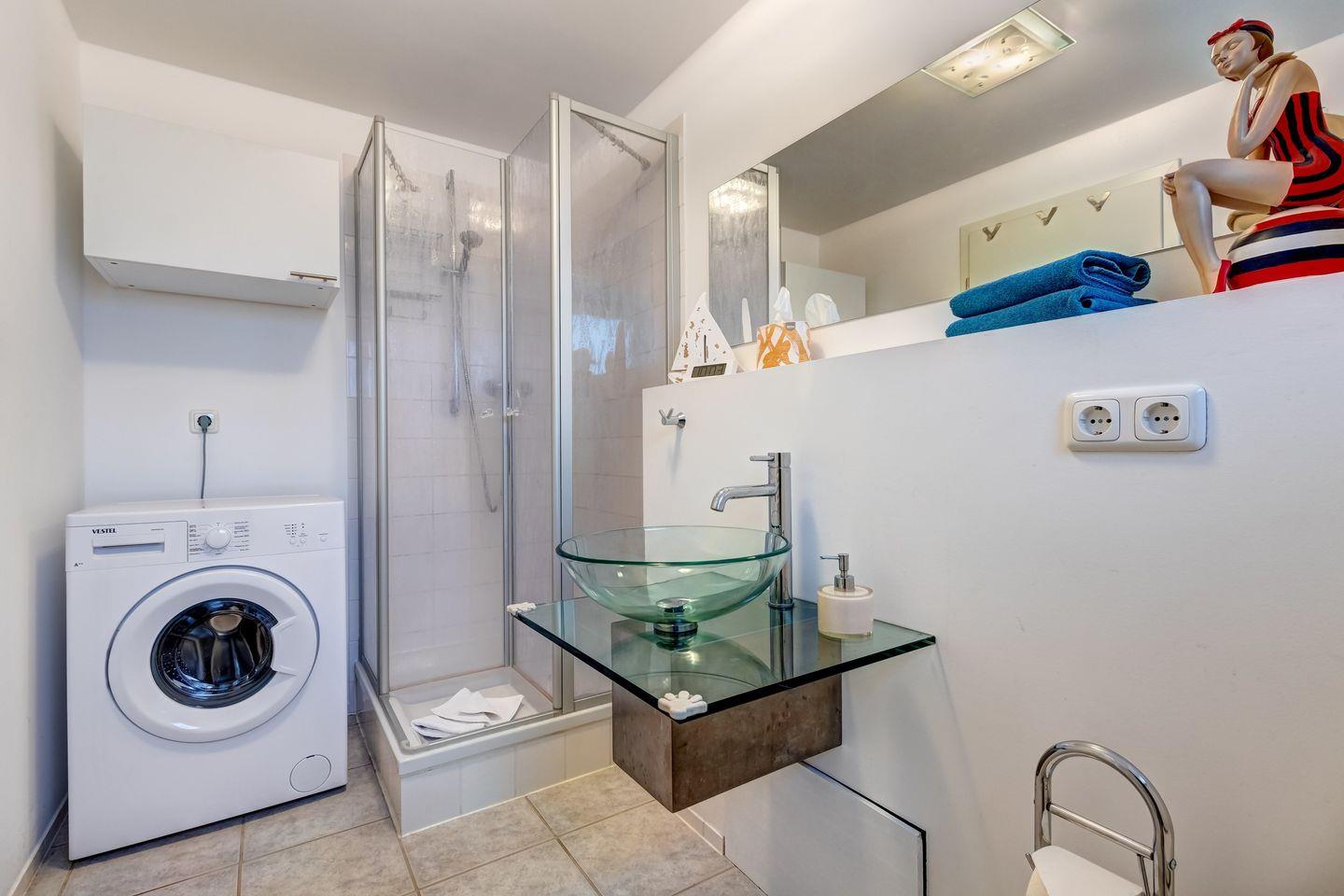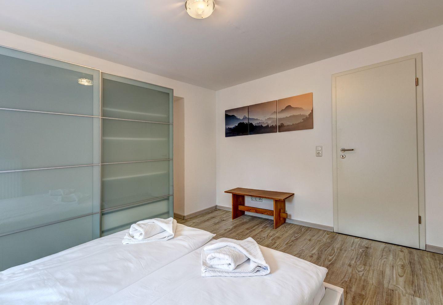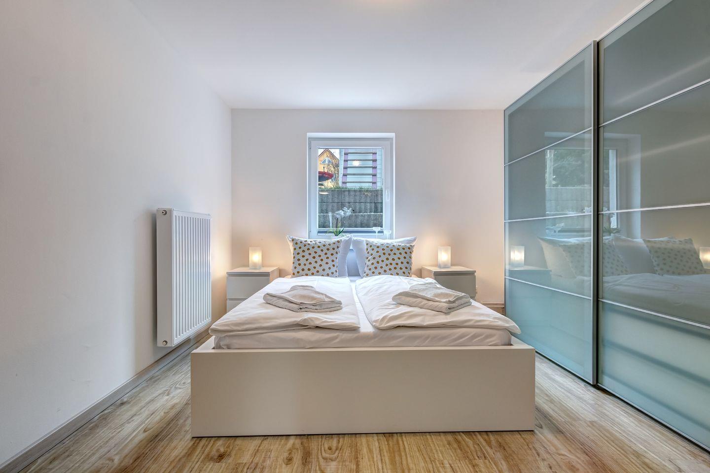 Die modern eingerichtete Wohnung umfasst ein separates Schlafzimmer sowie ein modernes Bad mit Dusche, WC und Waschmaschine. Der großzügige Wohn-Ess-Bereich ist mit zwei komfortablen Schlafcouches (je 1,40 x 2,00 m) ausgestattet, die ideal für bis zu zwei Kinder bis 16 Jahre sind.