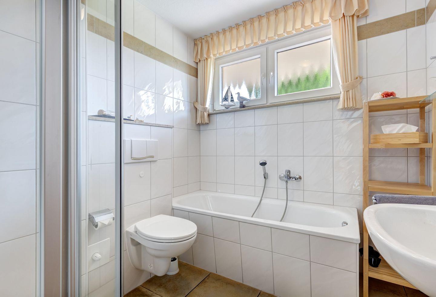 Ein modernes Badezimmer und eine Sauna laden Sie zu einer „kleinen Wellness-Auszeit“ ein.