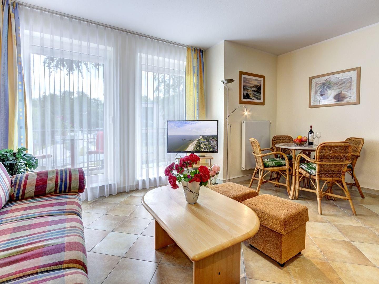Die helle und freundliche 2-Raum-Ferienwohnung "Marie 3" mit Balkon bietet Ihnen den idealen Rückzugsort für einen entspannten Urlaub.