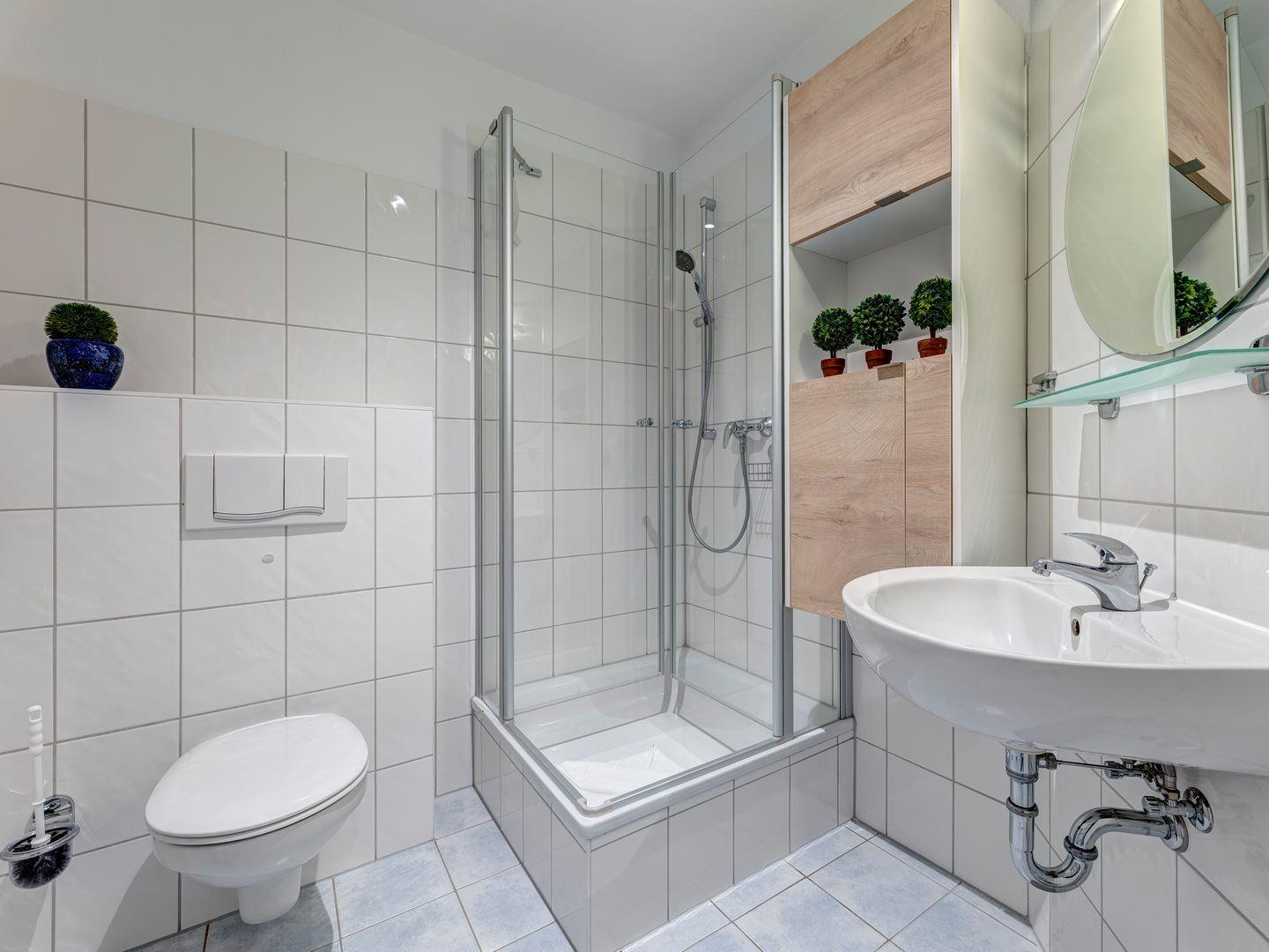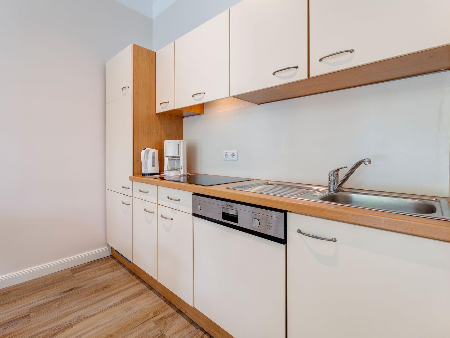 Diese elegante Wohnung bietet alles, was Sie für einen erholsamen Urlaub benötigen. Der helle Wohnbereich öffnet sich zu einer großzügigen Terrasse, Im Schlafzimmer erwartet Sie ein komfortables Boxspringbett, in dem Sie wunderbar zur Ruhe kommen können. Für Ihre Unterhaltung steht Ihnen auch ein eigener Fernseher zur Verfügung. Das moderne Bad ist mit einer Dusche ausgestattet.