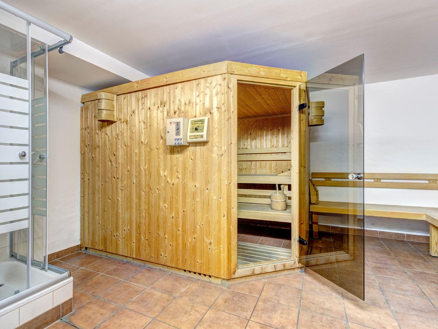 Direkt unter der Wohnung befindet sich eine Gemeinschaftssauna, die Ihnen zur Verfügung steht. Diese wird bequem über einen Münzautomaten gesteuert und bietet Ihnen die Möglichkeit, nach einem langen Tag am Strand oder beim Erkunden der Umgebung zu entspannen.