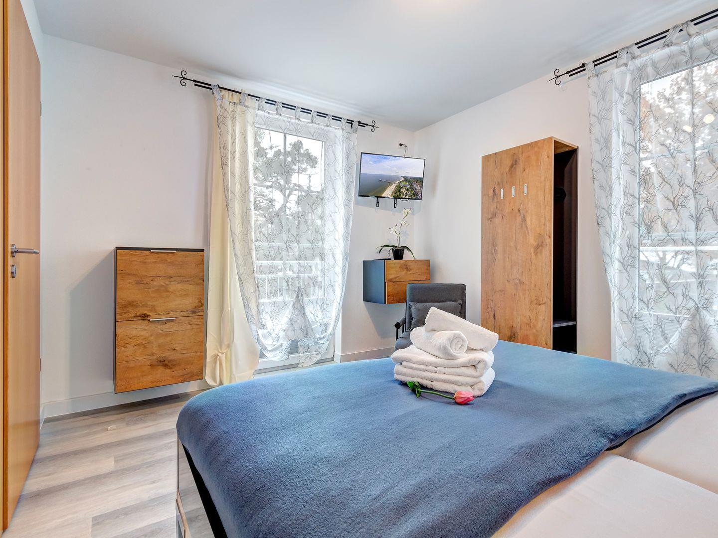 Die im 1. Obergeschoss der Ostseeresidenz gelegene Wohnung verfügt über eine hochwertige Ausstattung und bietet mit 2 separaten Schlafzimmern und einen großzügigen Wohn-/Essbereich Platz für bis zu 4 Personen. Die mit den 5-DTV-Sternen zertifizierte Wohnung ist modern und exklusiv zugleich eingerichtet. Der Fußboden beheizt und aus hochwertigem Naturstein bietet das Gefühl für mehr Komfort. Selbstverständlich stehen unseren Gästen auch ein Badezimmer mit Badewanne sowie ein Gäste-WC zur Verfügung.
