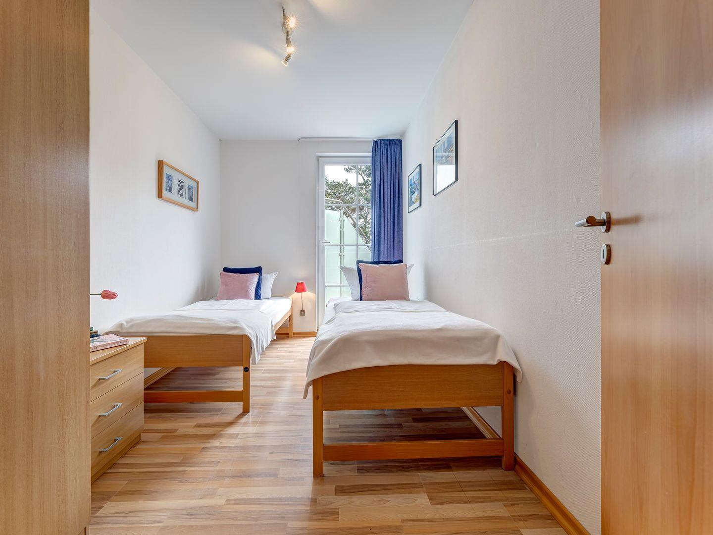 Für erholsame Nächte stehen Ihnen zwei Schlafzimmer zur Verfügung: eins mit einem gemütlichen Doppelbett und das andere mit zwei Einzelbetten. Somit bietet die Wohnung Platz für bis zu vier Personen.