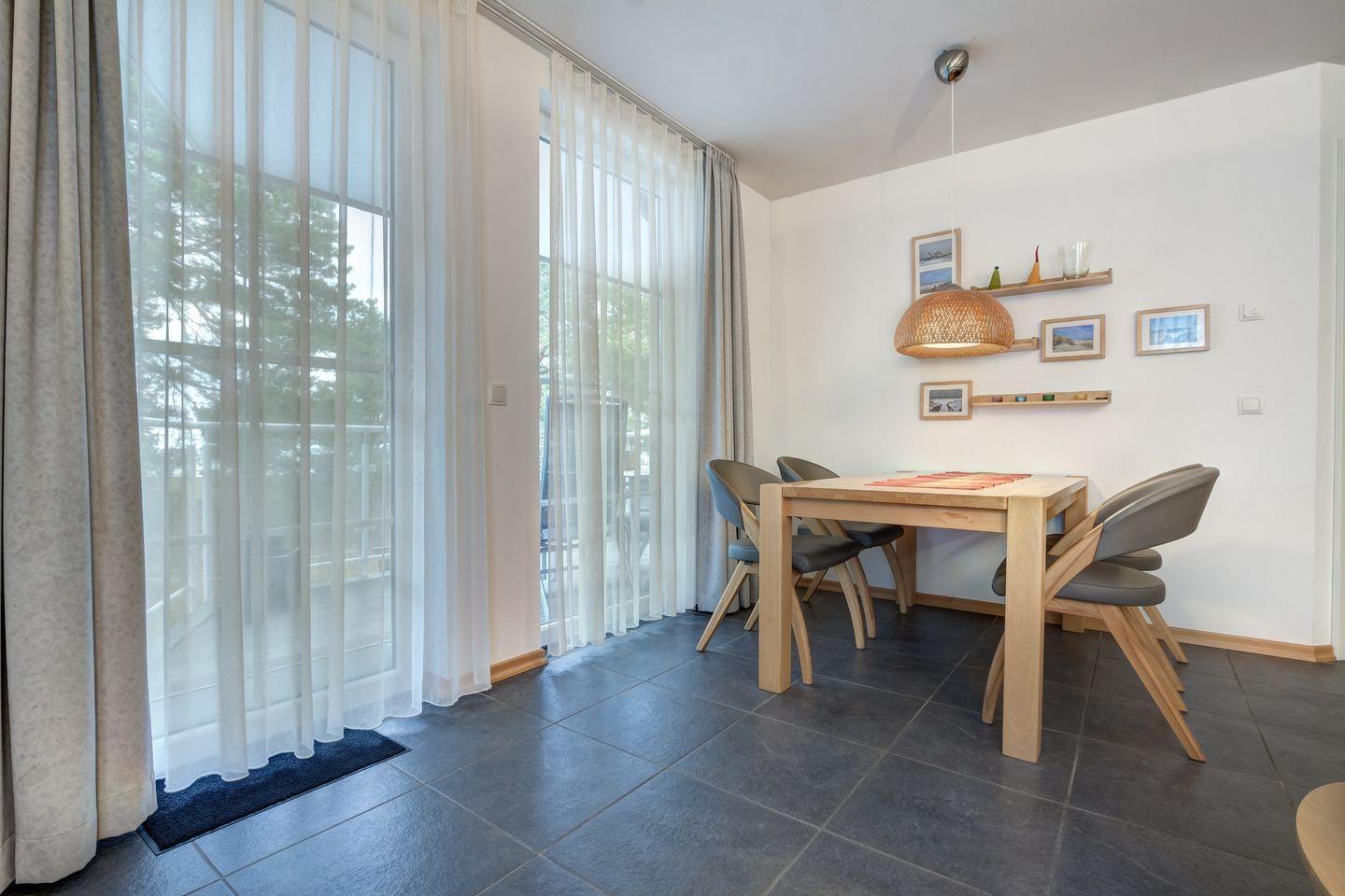 Beginnen Sie einen schönen Tag am Frühstückstisch mit dem Blick auf die Ostsee und die aufsteigende Morgensonne. Die mit 5-DTV-Sternen zertifizierte, im 2. Obergeschoss der Ostseeresidenz gelegene Wohnung GP09 verfügt über eine umfangreiche und moderne Ausstattung. Die Fußböden sind in Naturstein und hochwertigem Parkett gehaltengehalten. Aus allen Schlaf- und Wohnräumen haben Sie eine schöne Aussicht auf das Meer.