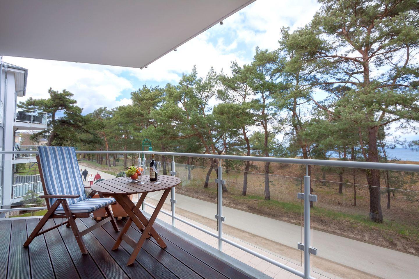 Beginnen Sie Ihren Tag mit einem unvergesslichen Panorama: Genießen Sie Ihr Frühstück mit atemberaubendem Blick auf die Ostsee, während die Morgensonne sanft über dem Horizont aufsteigt. Die mit 5 DTV-Sternen ausgezeichnete Ferienwohnung befindet sich im 2. Obergeschoss dieser exklusiven Residenz und überzeugt durch eine hochwertige, moderne Ausstattung in Wohn-, Schlaf- und Küchenbereich.