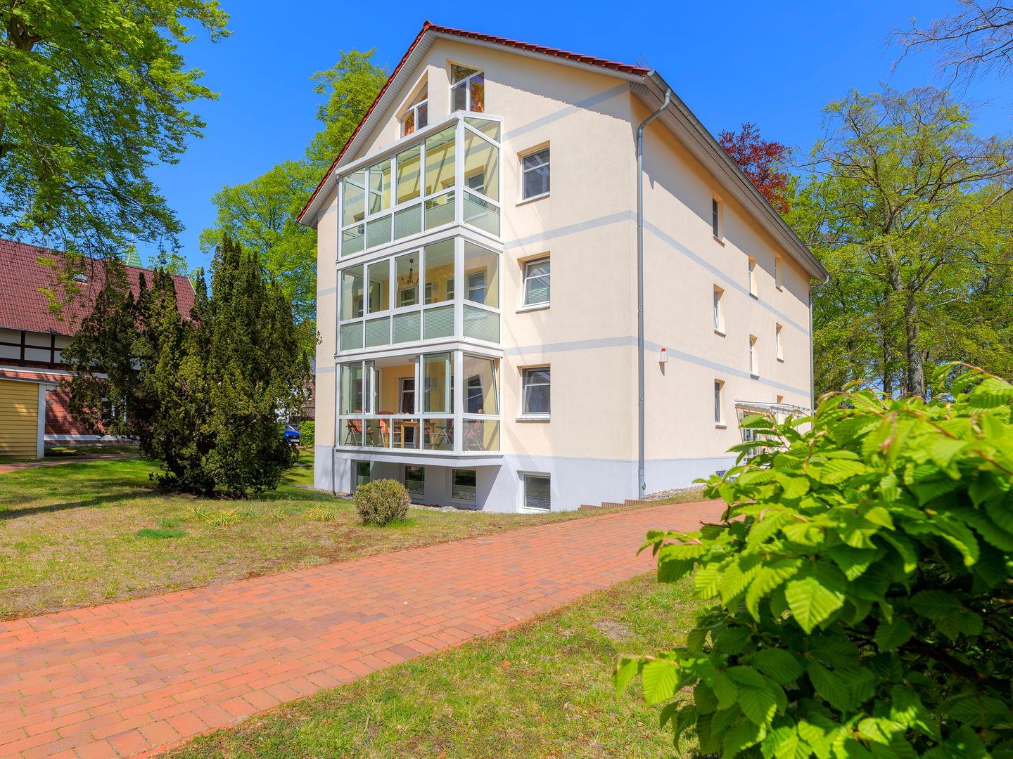 Das besondere Highlight dieser Ferienwohnung ist der gemütliche Wintergarten. Der Wintergarten bietet Ihnen einen herrlichen Blick auf das park ähnlich angelegte Grundstück und einen seitlichen Blick zur Strandpromenade – perfekt für entspannte Stunden unabhängig vom Wetter.